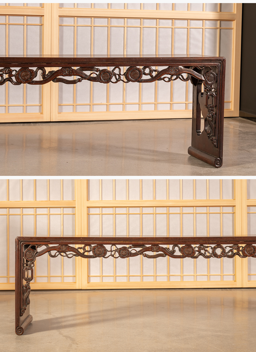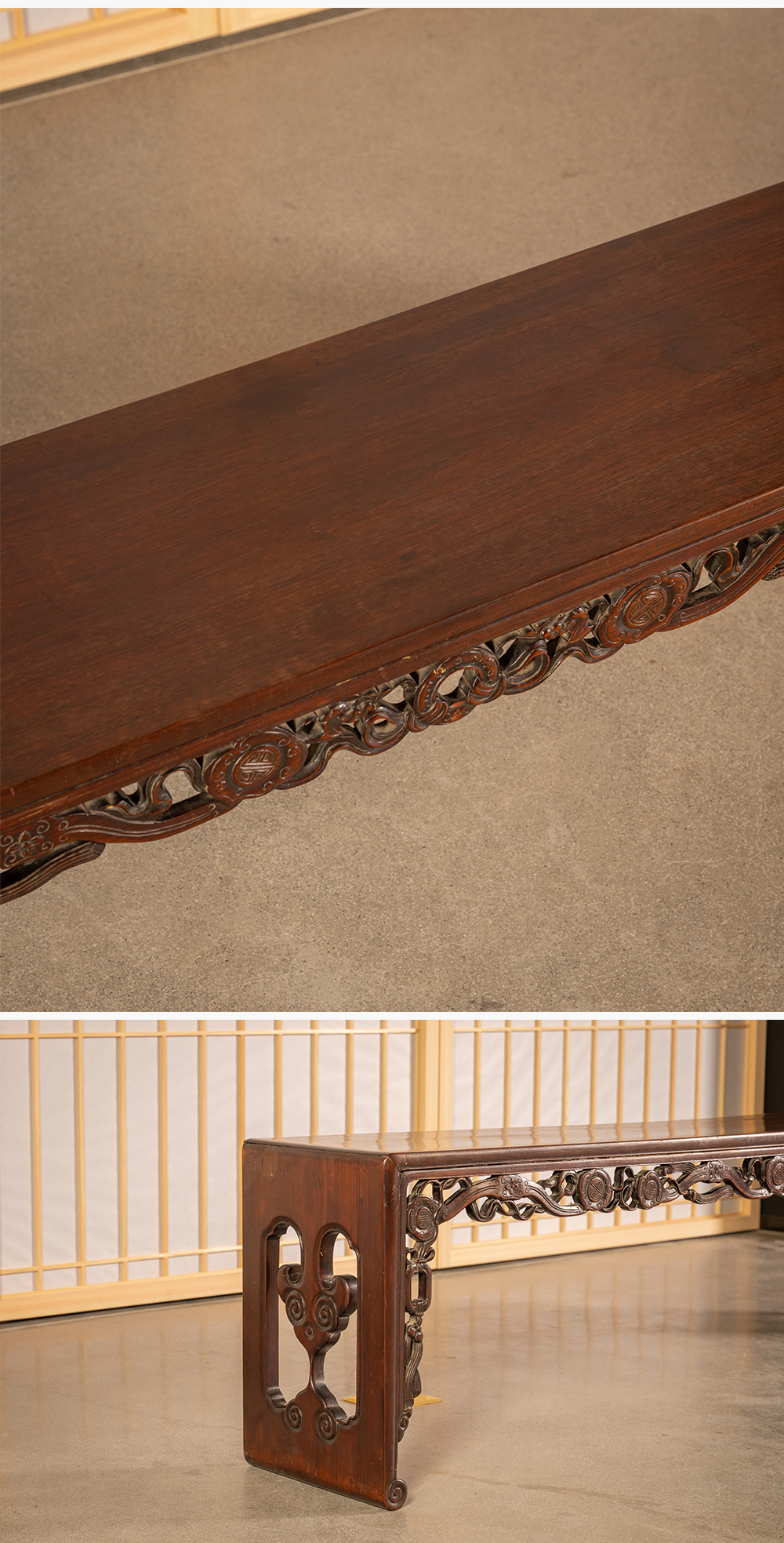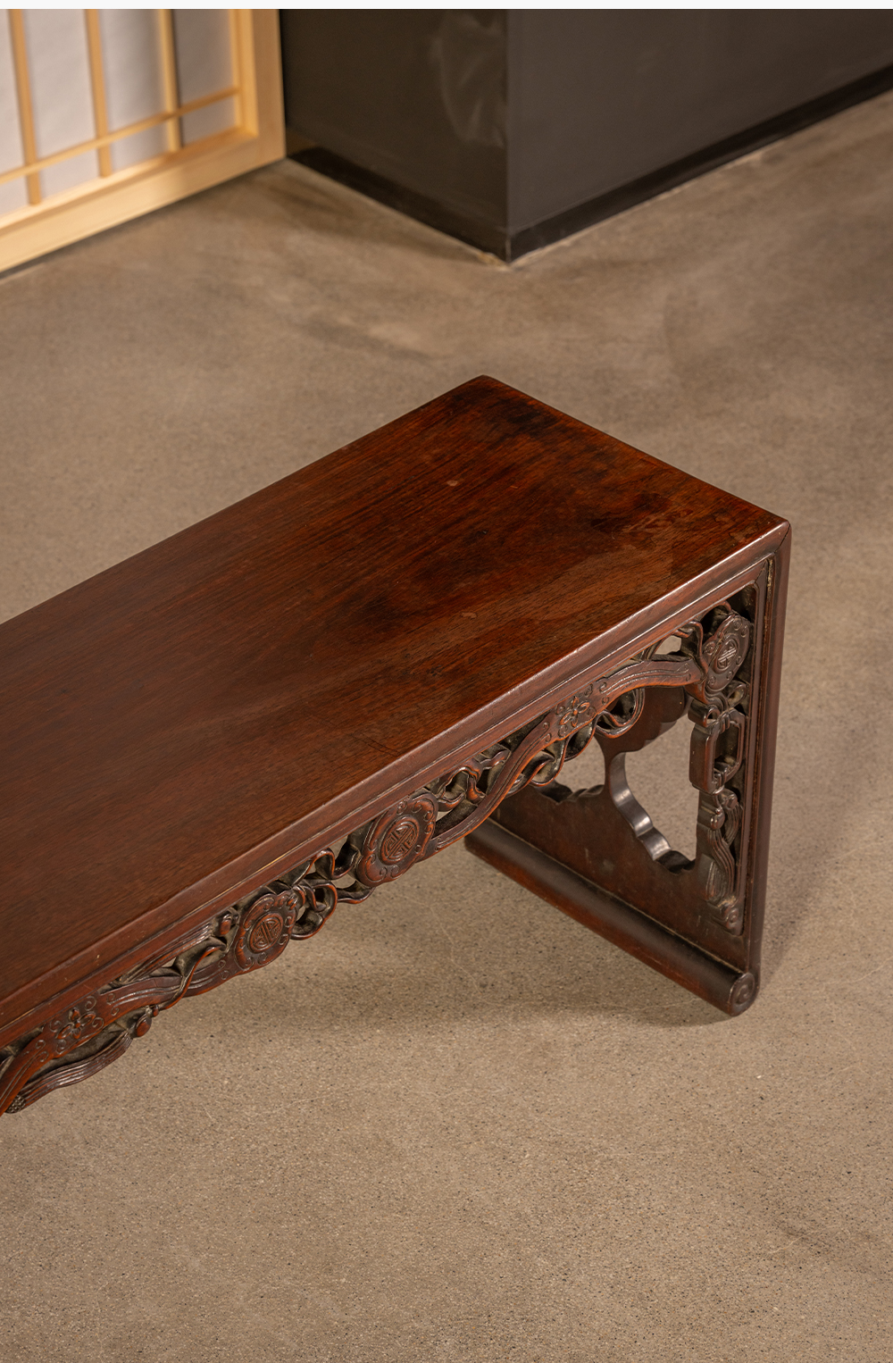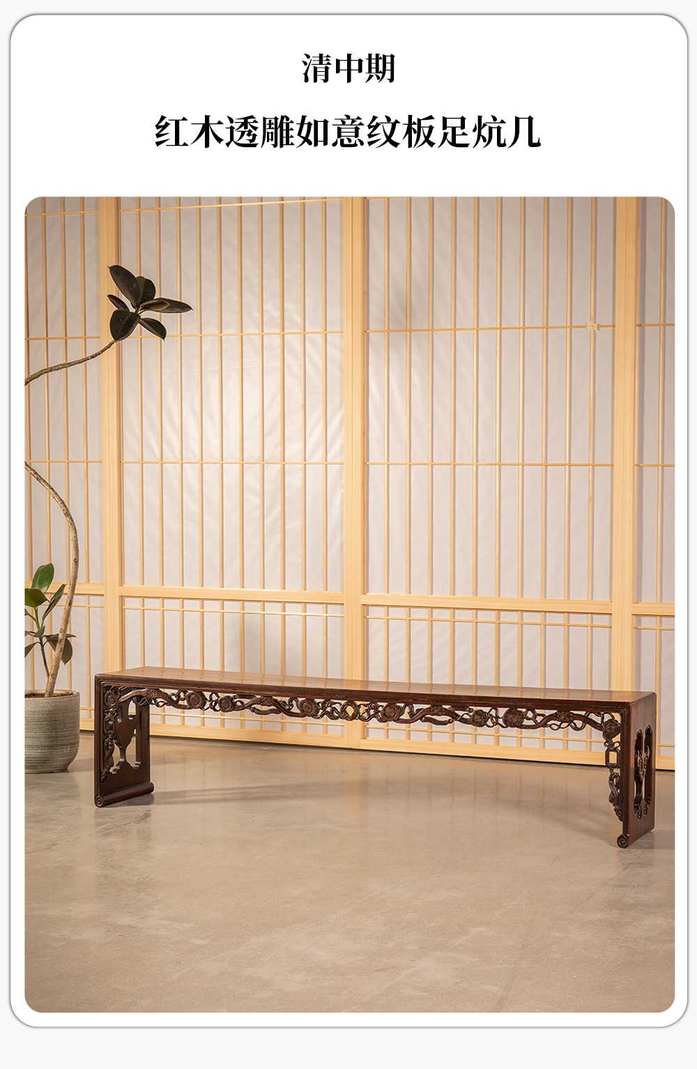 清中期 红木透雕如意纹板足炕几