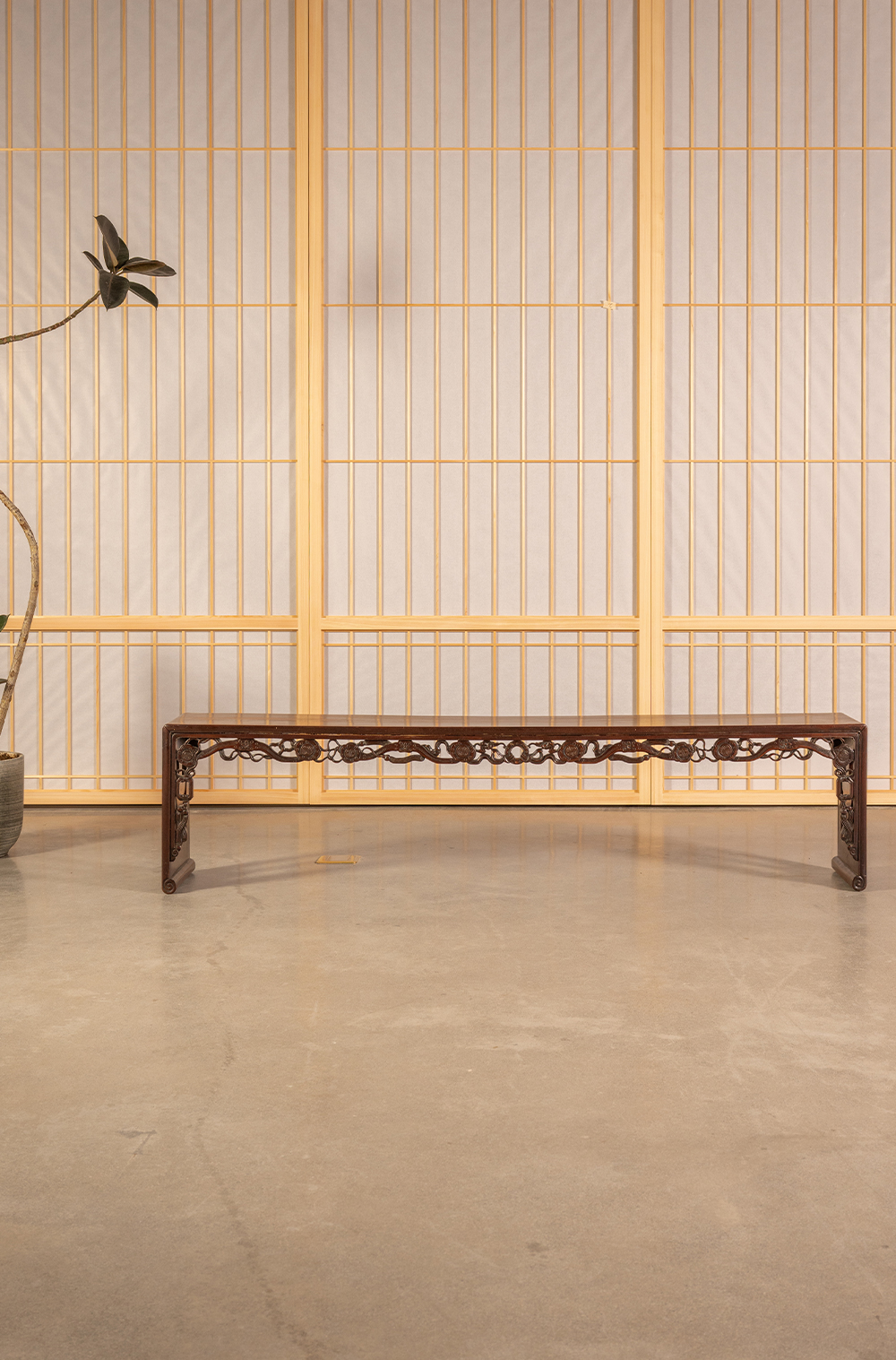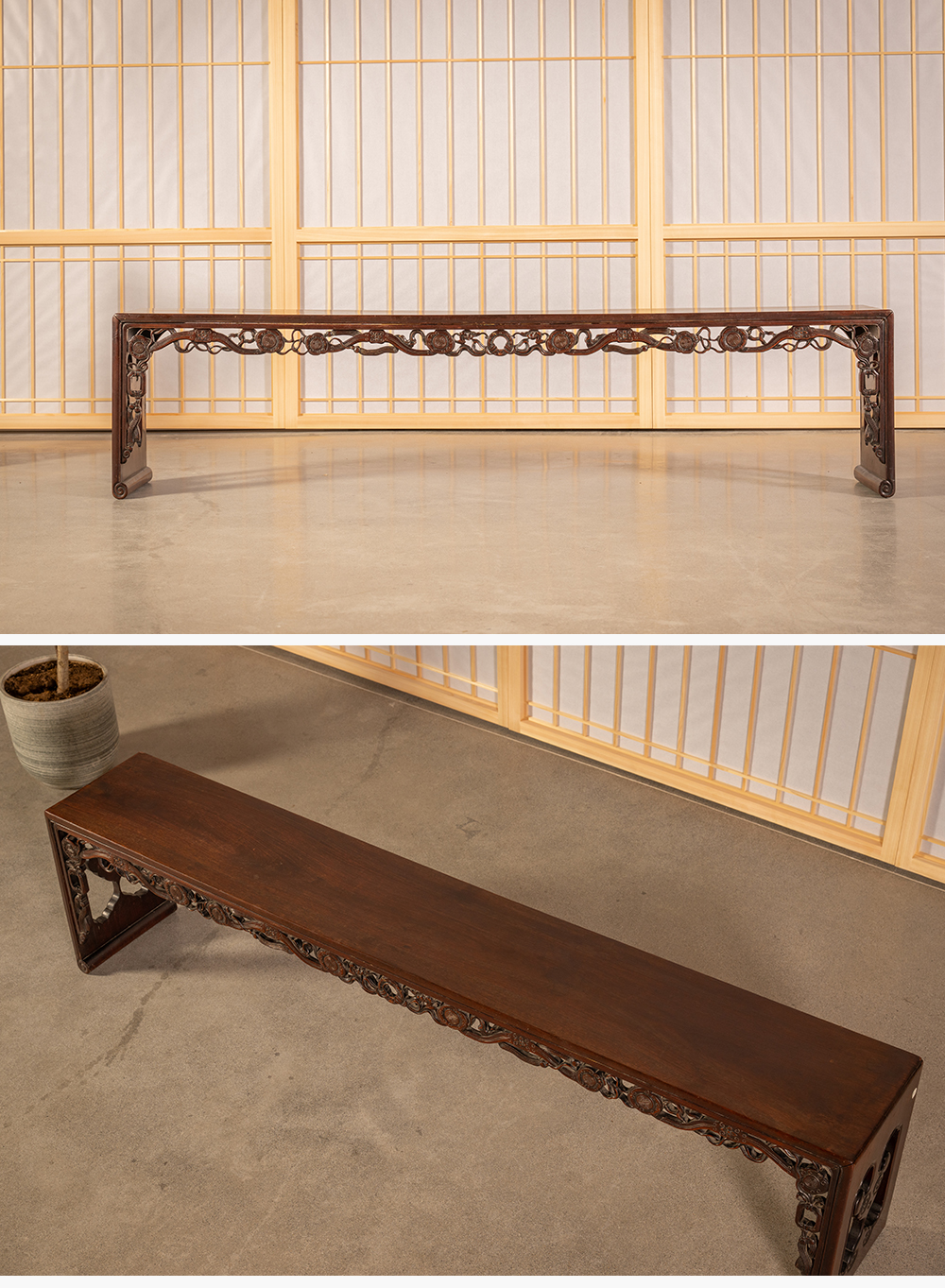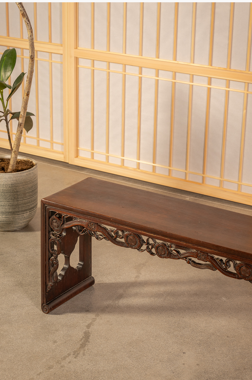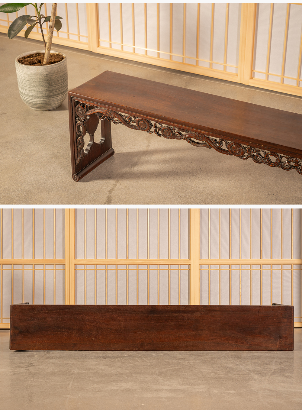 清中期 红木透雕如意纹板足炕几