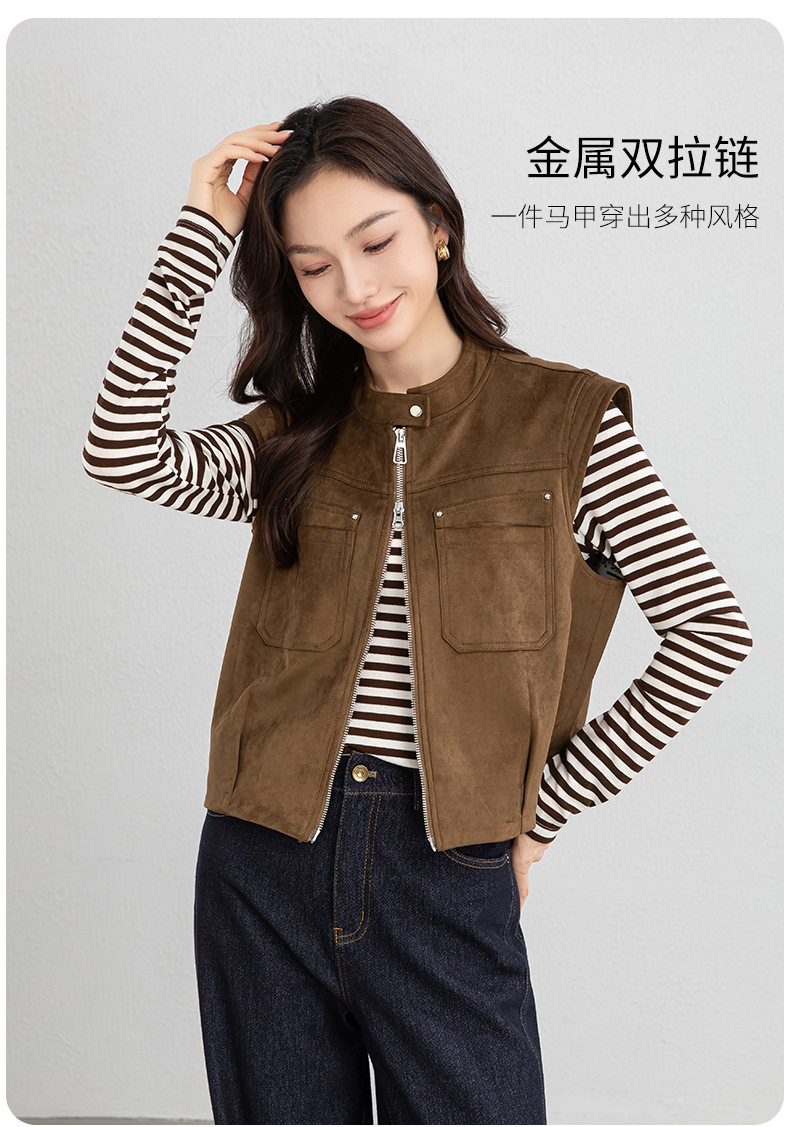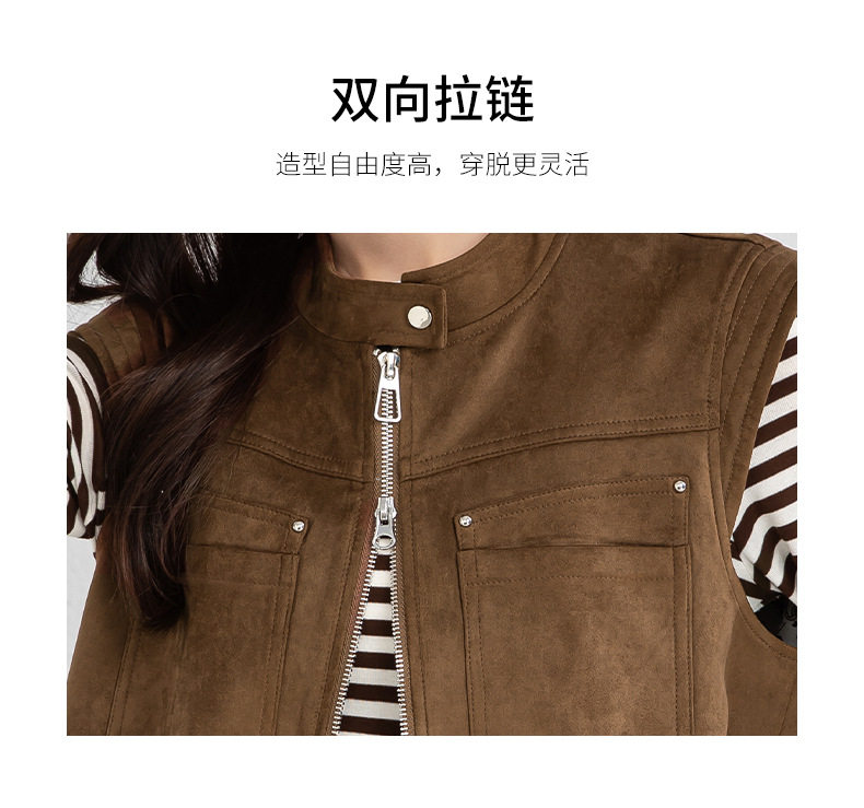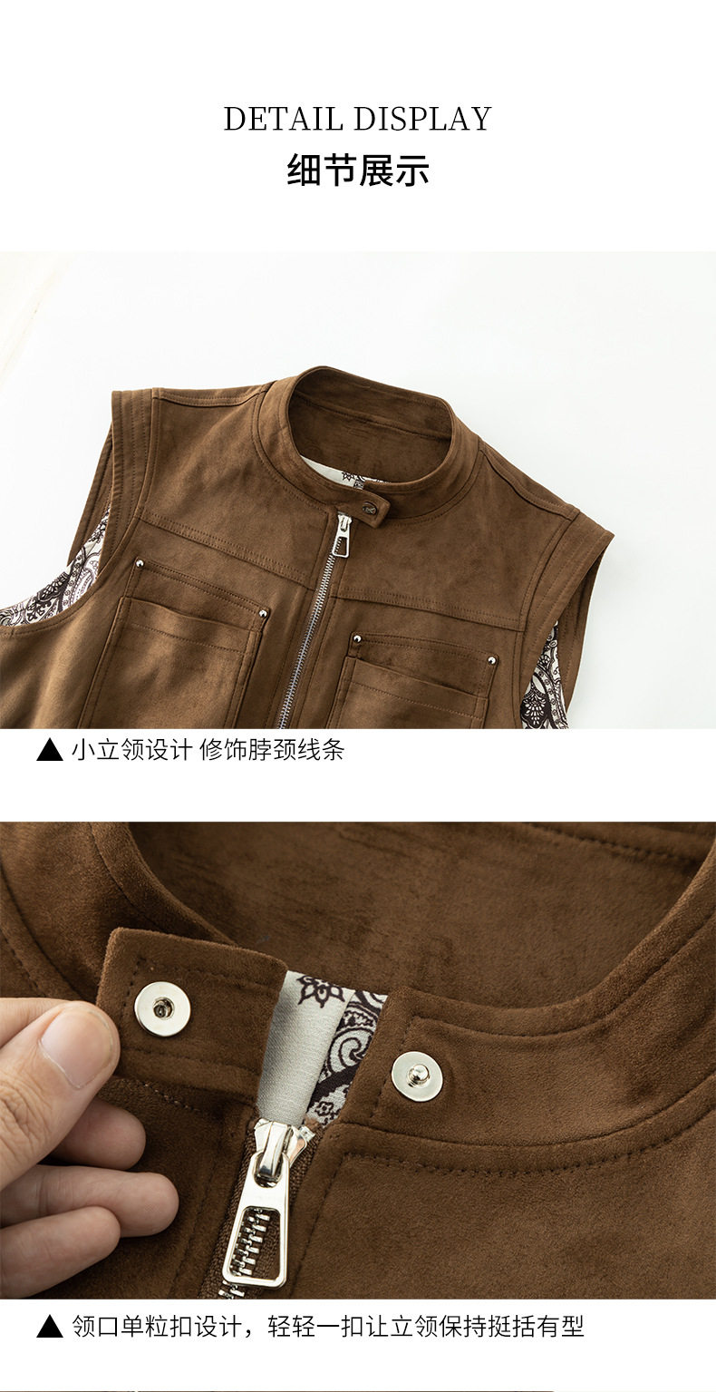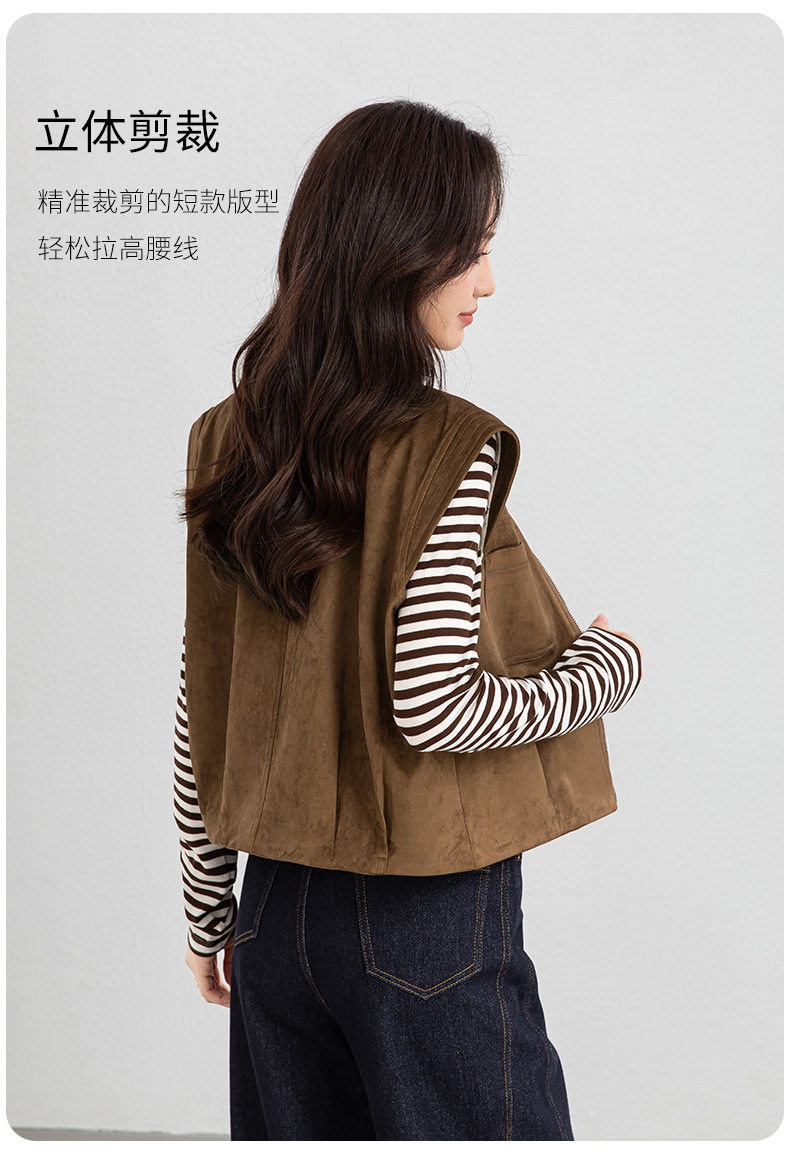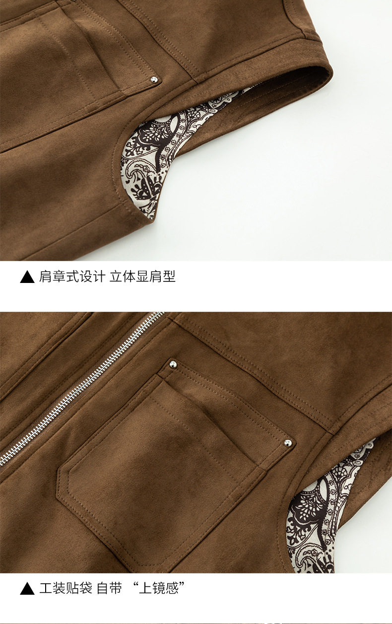 「高货xg」全新升级【铂金会员220/天猫299/差价79】(01854)洛诗琳仿牛皮绒工装马甲2026春季美式复古百搭无袖短外套