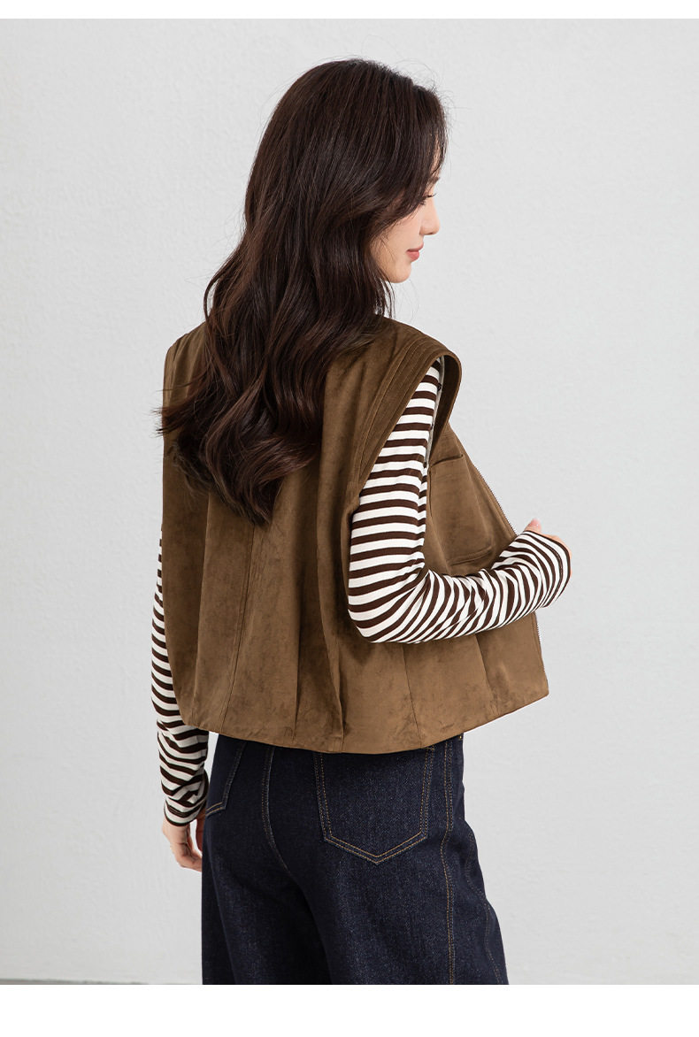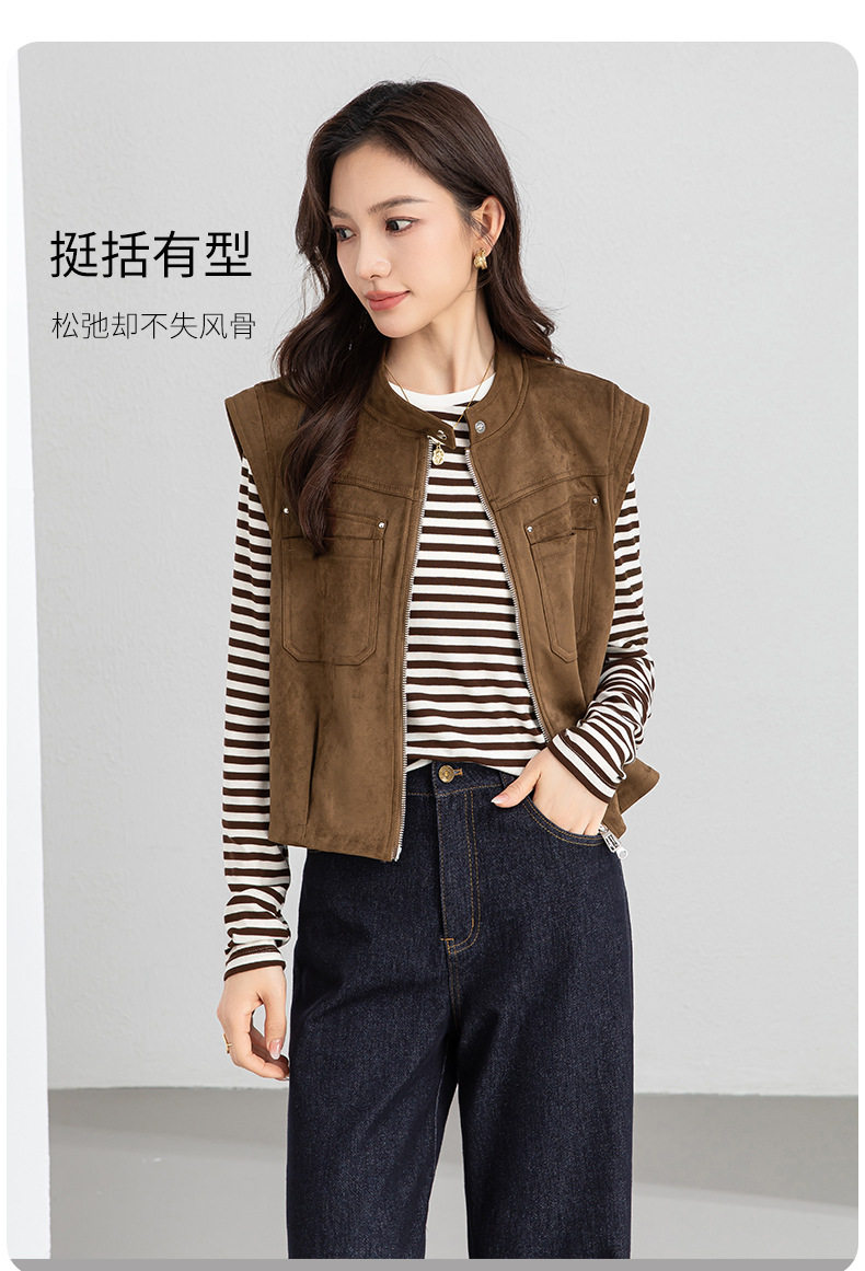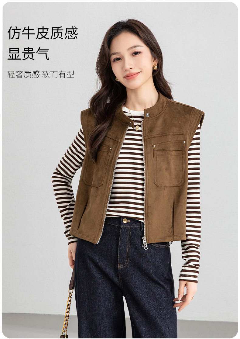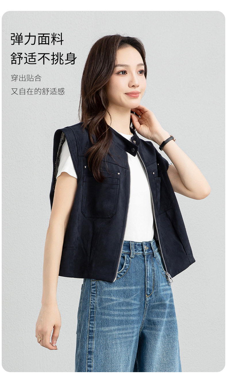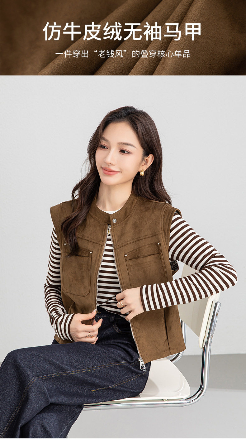 「高货xg」全新升级【铂金会员220/天猫299/差价79】(01854)洛诗琳仿牛皮绒工装马甲2026春季美式复古百搭无袖短外套