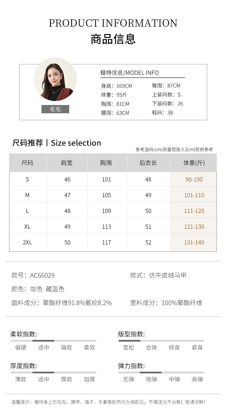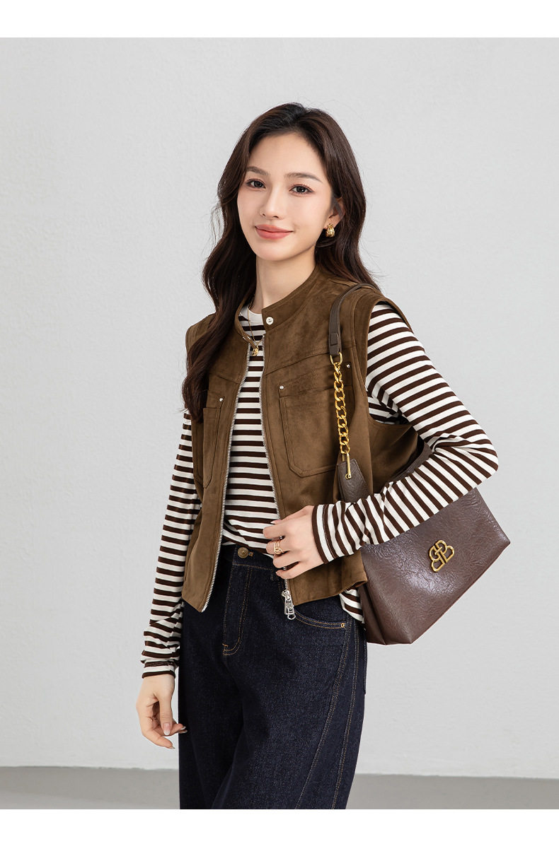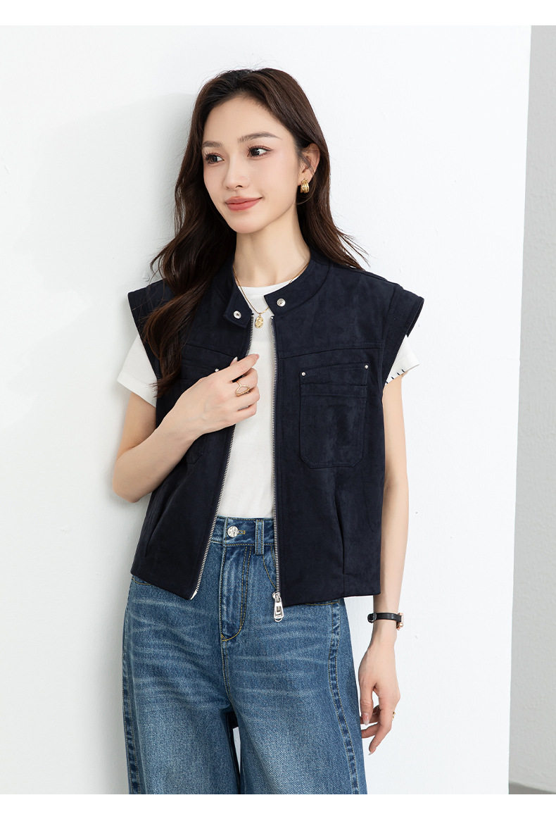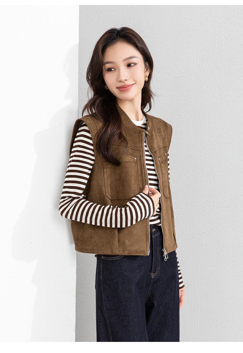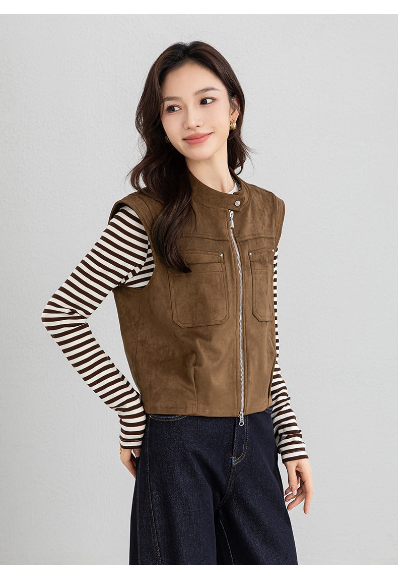 「高货xg」全新升级【铂金会员220/天猫299/差价79】(01854)洛诗琳仿牛皮绒工装马甲2026春季美式复古百搭无袖短外套