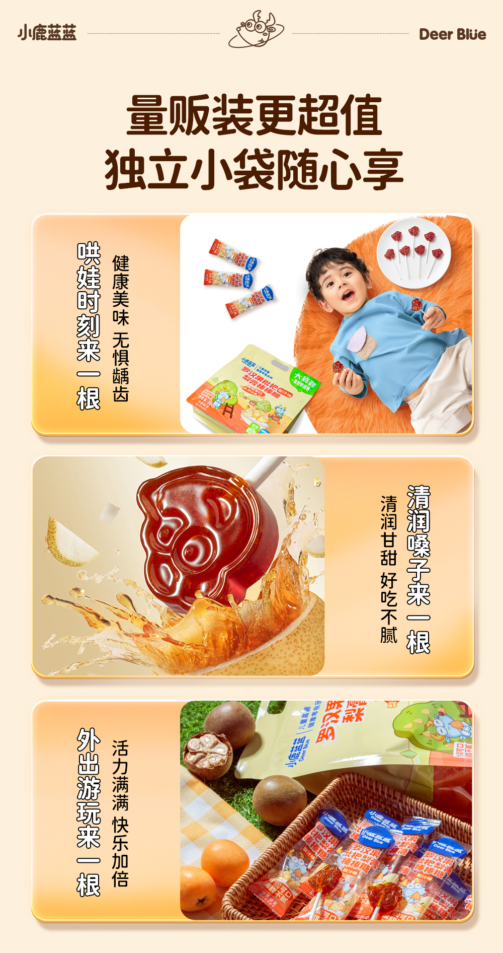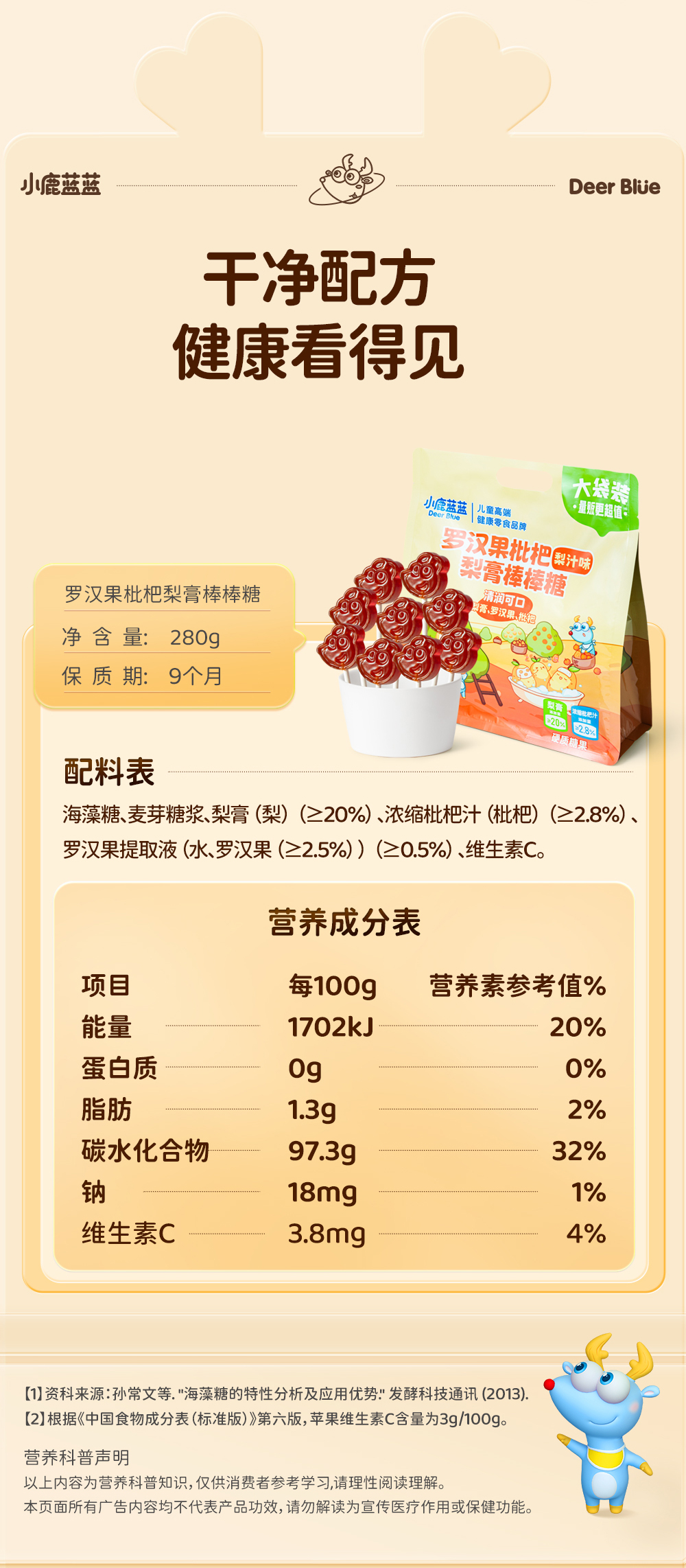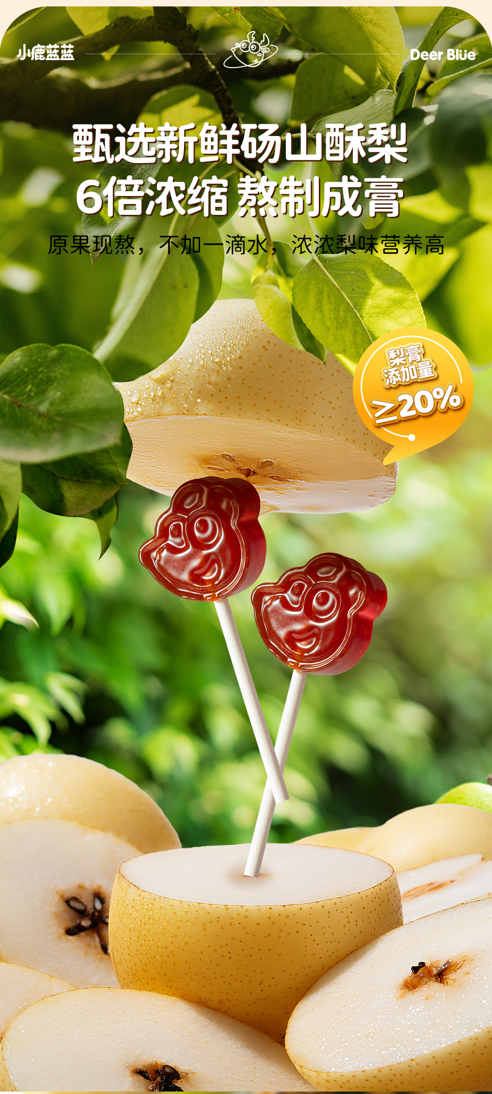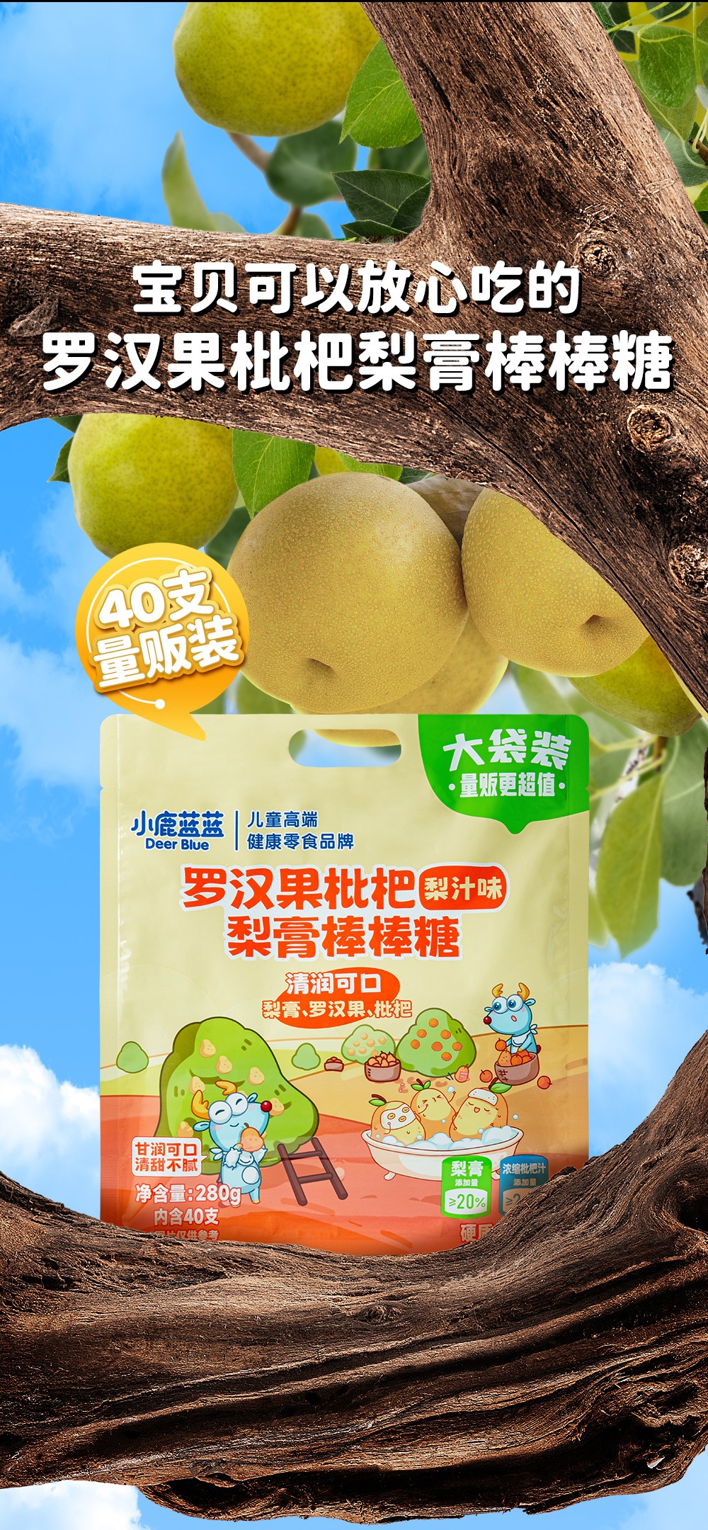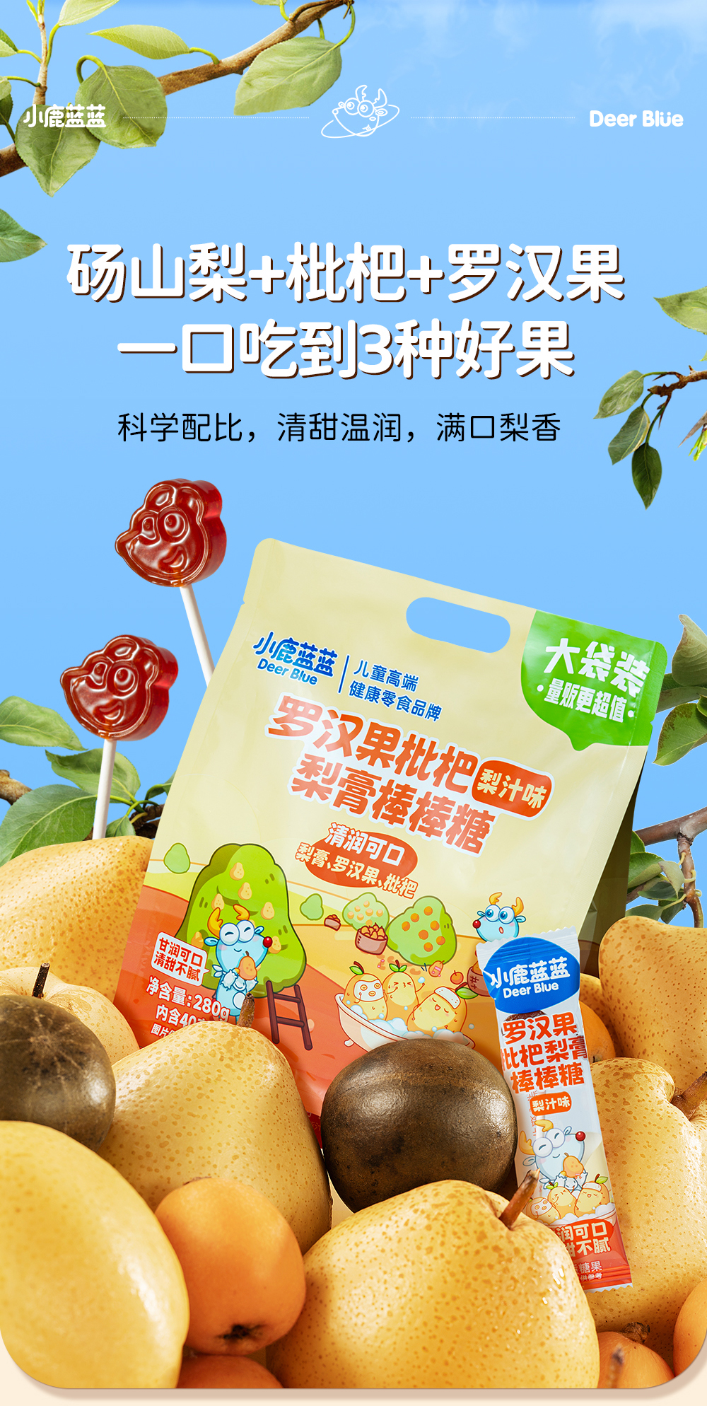 【孕味秒杀专属】小鹿蓝蓝 罗汉果枇杷梨膏棒棒糖/梨汁味/280g