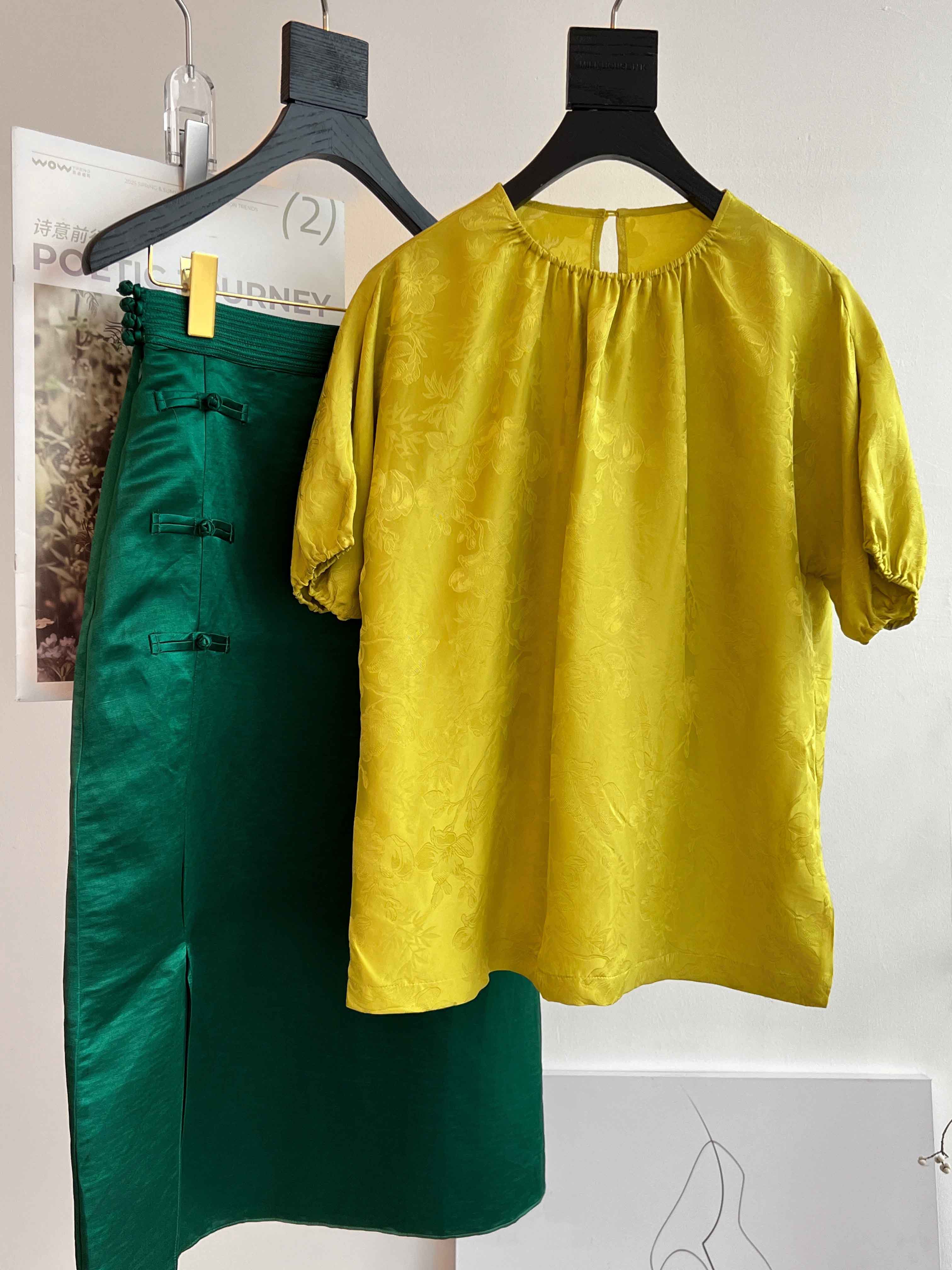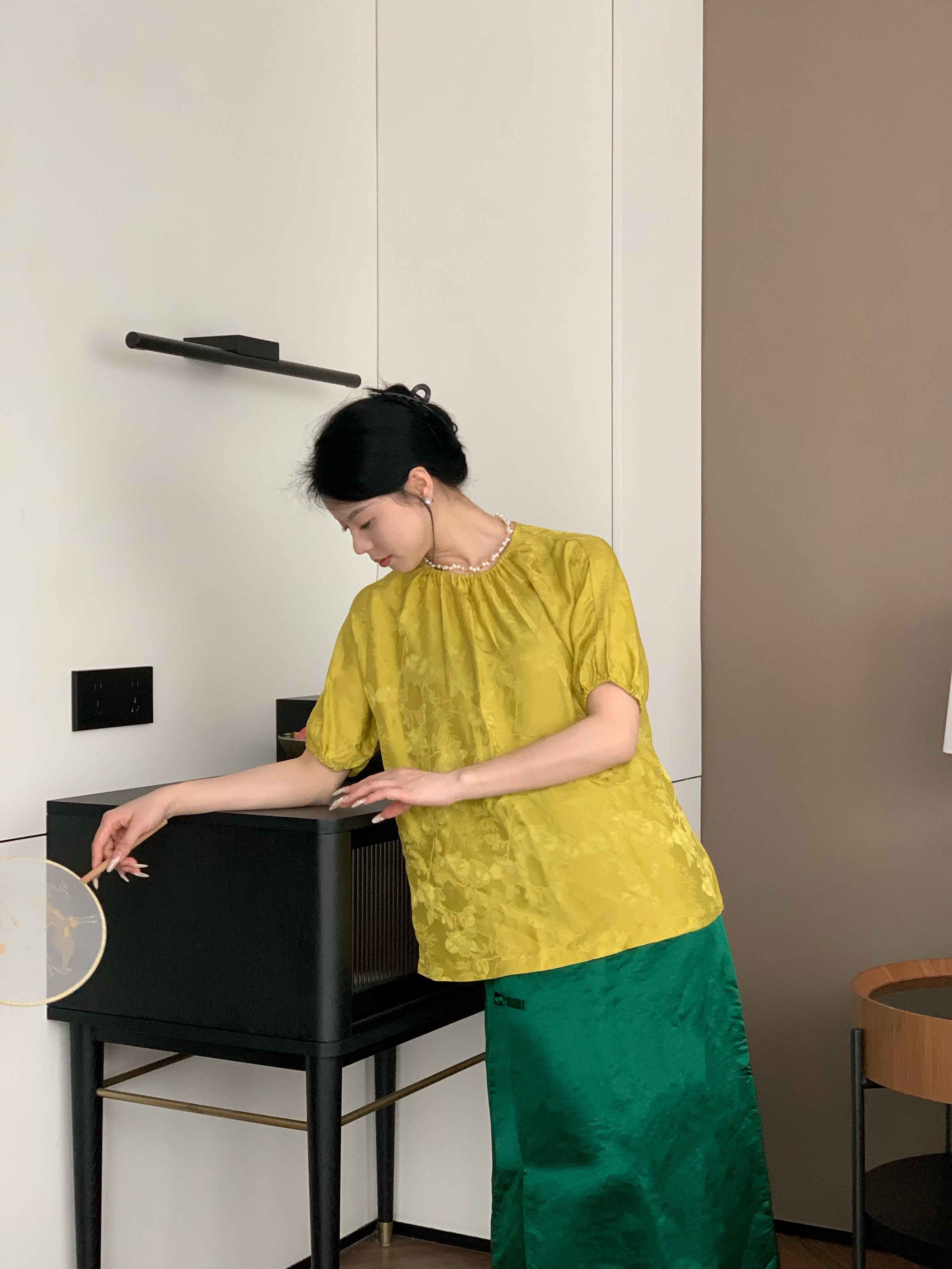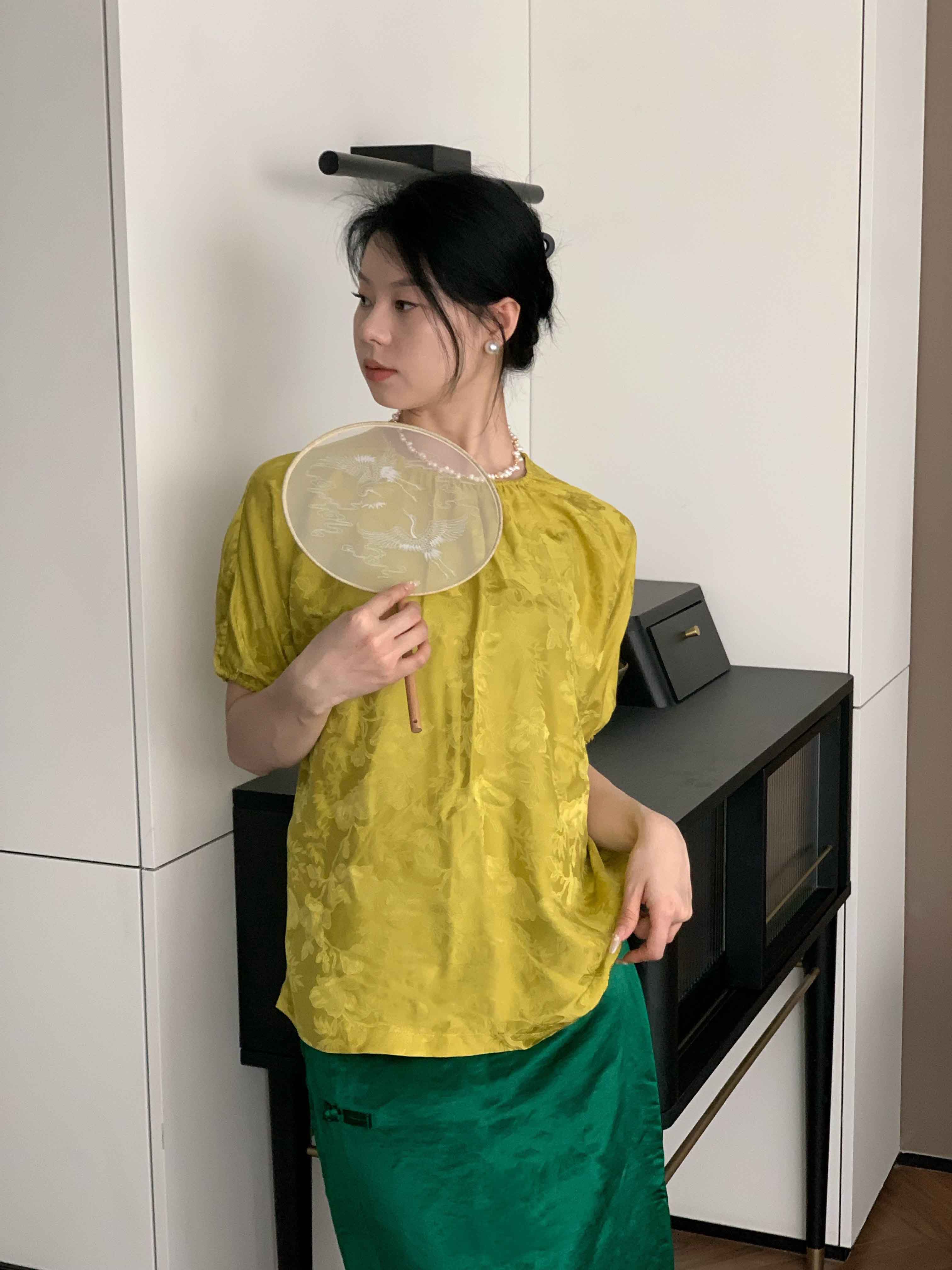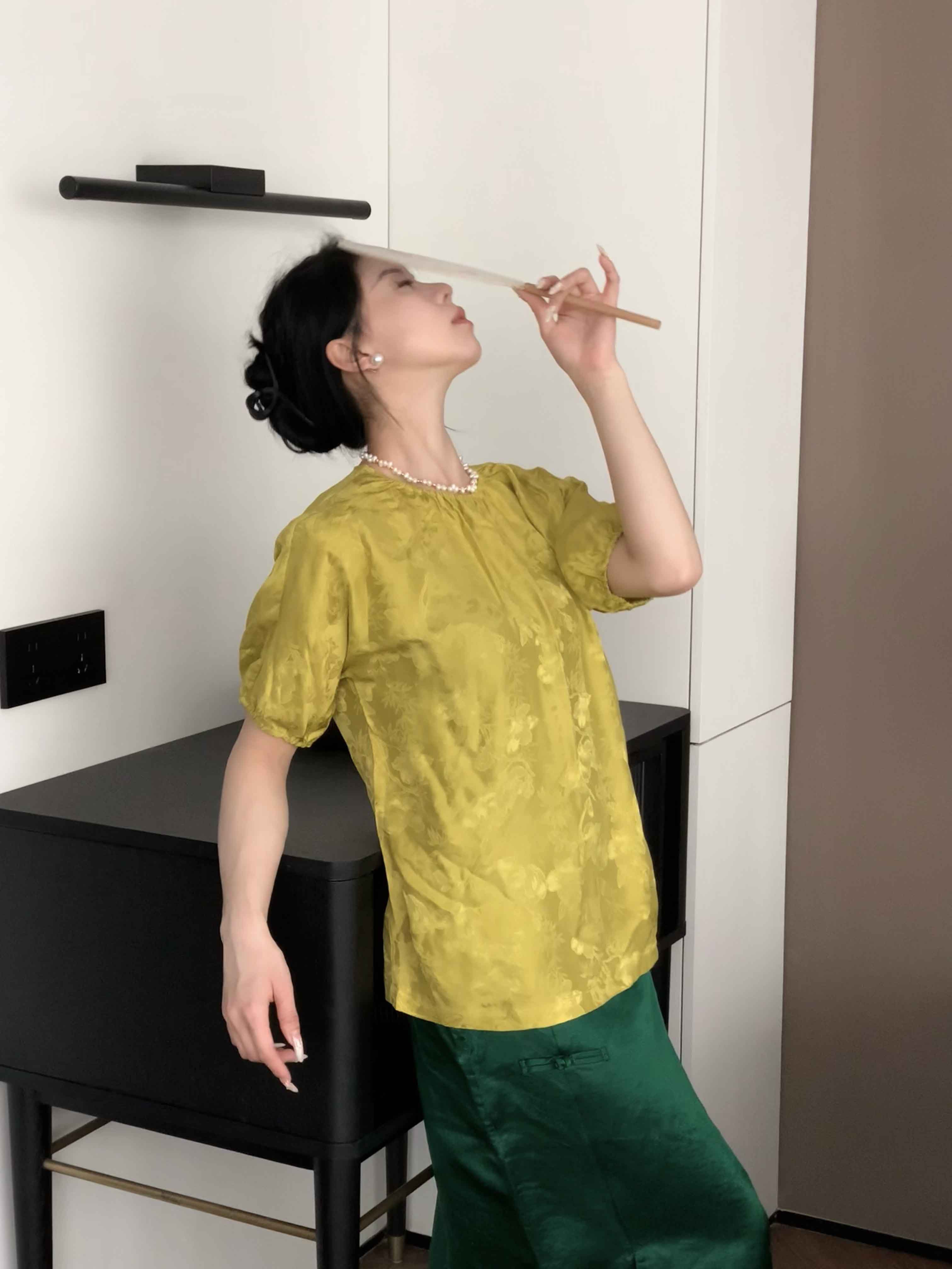 顺丰包邮洛诗琳34533夏季新款新中式设计感细褶国风真丝衬衫53116