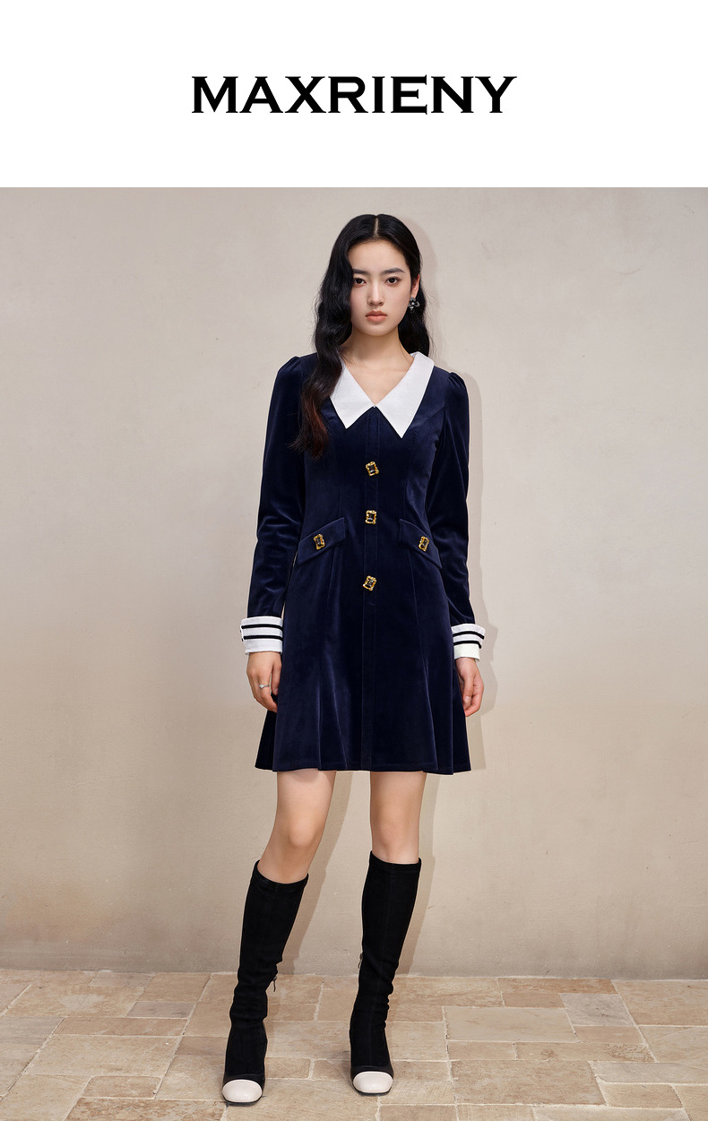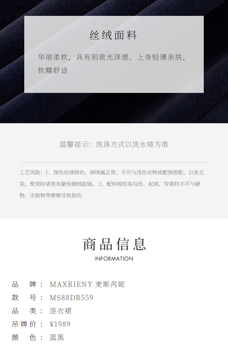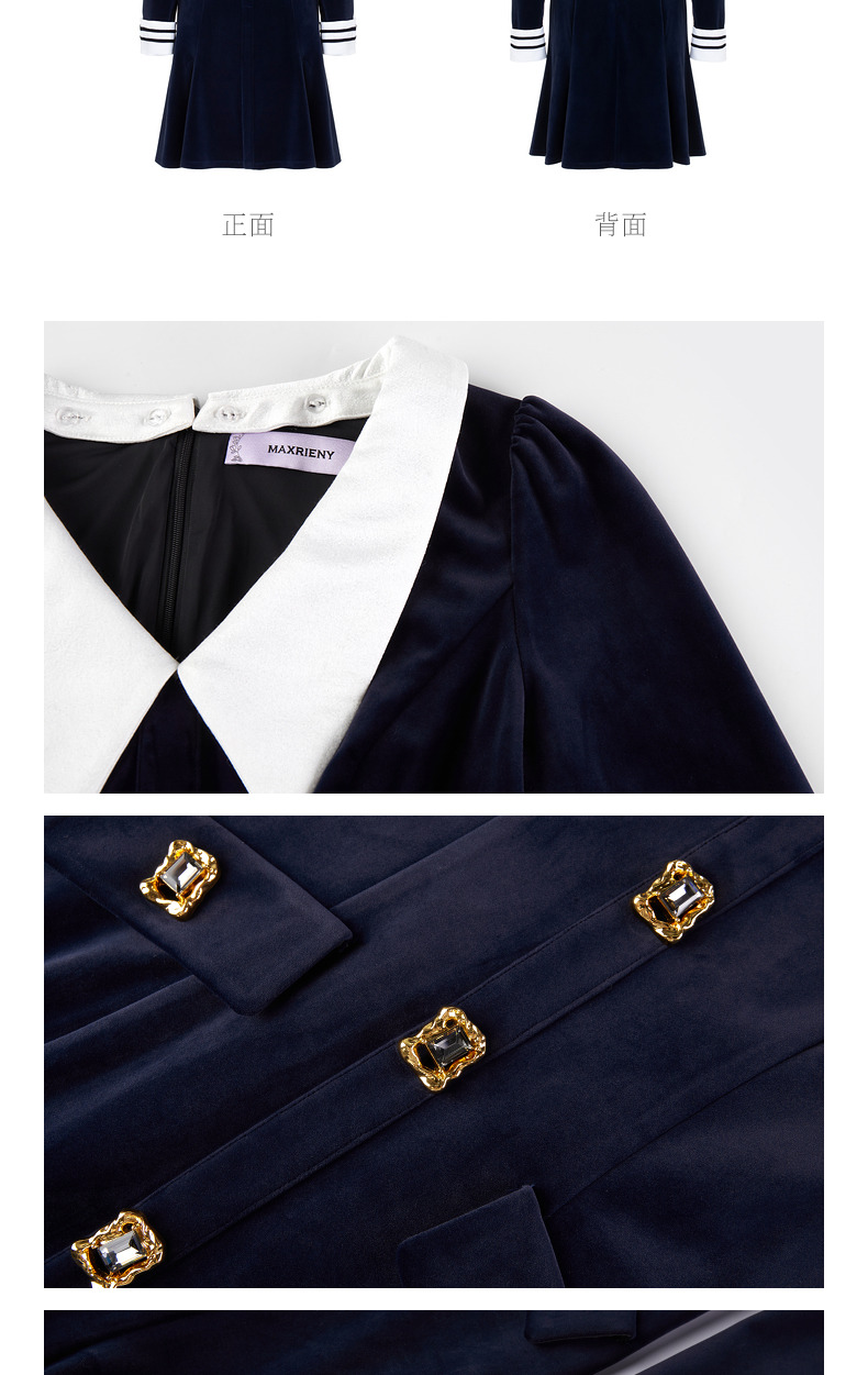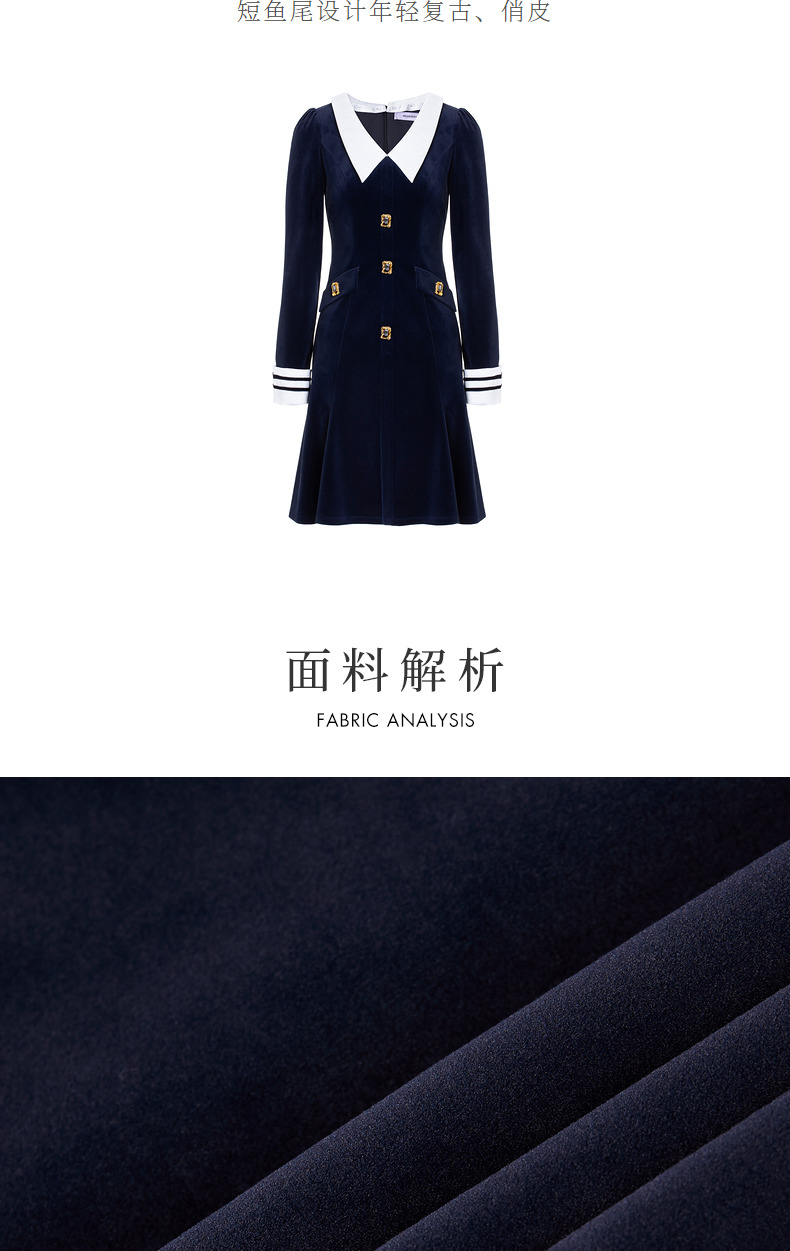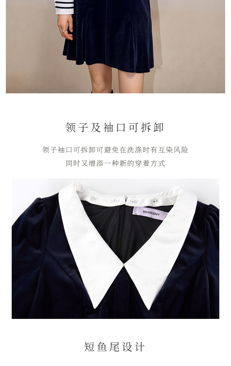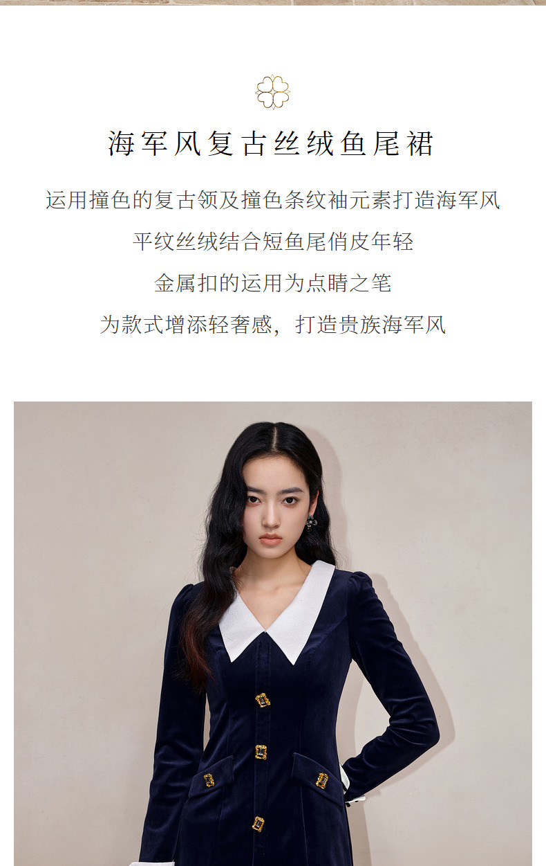 MAXRIENY复古海军风丝绒鱼尾裙法式优雅复古连衣裙(货号:MS88DR559)