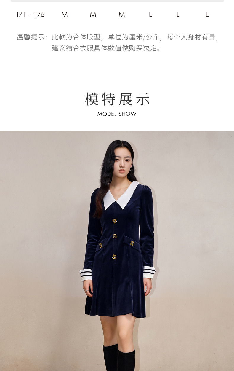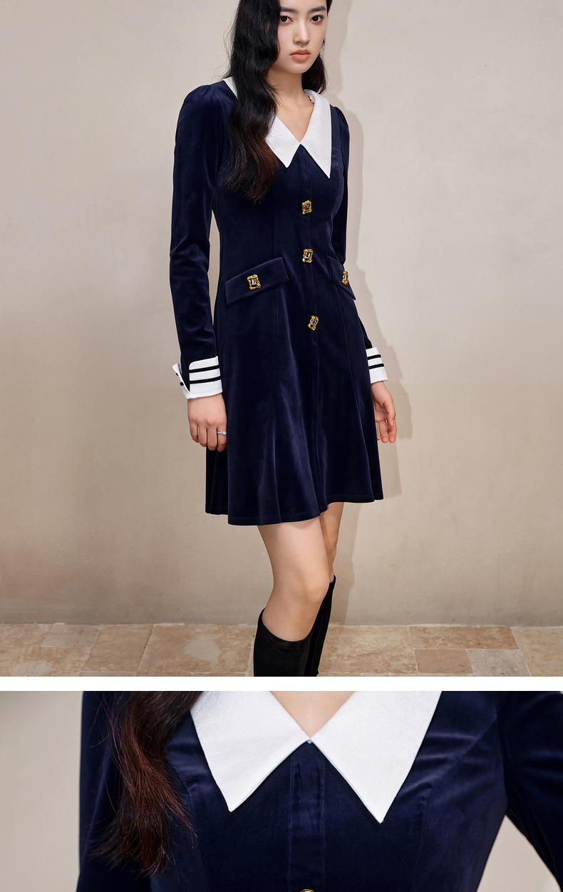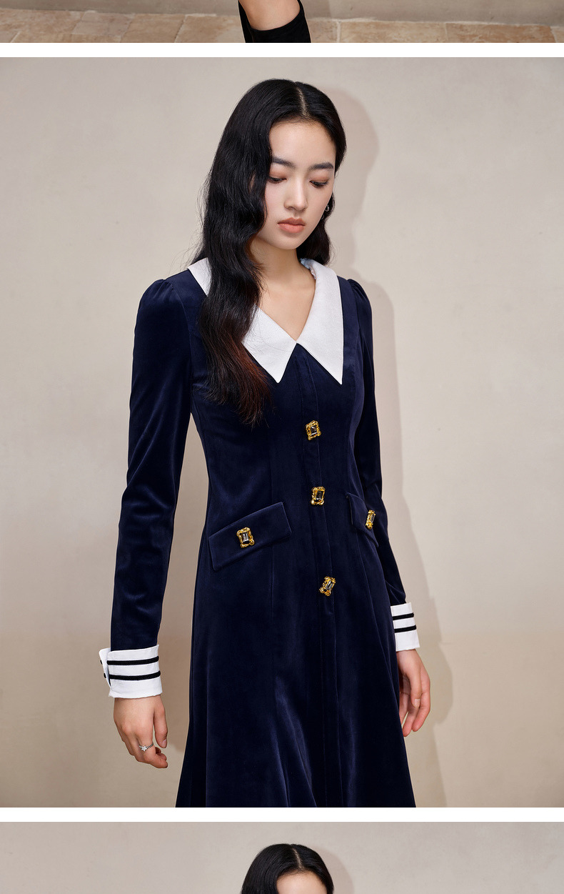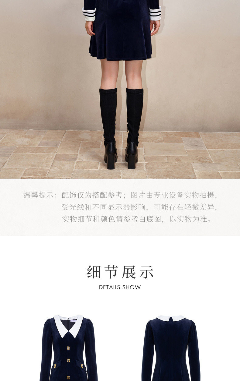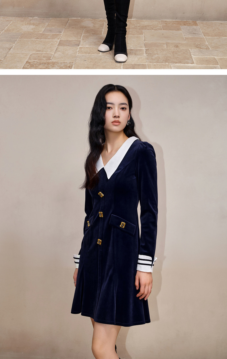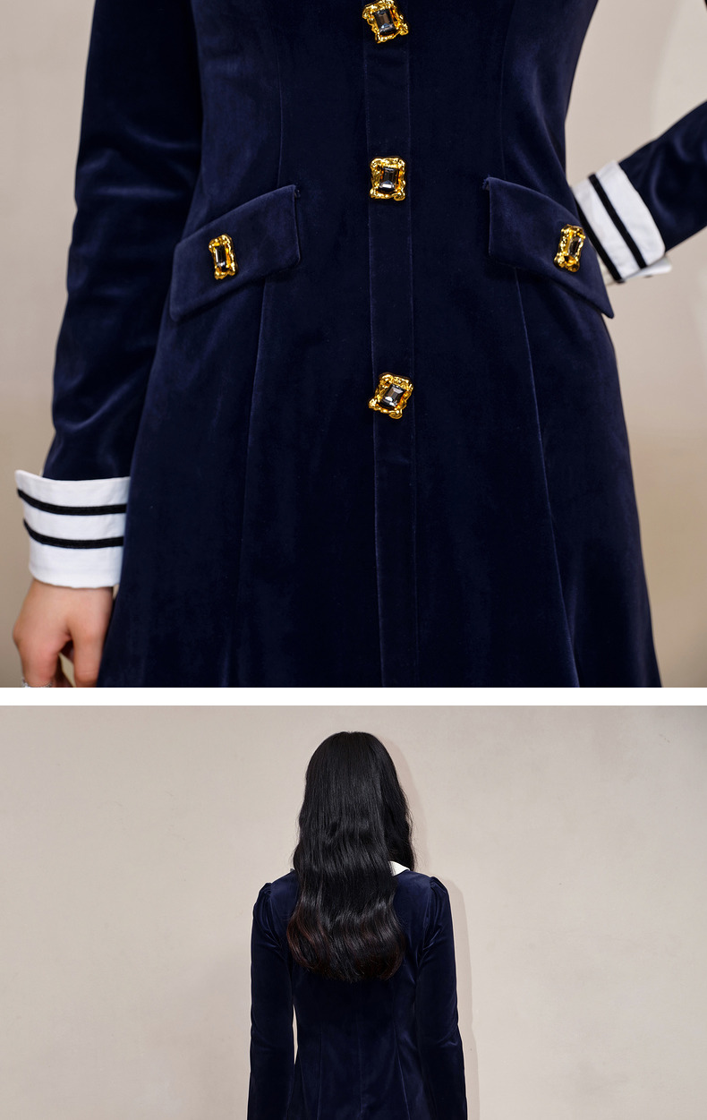MAXRIENY复古海军风丝绒鱼尾裙法式优雅复古连衣裙(货号:MS88DR559)