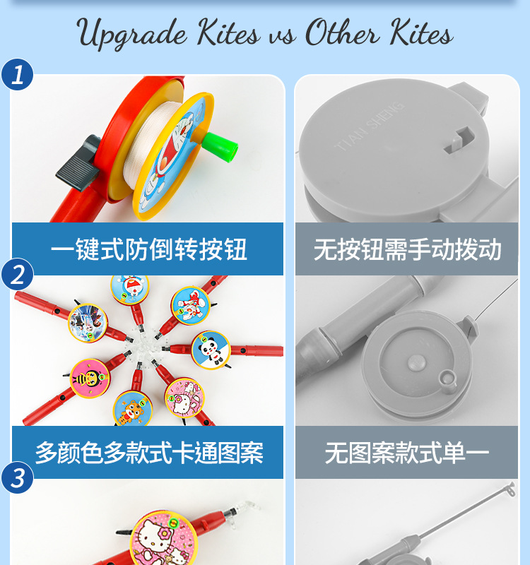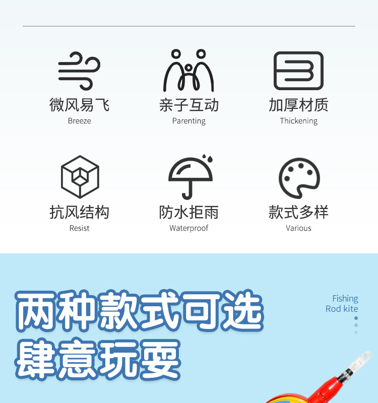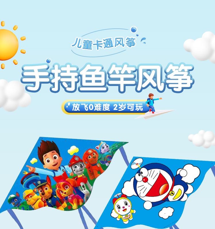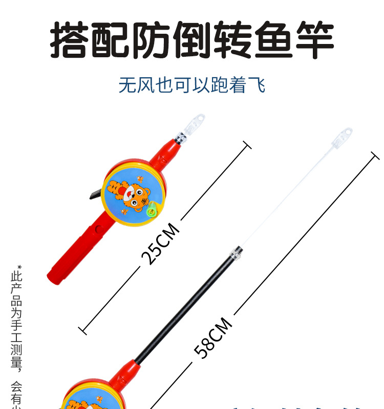 五一出游季!【放飞0难度,2岁可玩~】儿童鱼竿哪吒风筝 风筝地摊玩具公园摆摊 鱼竿塑料风筝奥特曼-QQ