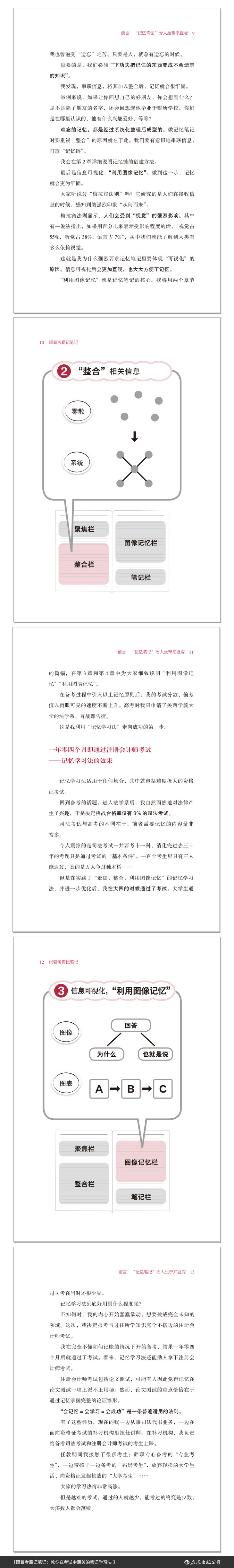 全书使用双色印刷、精致图表示例,清晰展示笔记学习全过程。一本A4笔记本+一支笔,掌握记笔记的3个步骤+4个区域,配合作者独家记忆技巧,你也能快速跃升为考场黑马!