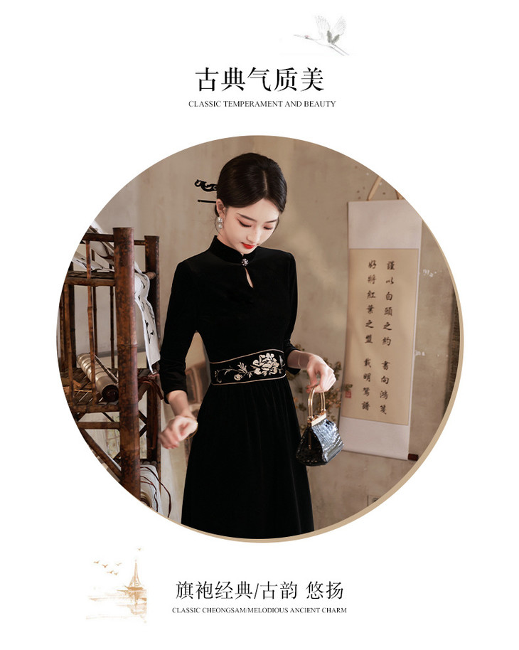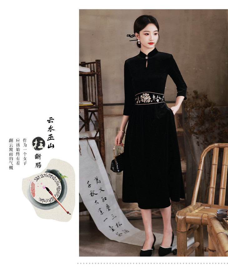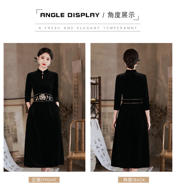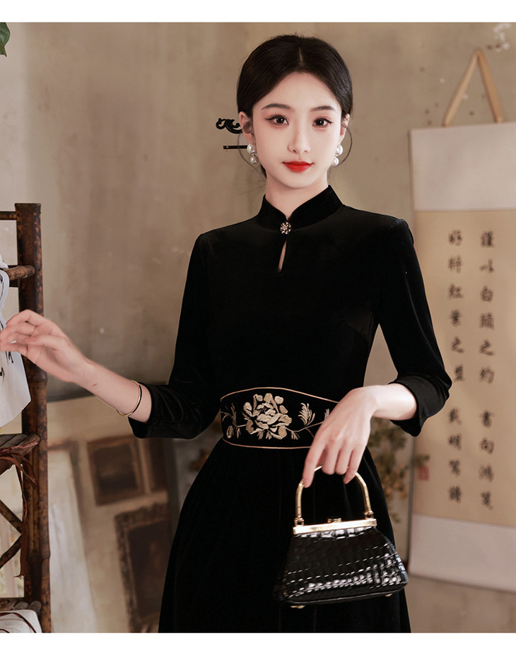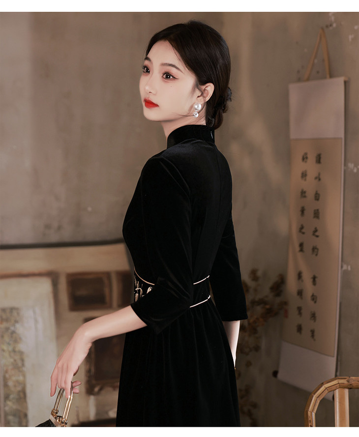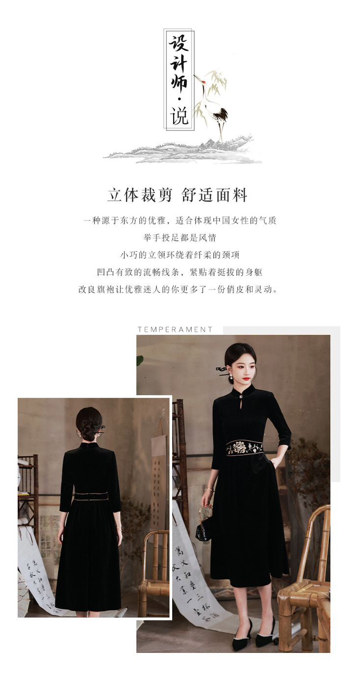 复古中国风中式旗袍改良版黑色年轻款修身七分袖旗袍ZQ&SC17700