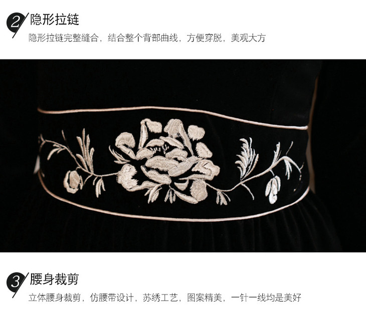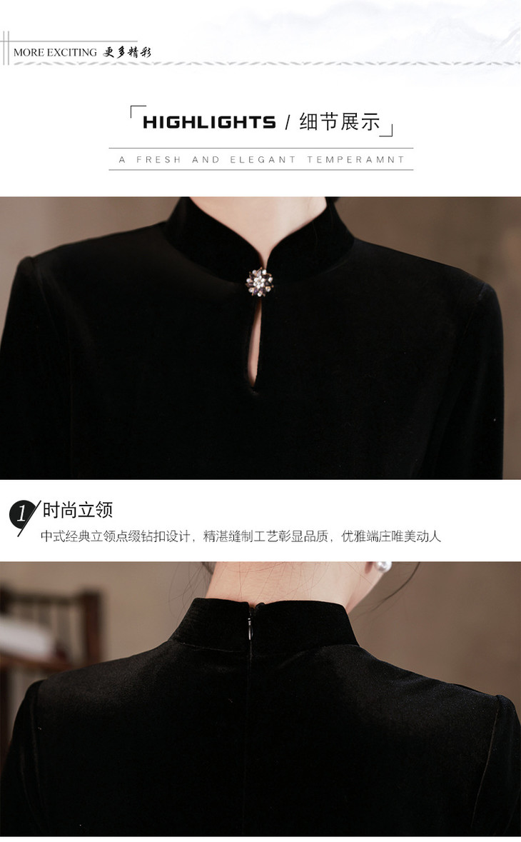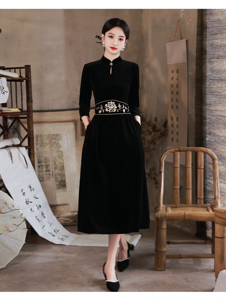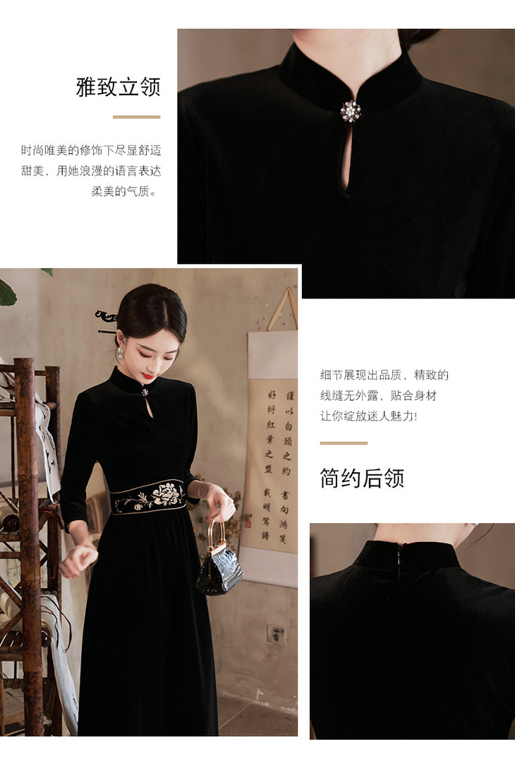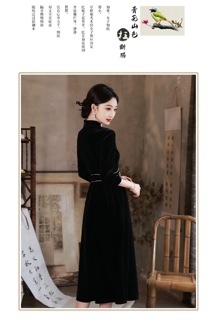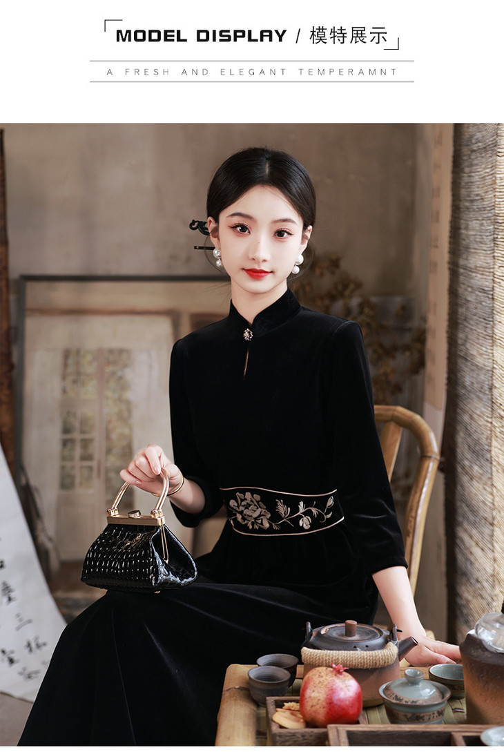 复古中国风中式旗袍改良版黑色年轻款修身七分袖旗袍ZQ&SC17700