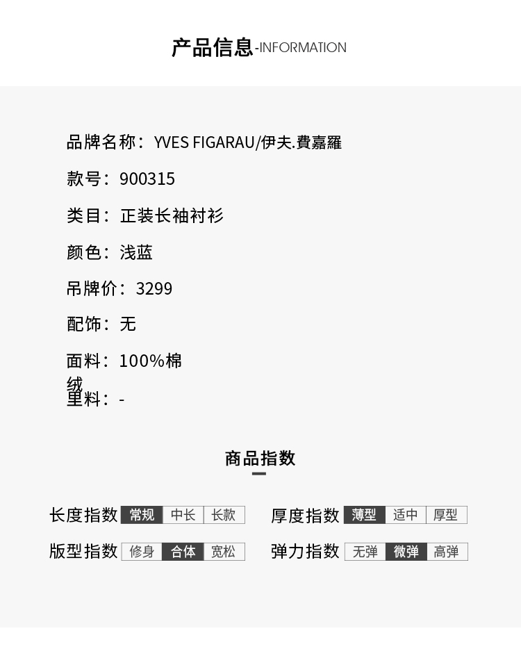 YvesFigarau伊夫·费嘉罗900315正装长袖衬衫