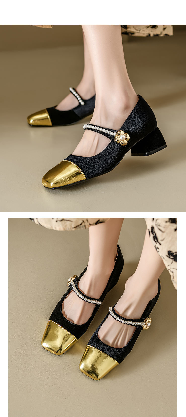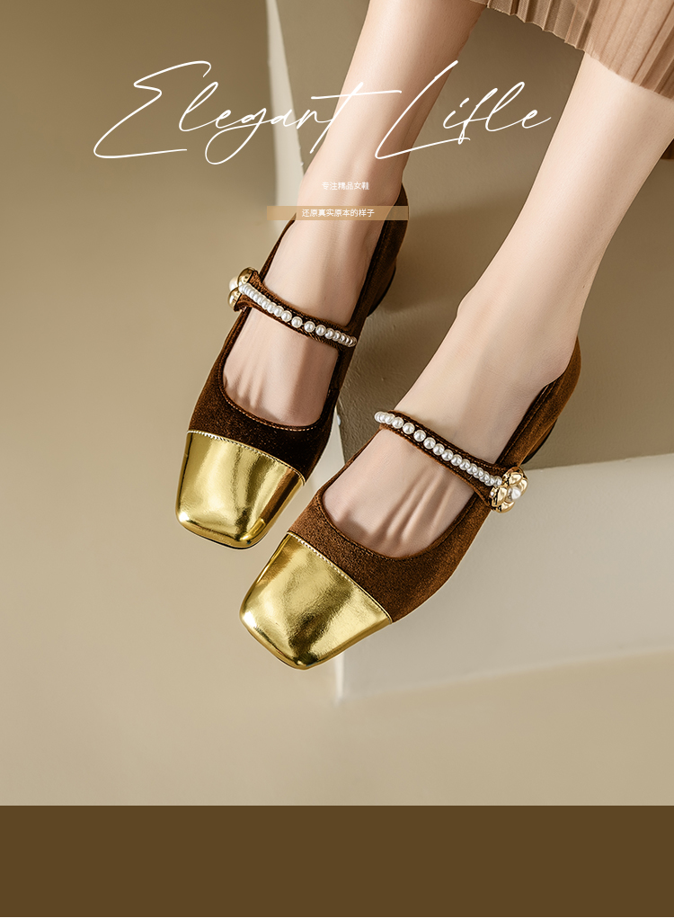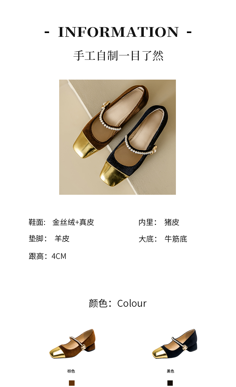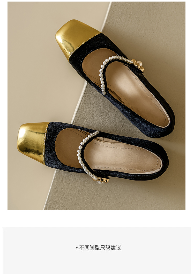 【预售5天】春季新款,珍珠法式金丝绒玛丽珍单鞋MN&B634