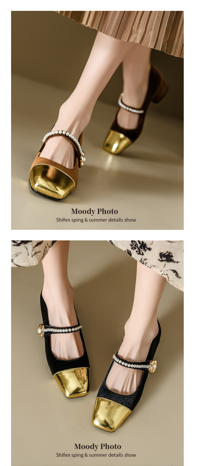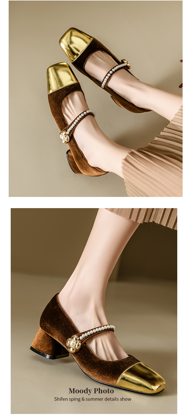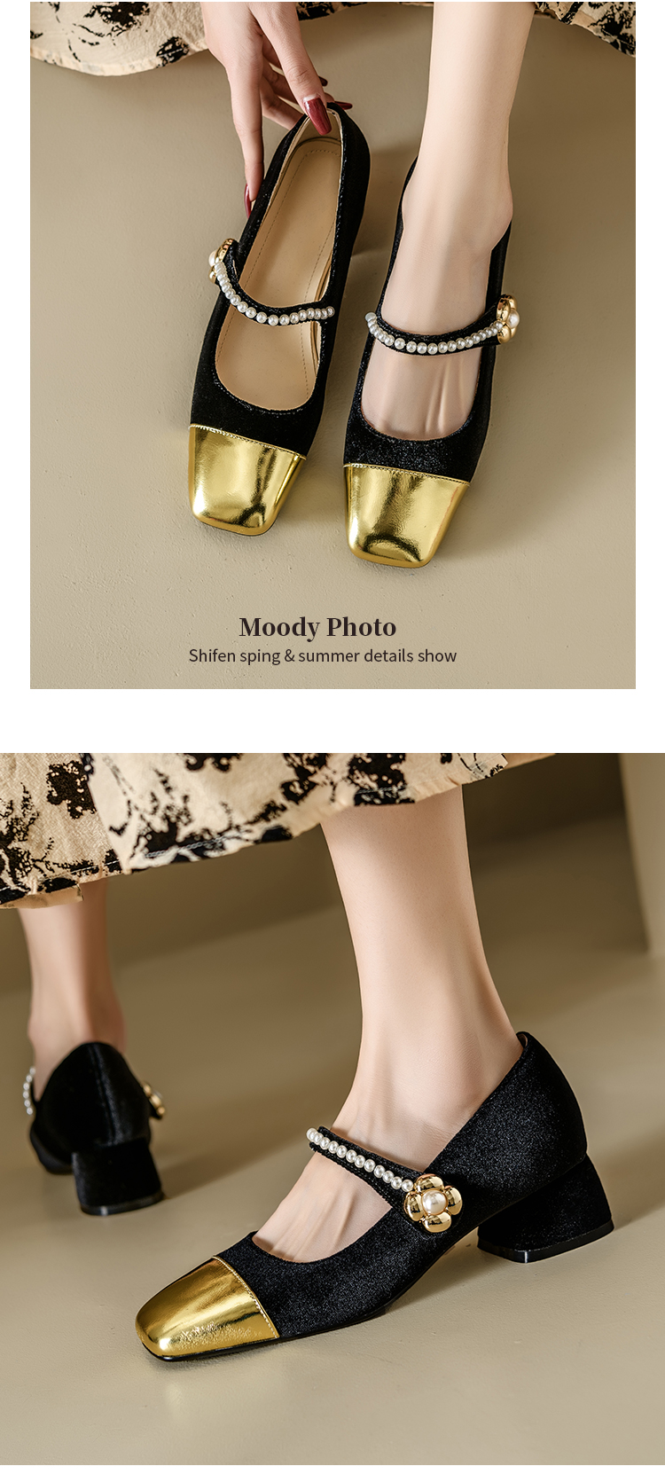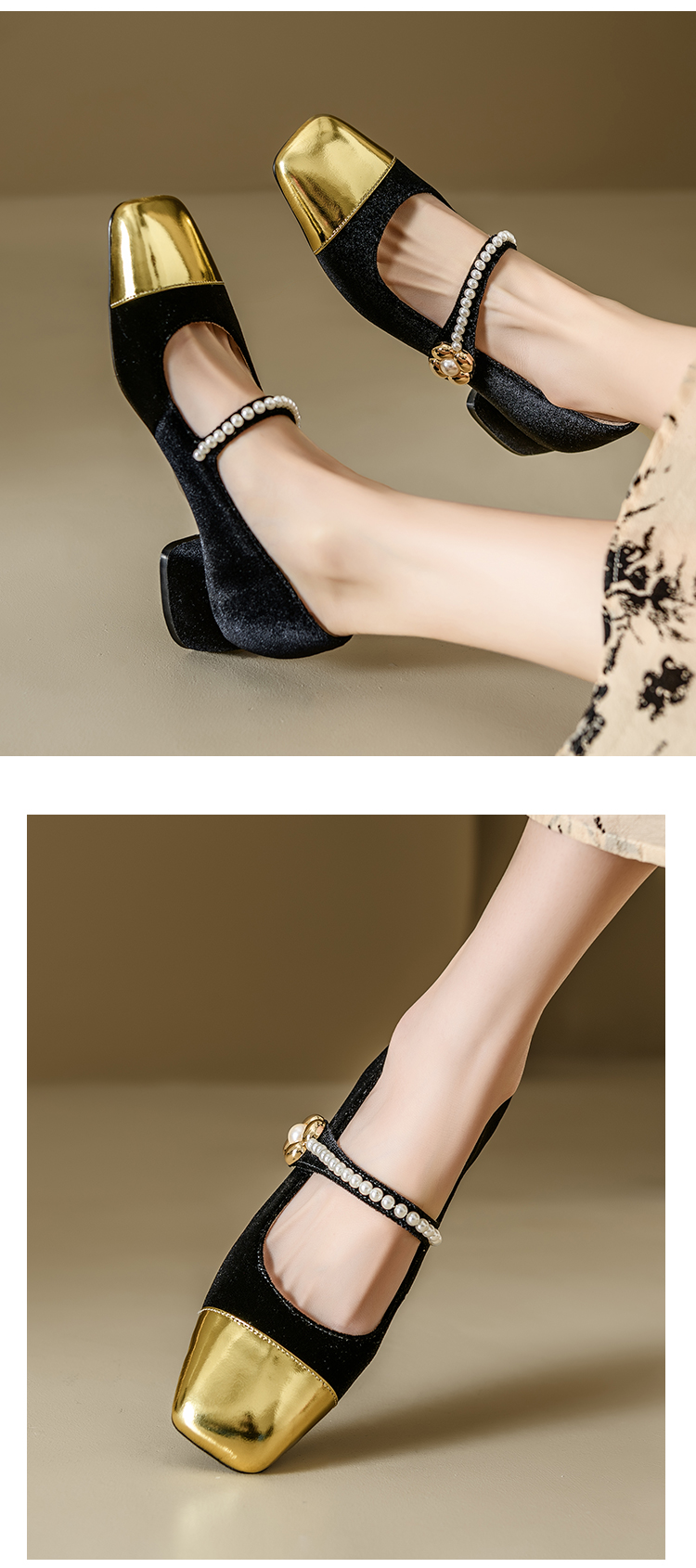 【预售5天】春季新款,珍珠法式金丝绒玛丽珍单鞋MN&B634