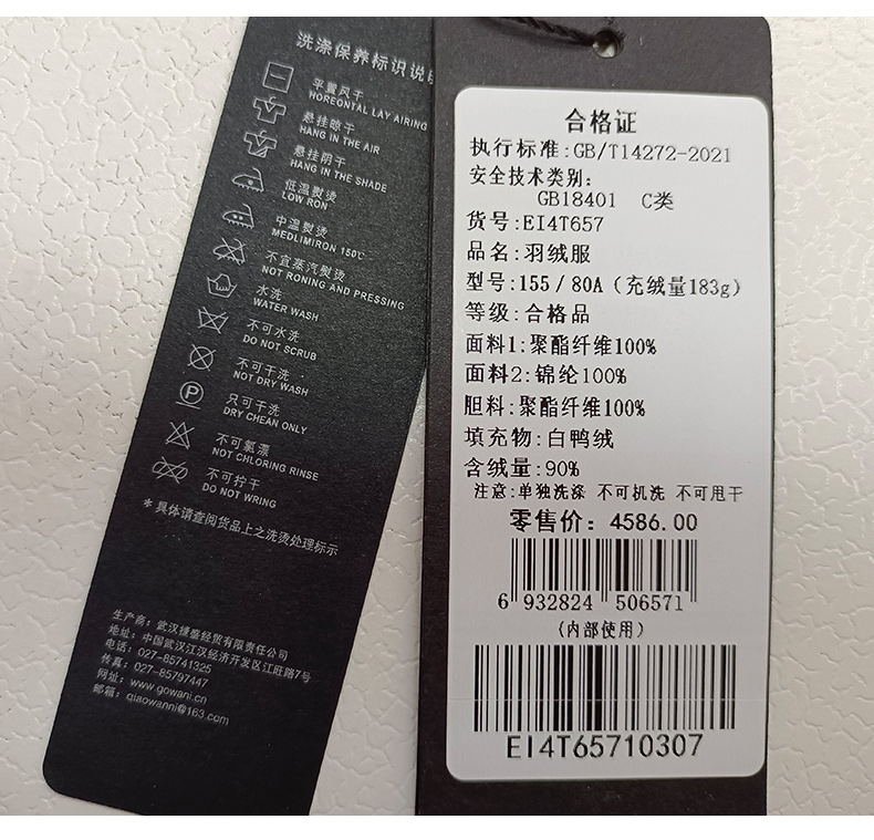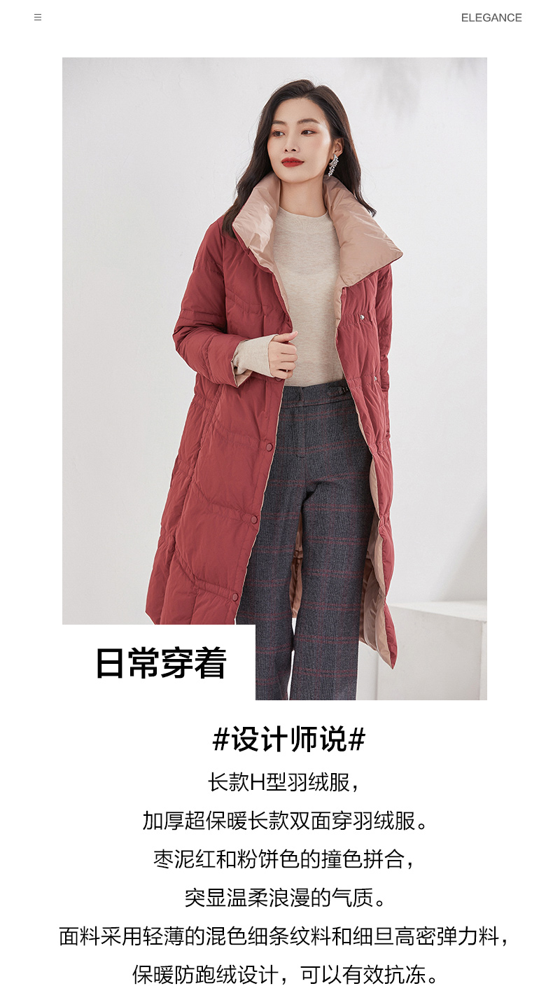 乔万尼新品羽绒服90白鸭绒高克重中长款保暖EI4T657