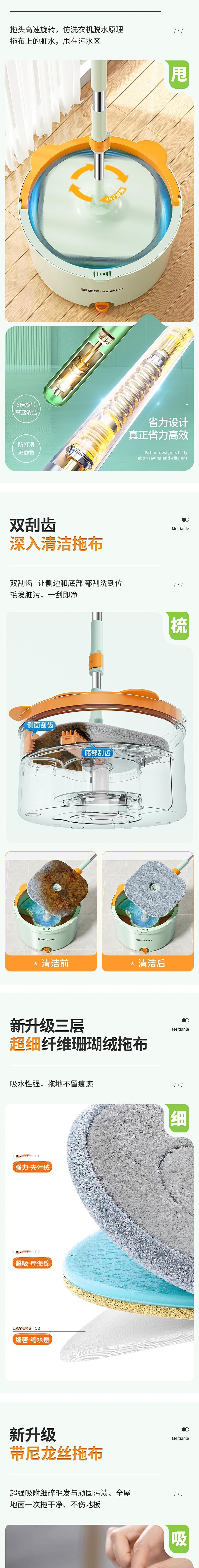 美添乐 净污分离拖把奶绿(2布+清洁片) 6949555005921