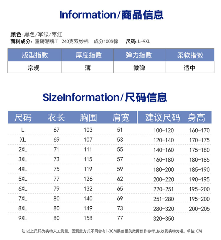 【超大码】【DSK】大依优型大码男装短袖T恤重磅圆领打底潮牌炸街纯色百搭时尚个性休闲体恤上衣胖子