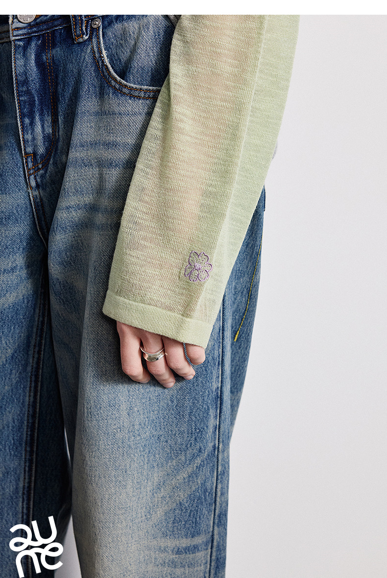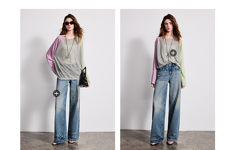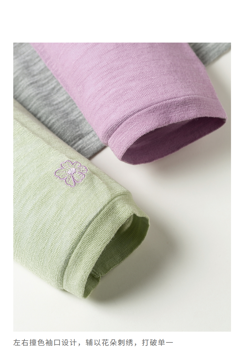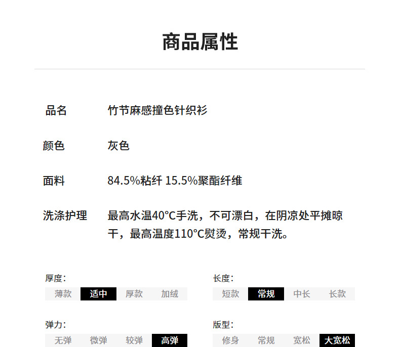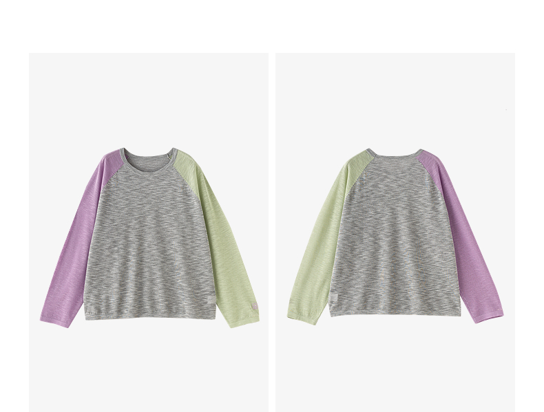 初语空气感竹节麻针织衫女2026新款圆领宽松不对称撞色上衣