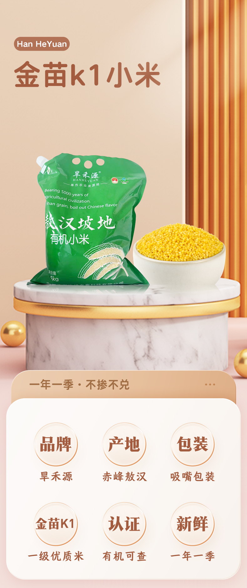 拓高 旱禾源内蒙古敖汉有机小米2.5kg/袋【周日不发货】