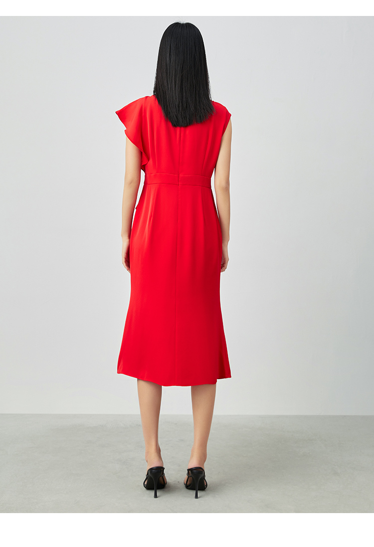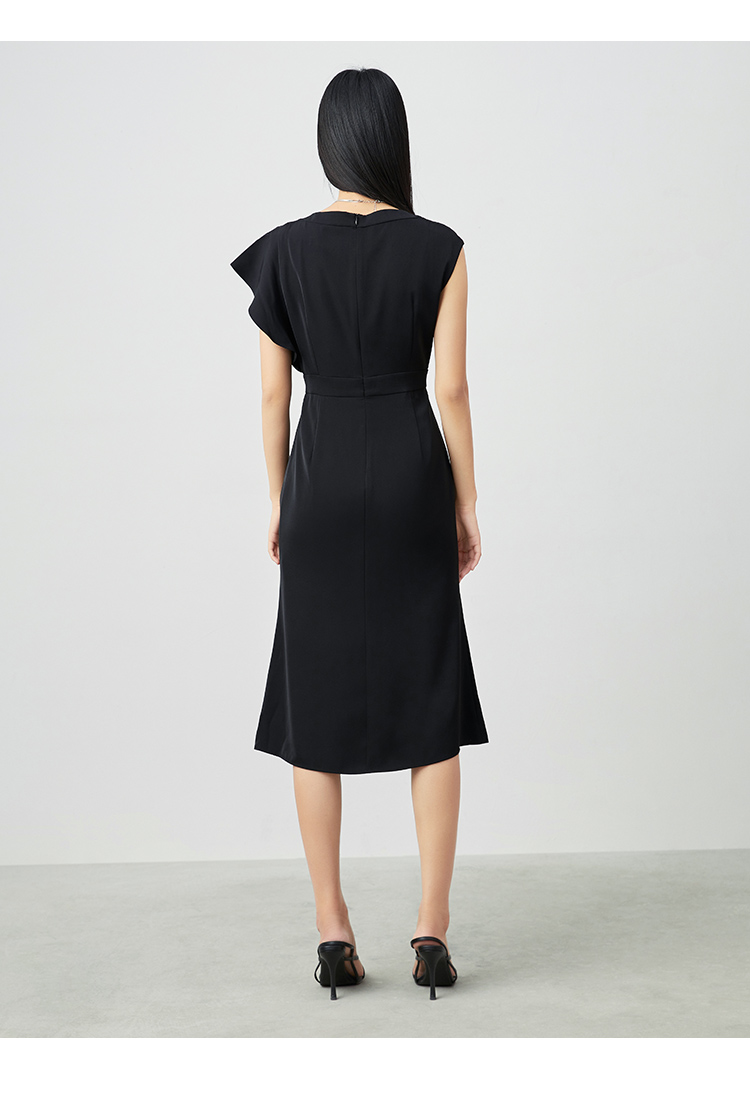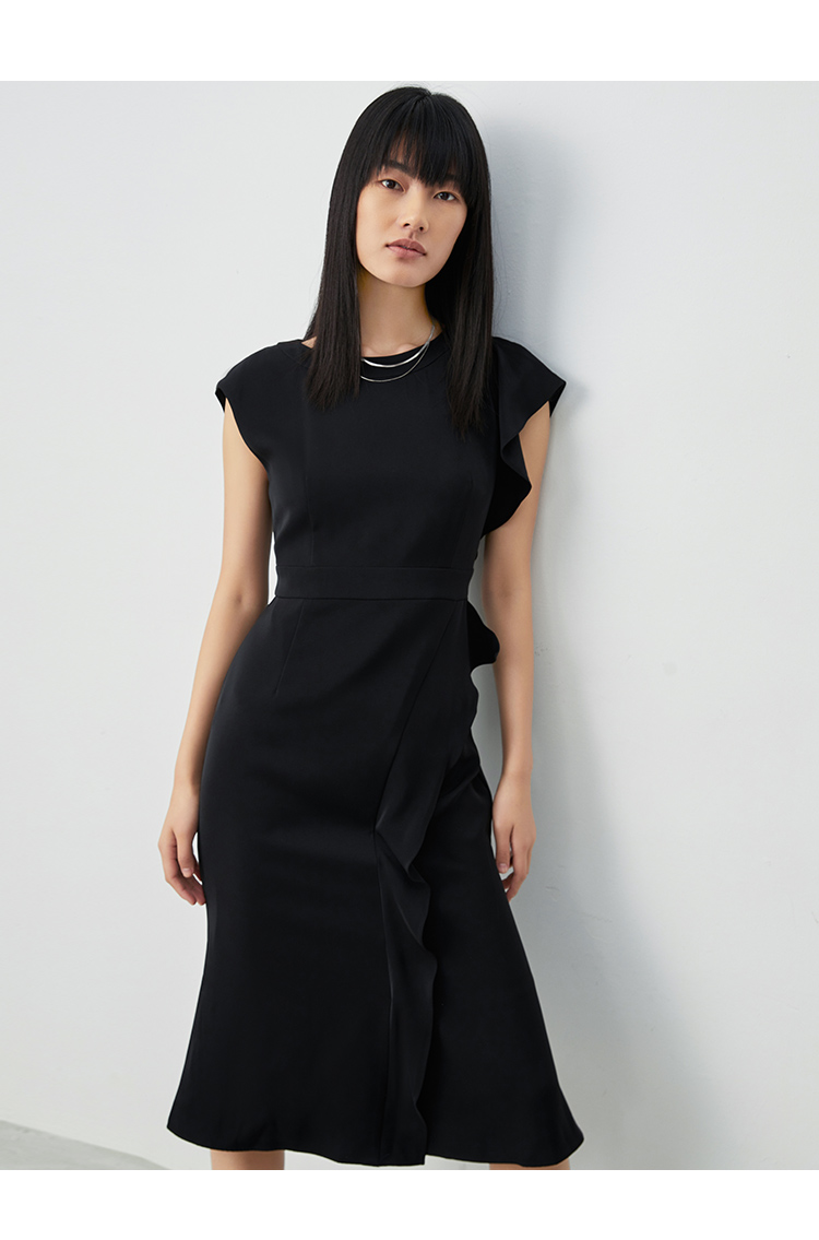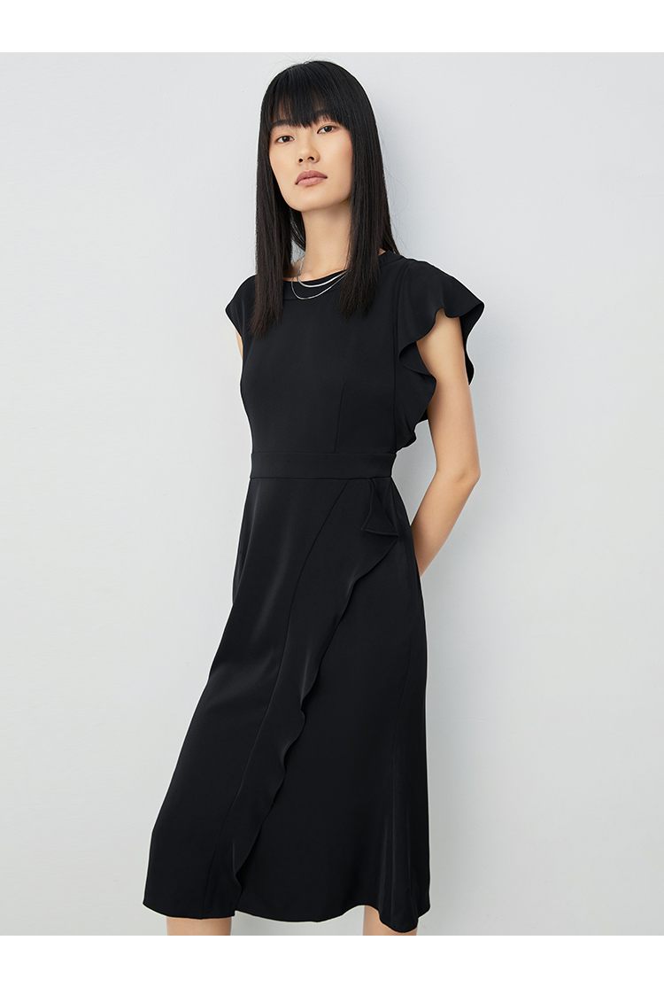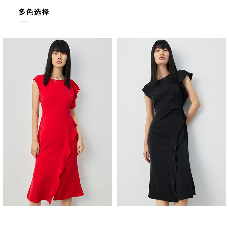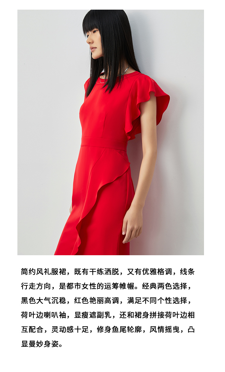 EITIE爱特爱女装夏季新品V领七分荷叶袖简约纯色衫上衣薄5713435