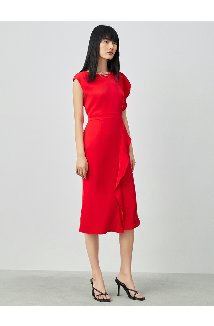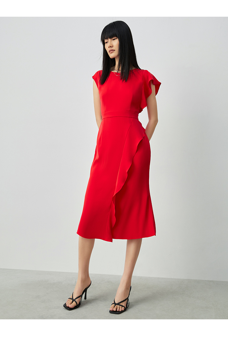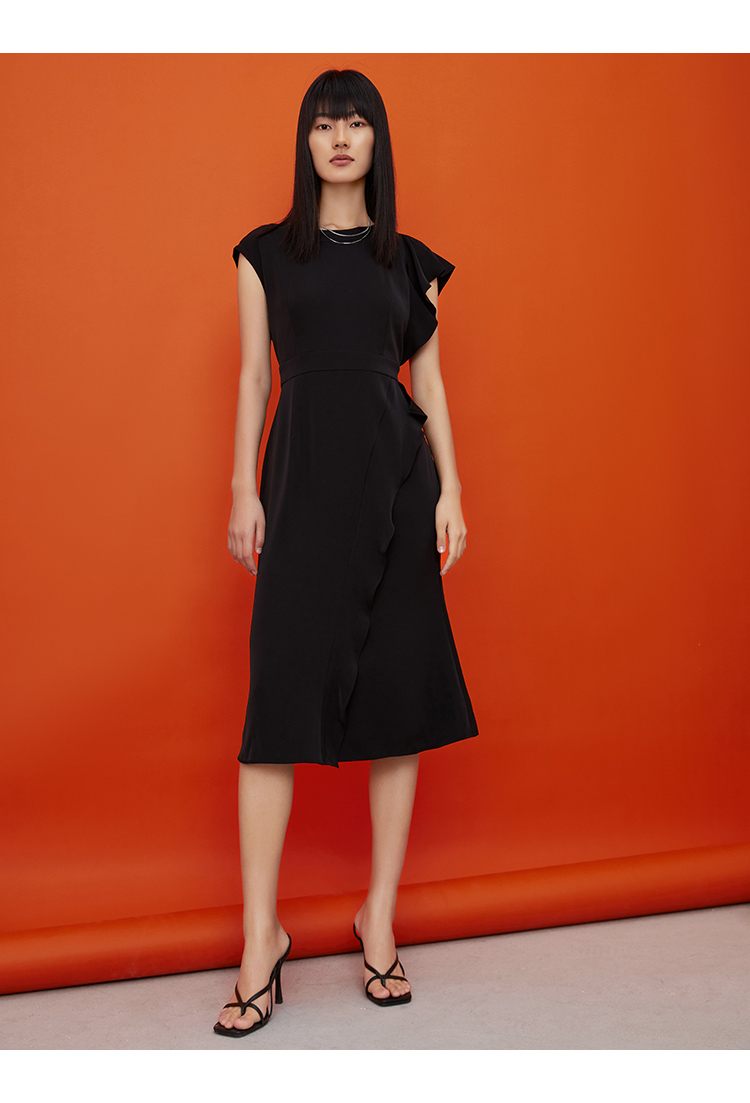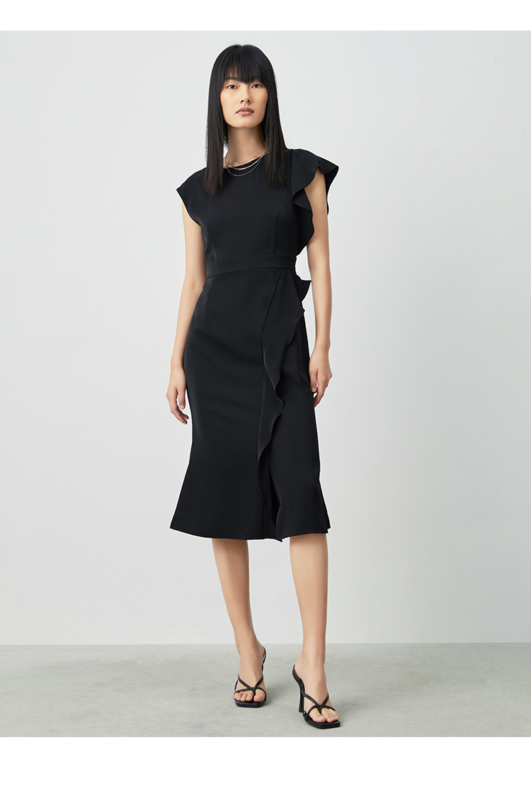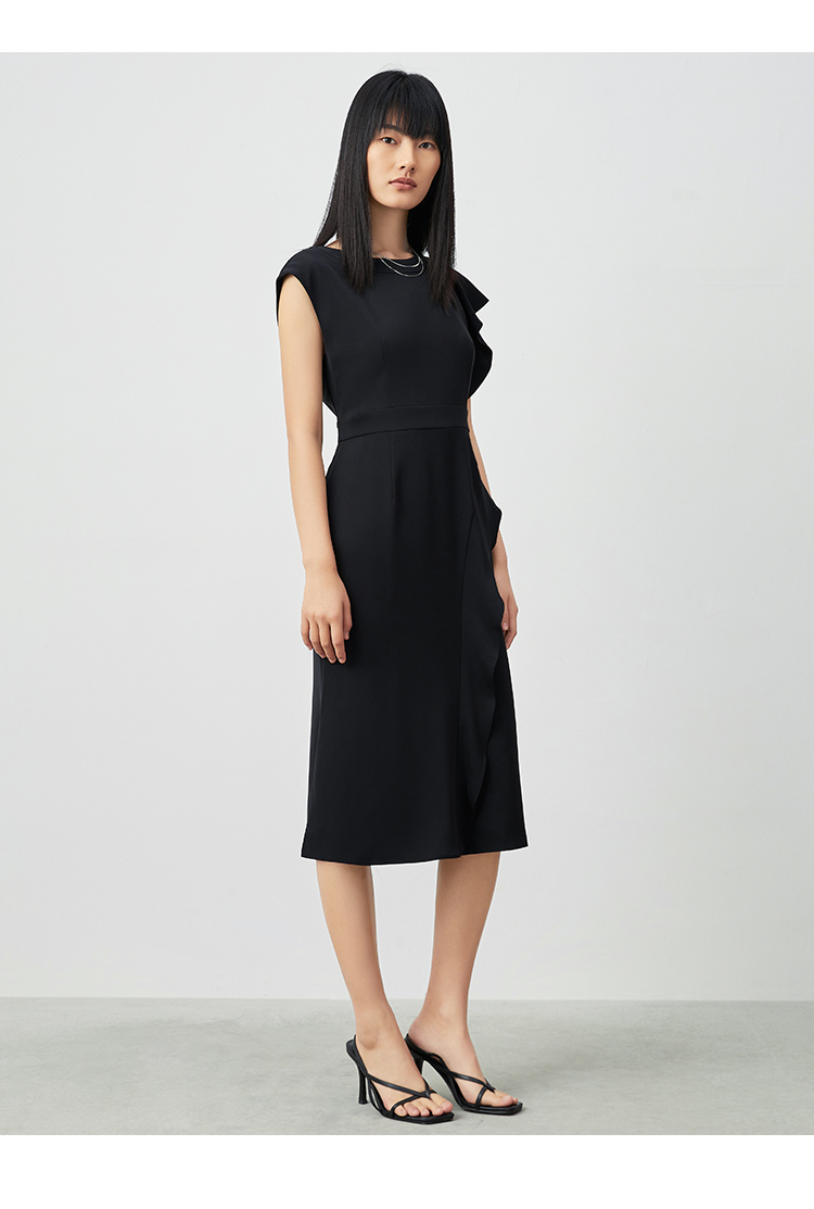 EITIE爱特爱女装夏季新品V领七分荷叶袖简约纯色衫上衣薄5713435