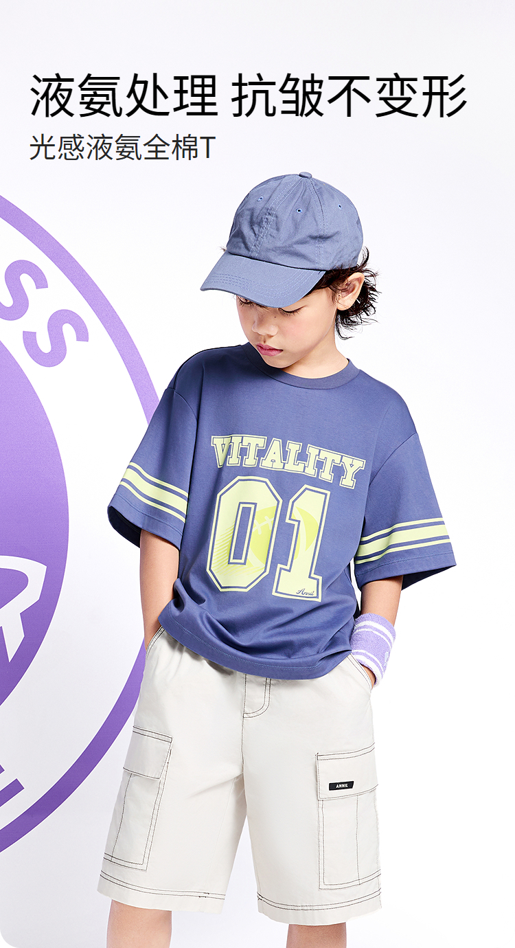 男童液氨圆领短袖上衣夏季新款安奈儿童装实体店同款AB521627