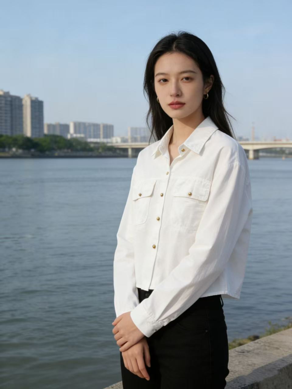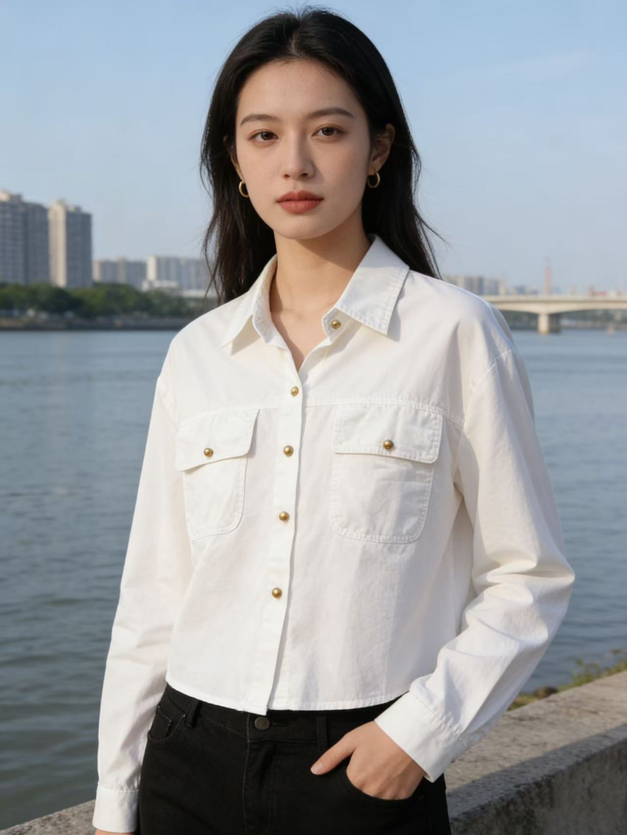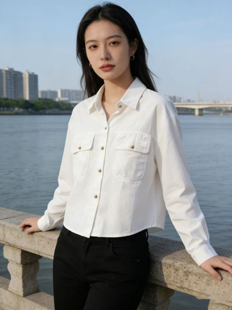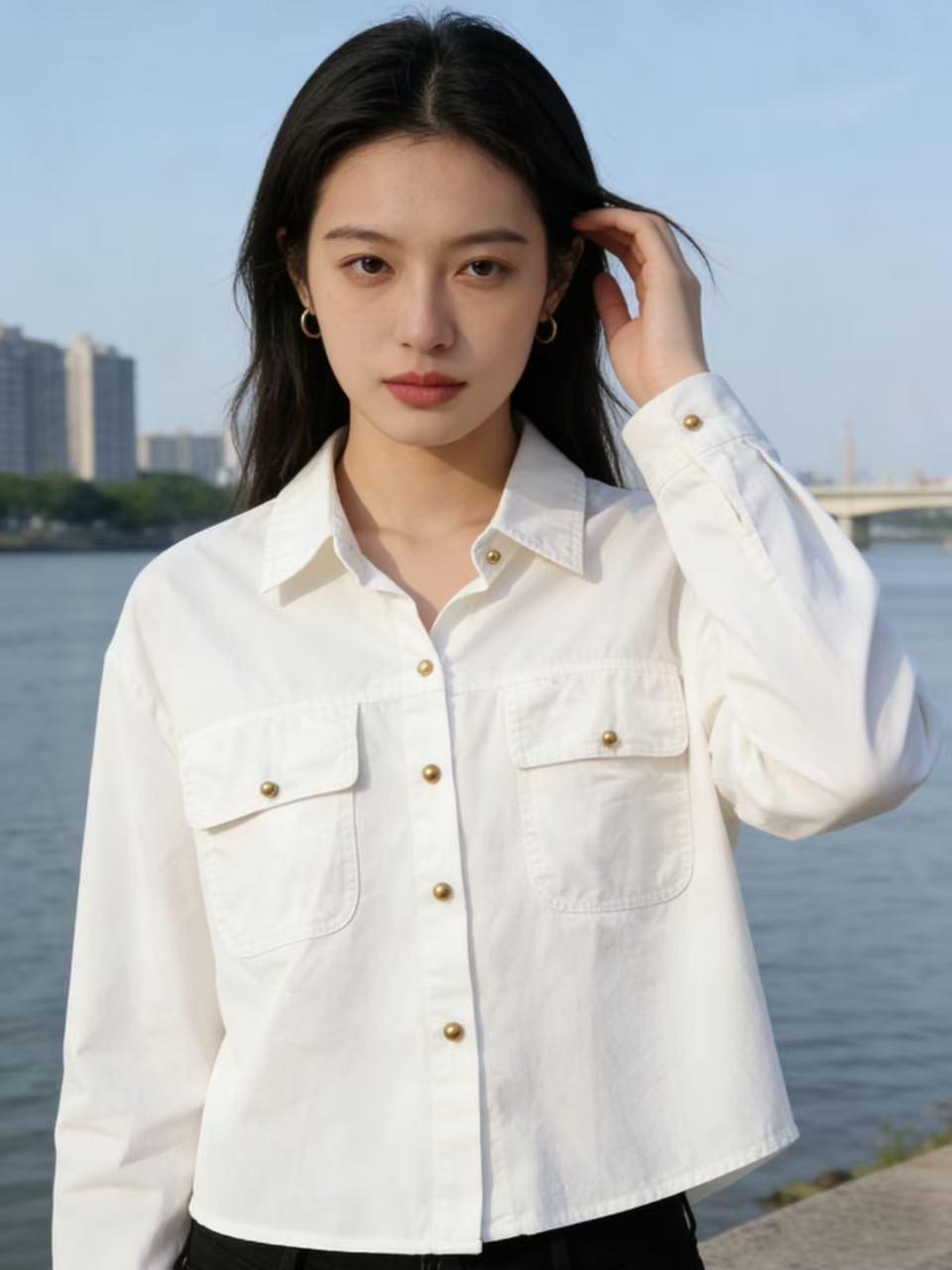 品牌促【自营】衣周期 6560 韩版100%棉金色扣宽松版衬衫上衣-喜出