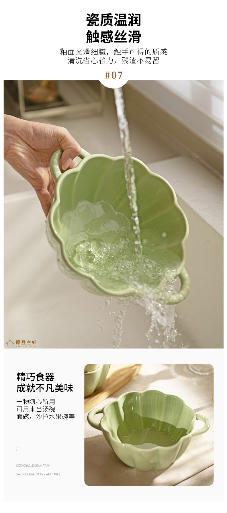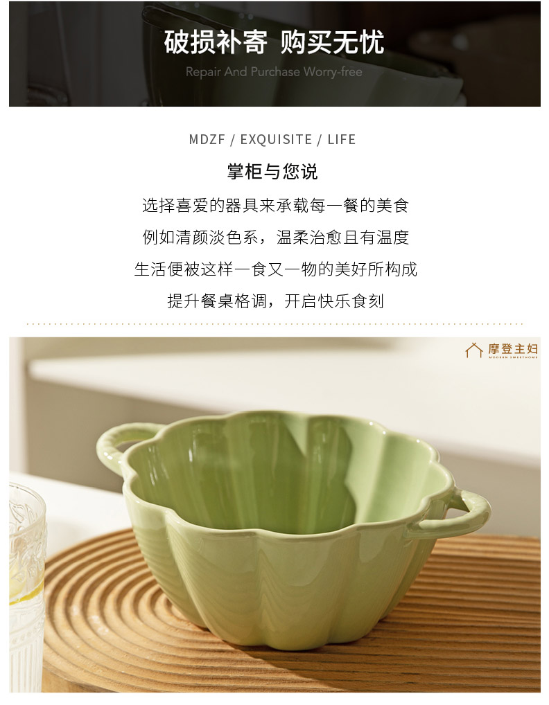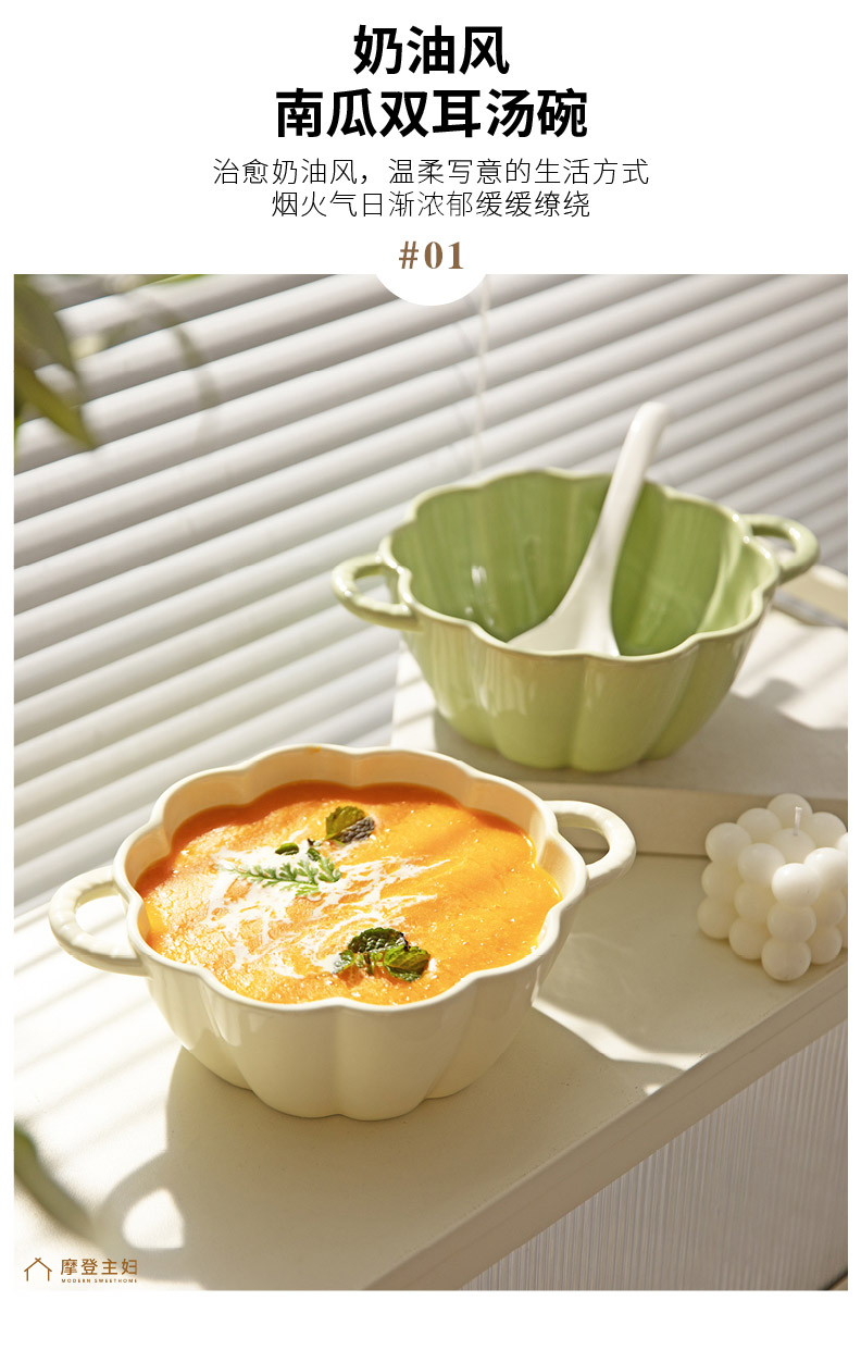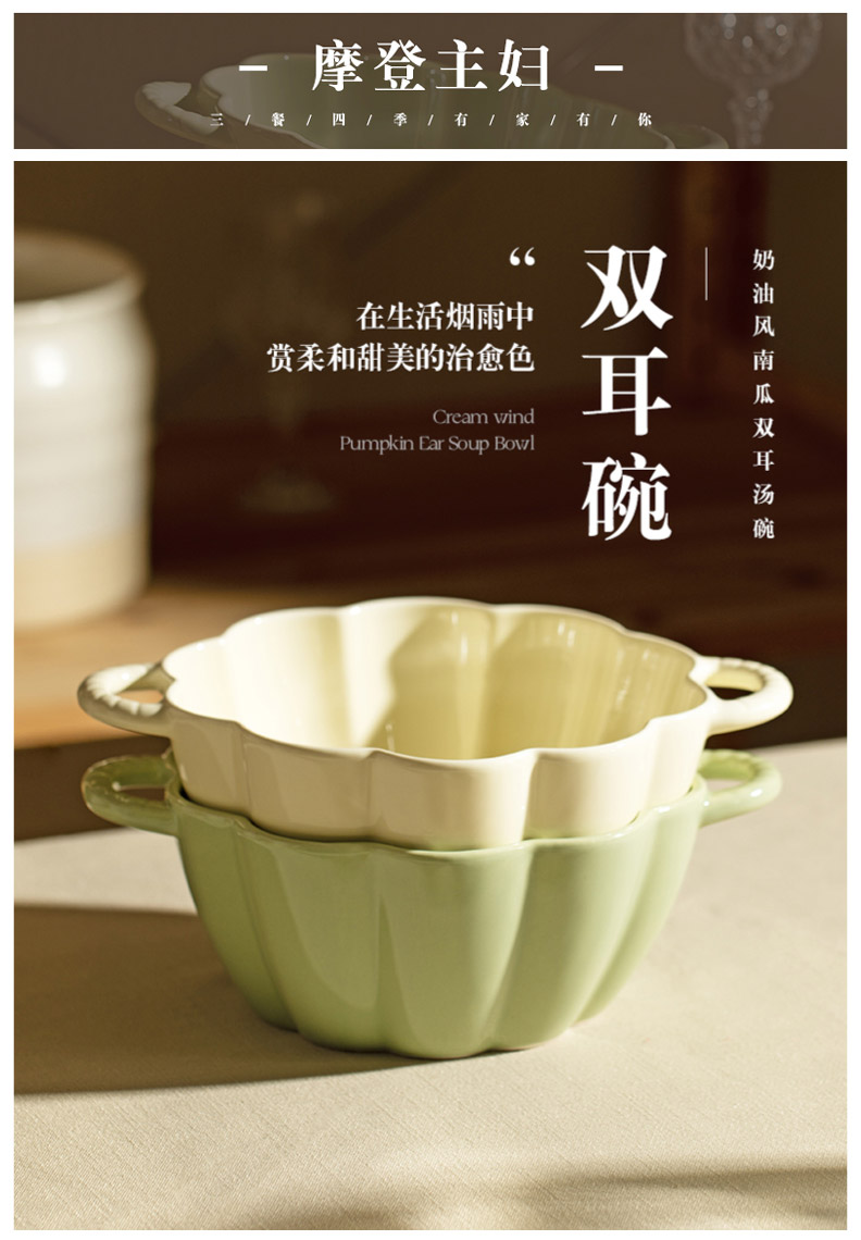 摩登主妇奶油风双耳汤碗家用2024新款陶瓷大号面碗大碗高级感汤盆