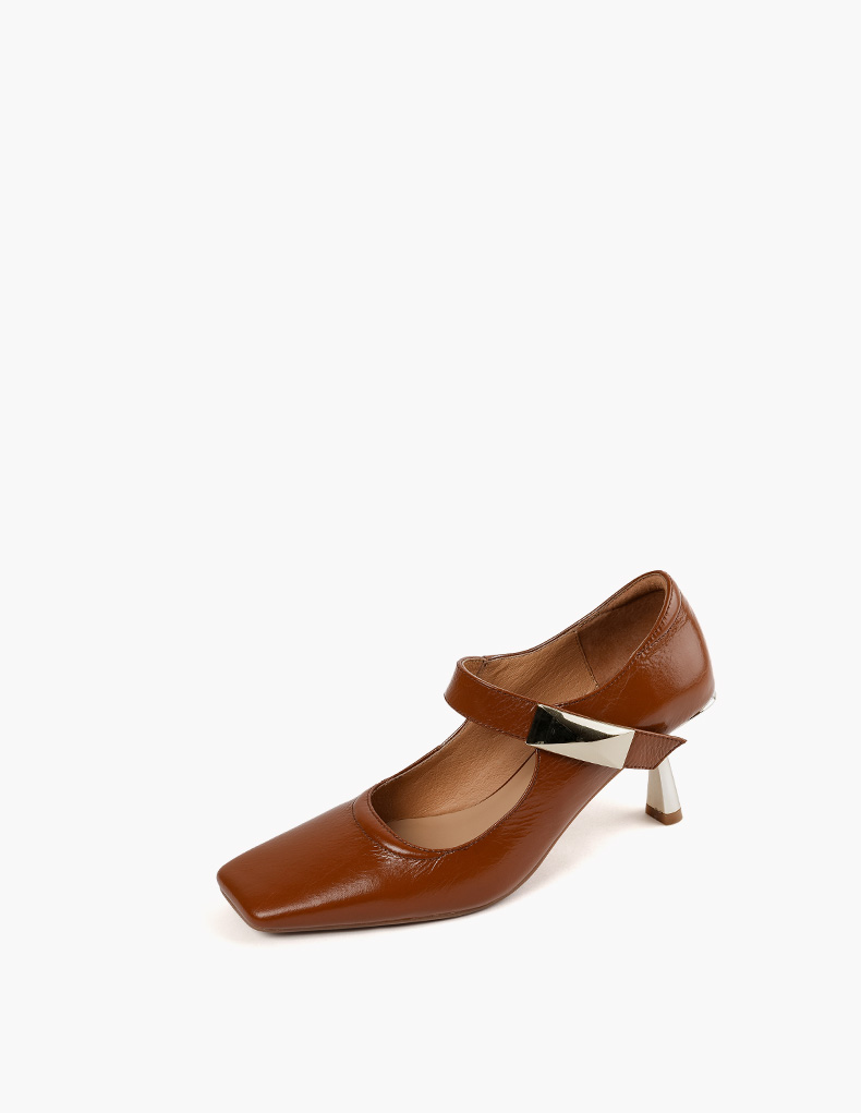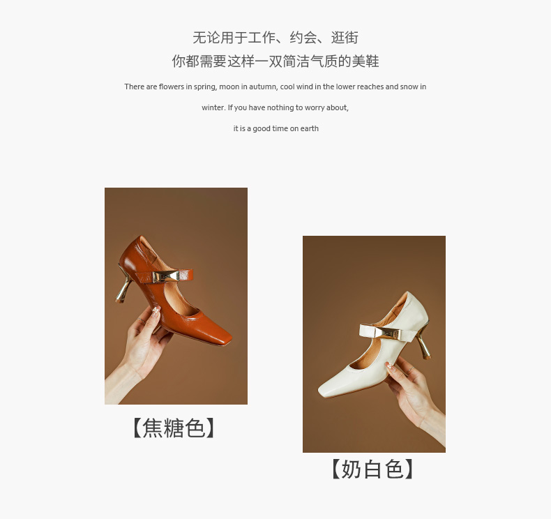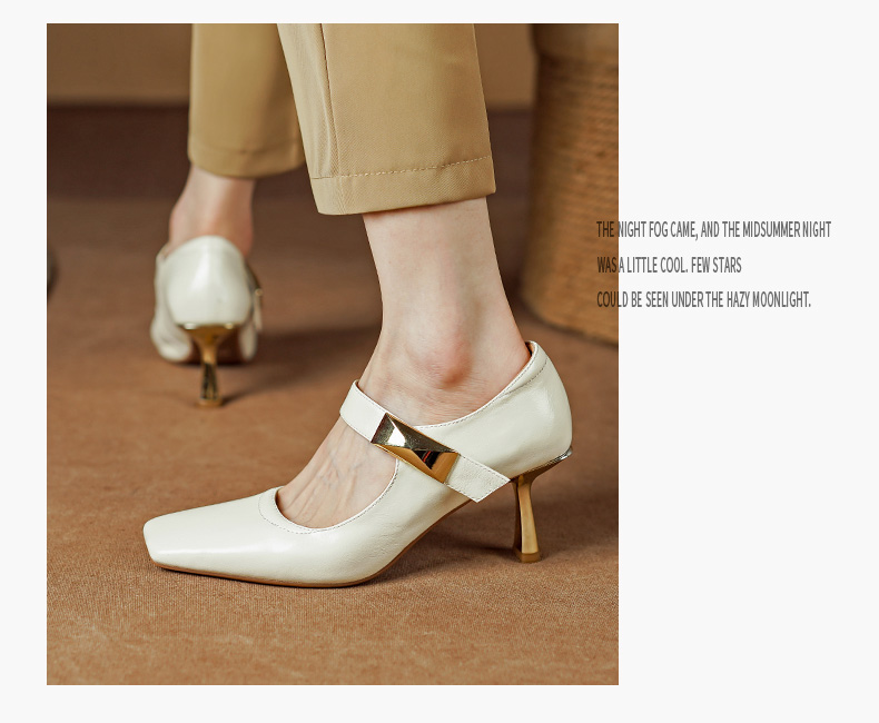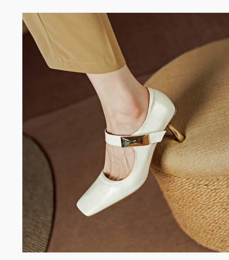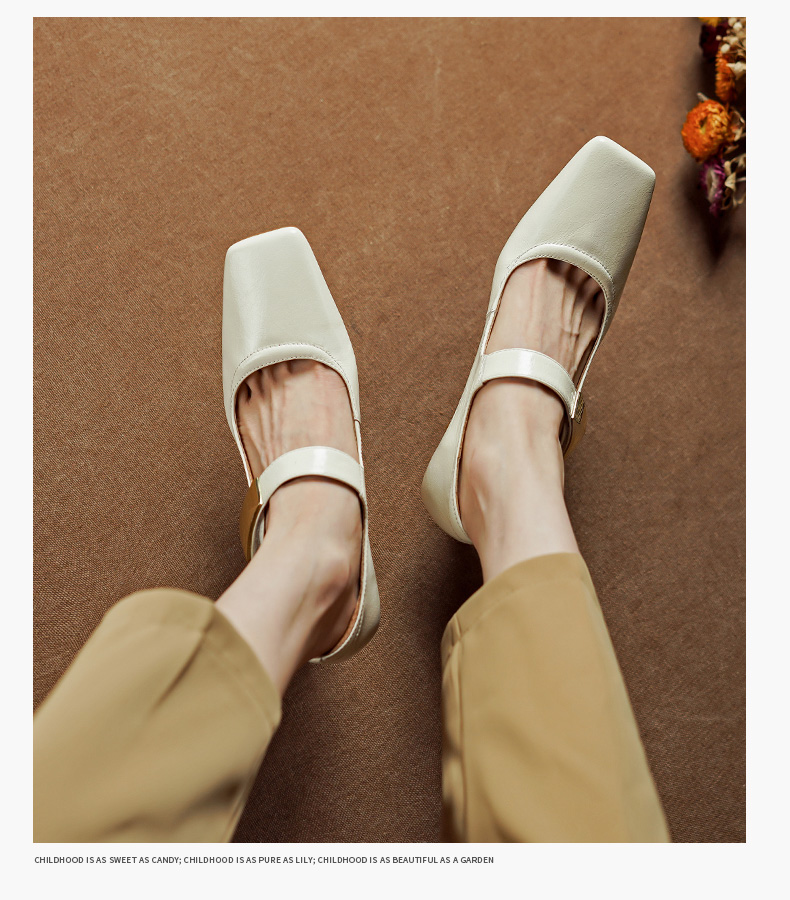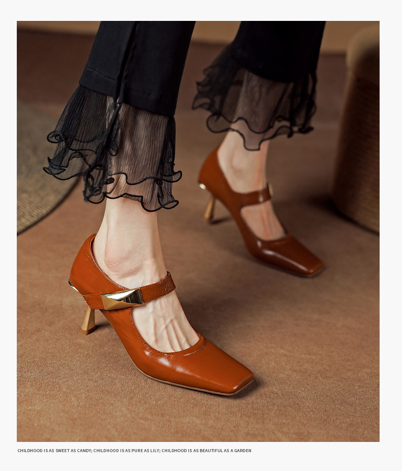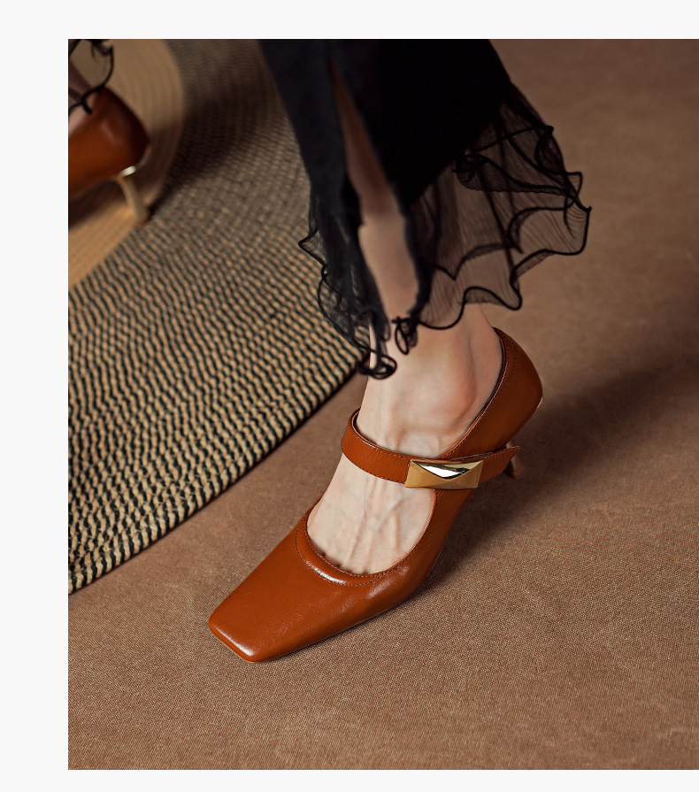 法式复古,里外全头层皮女人味方头细跟单鞋PS1276
