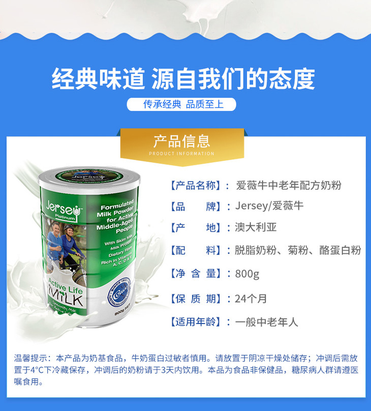 800g爱薇牛中老年配方奶粉 高钙配方 多种维生素