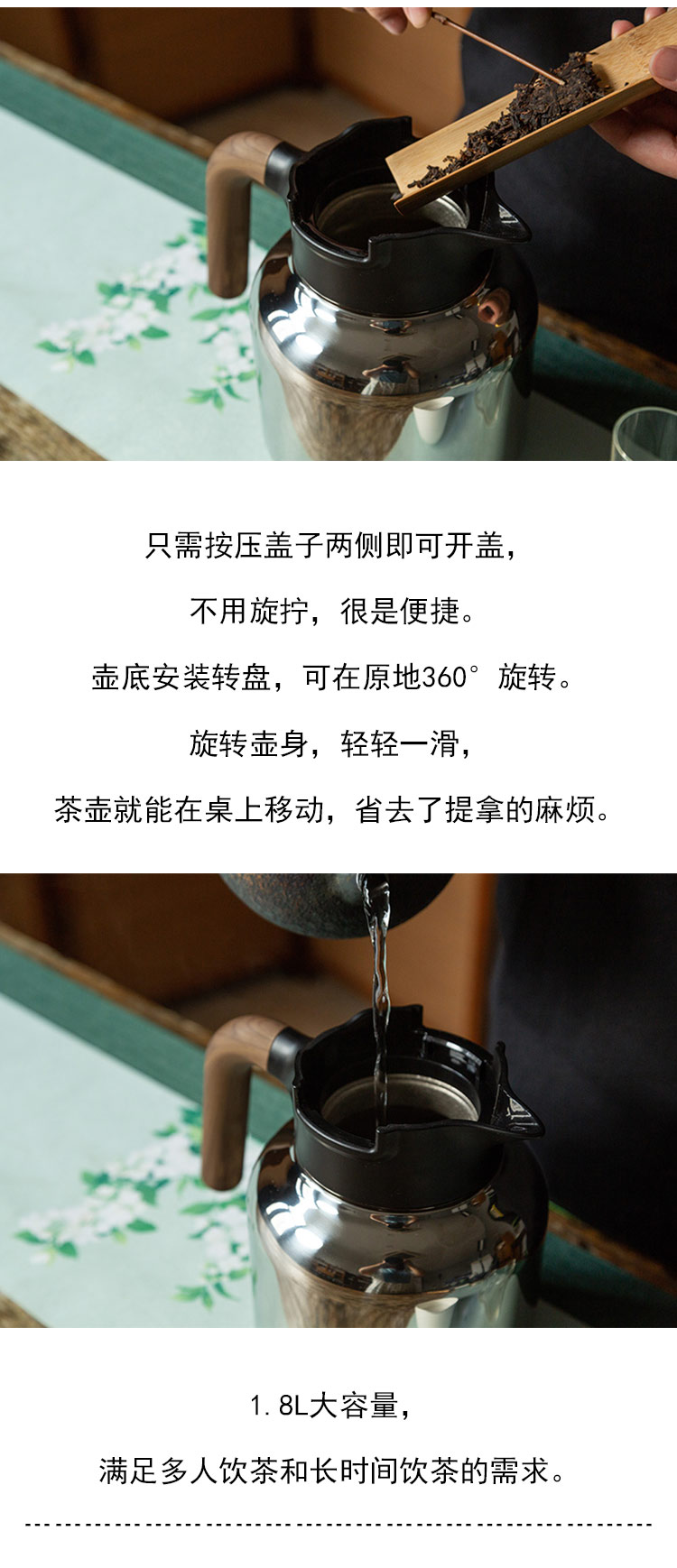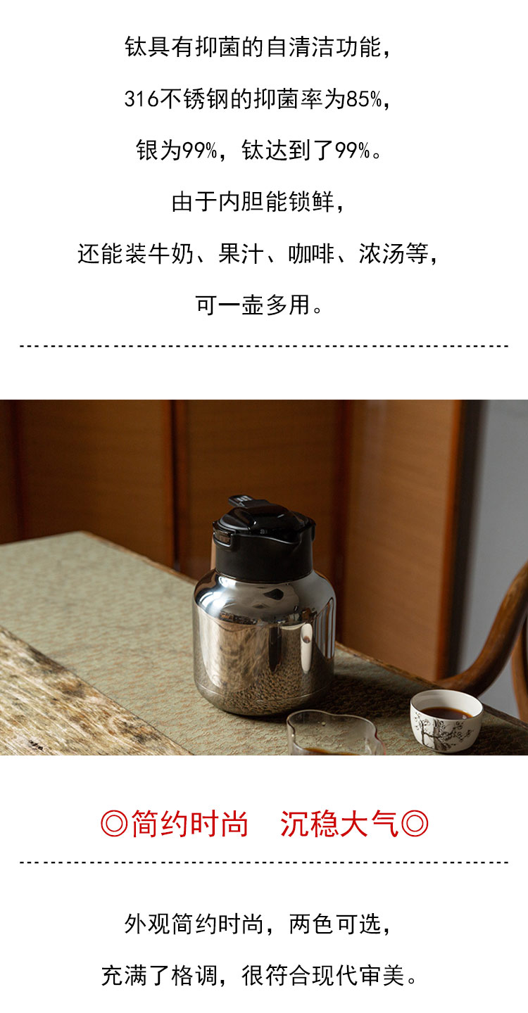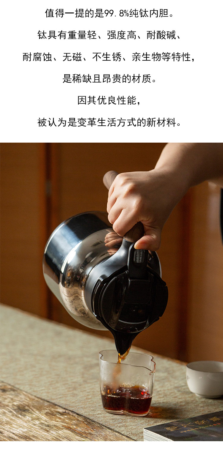 茶香记 纯钛焖茶壶1.8L大容量保温壶智能科技简约时尚纯钛内胆
