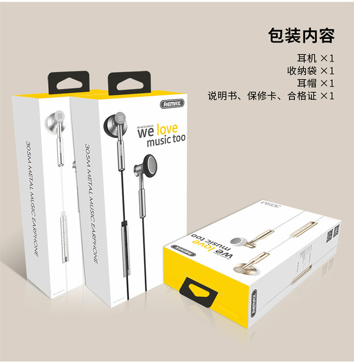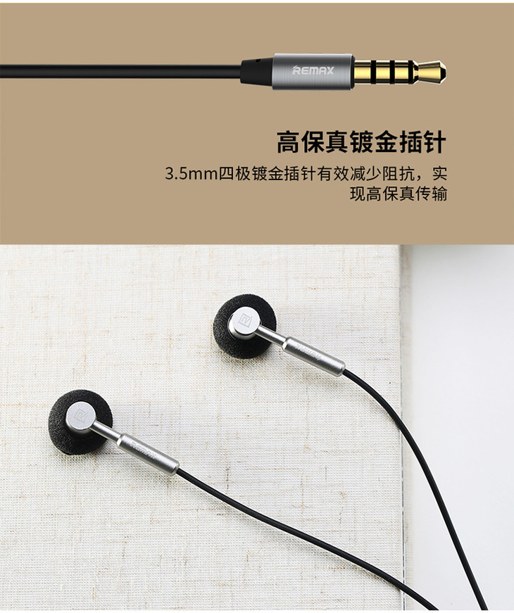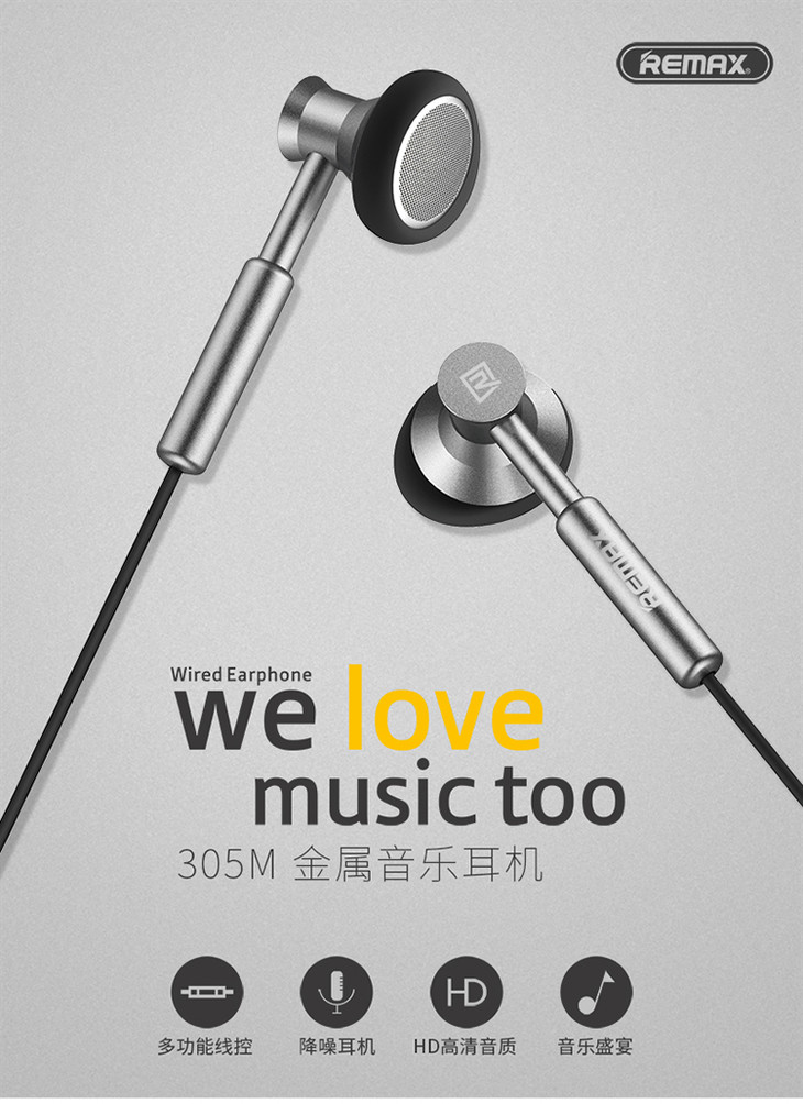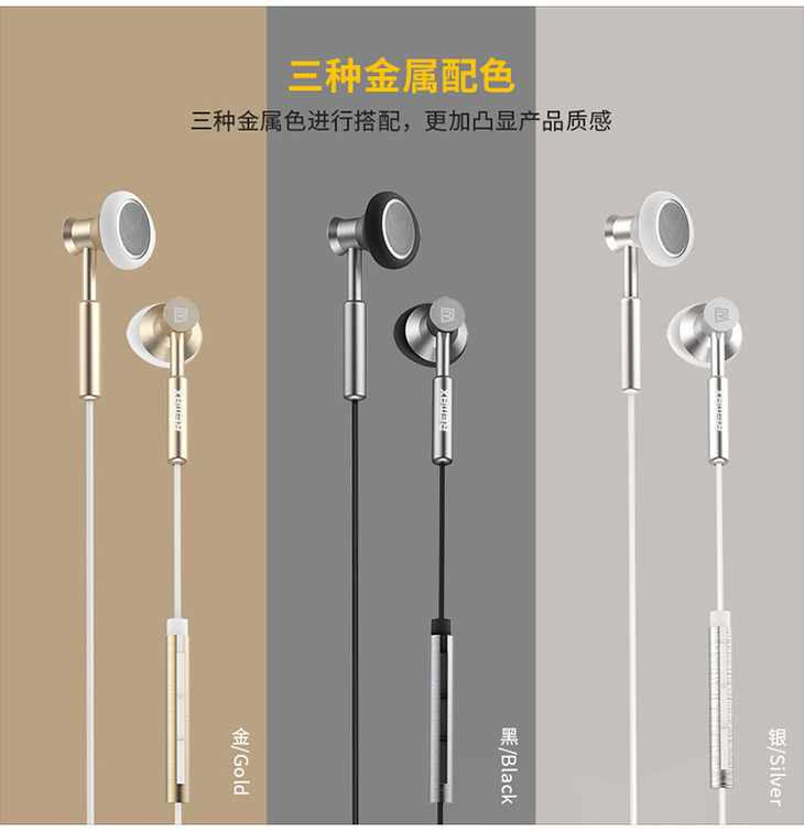 Remax手机耳机通用入耳式音乐线控金属耳机低重音防缠绕电脑MP3耳机