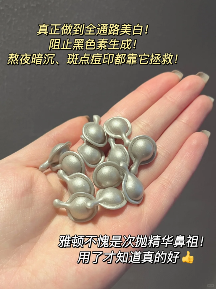 👑雅顿银胶面胶60粒 🌟温和美自尖子生!!宝藏美白精华 💎主打溶脂性VC可以深入渗透肌底由内而外的提亮肤色,温和又高效 👍脂溶性VC+烟酰胺+红没药醇,美白淡斑+舒缓修护同等在线! 💦啫喱质地 很好推开!清爽不粘腻 ✅单颗单次,成分锁鲜,用量精准 ✨各位痘印斑点肌、暗沉肌真的可以看看它!