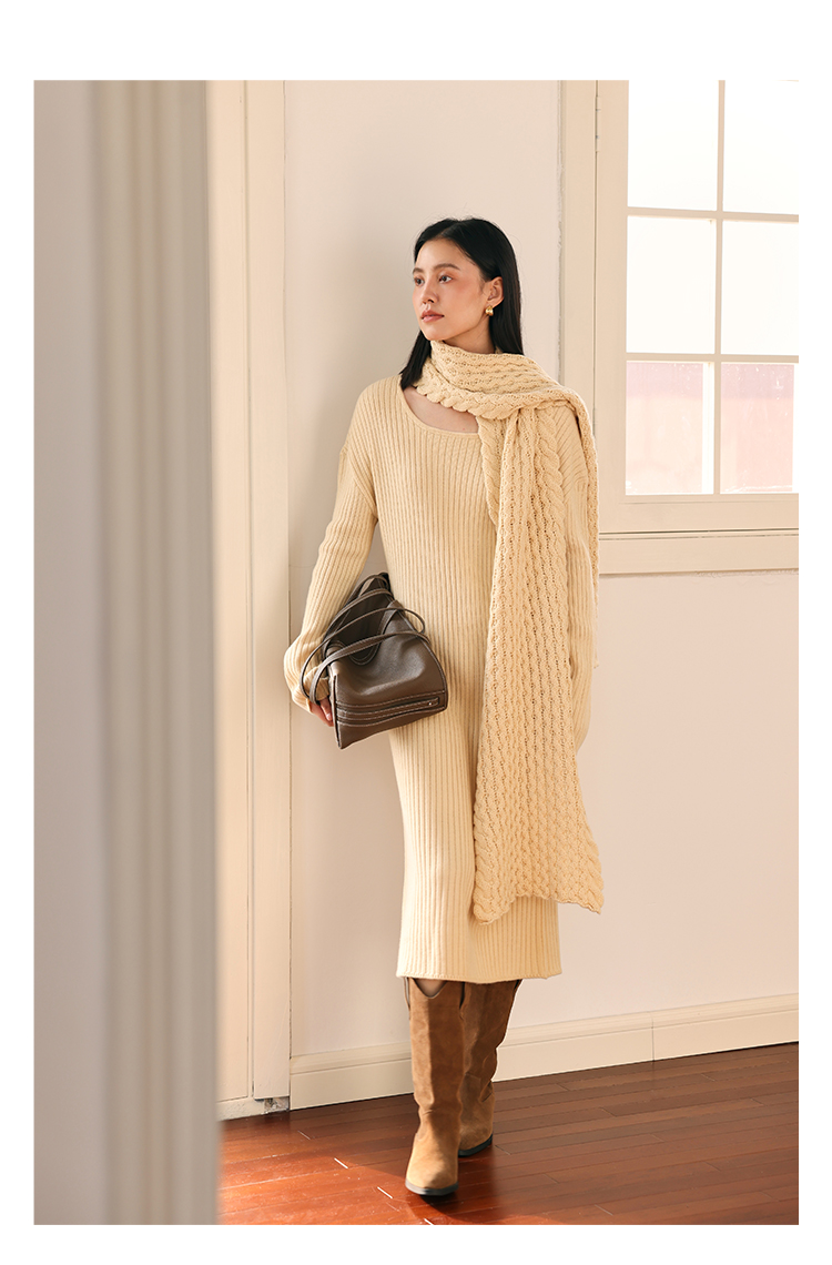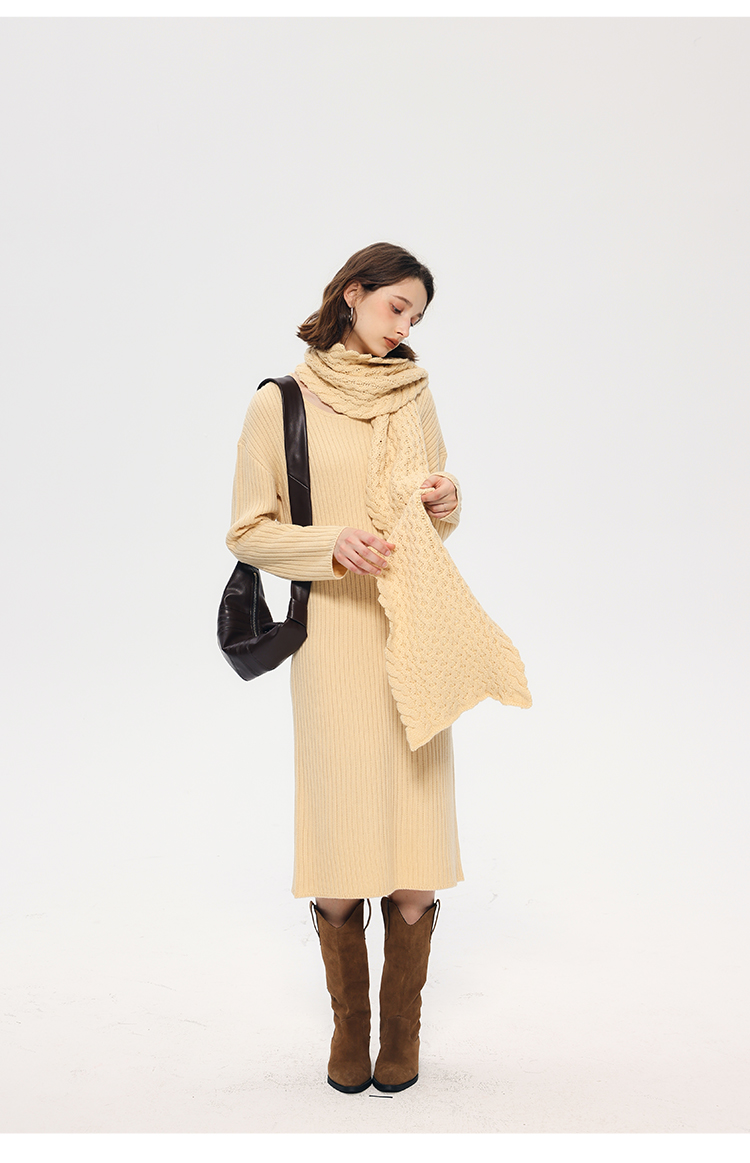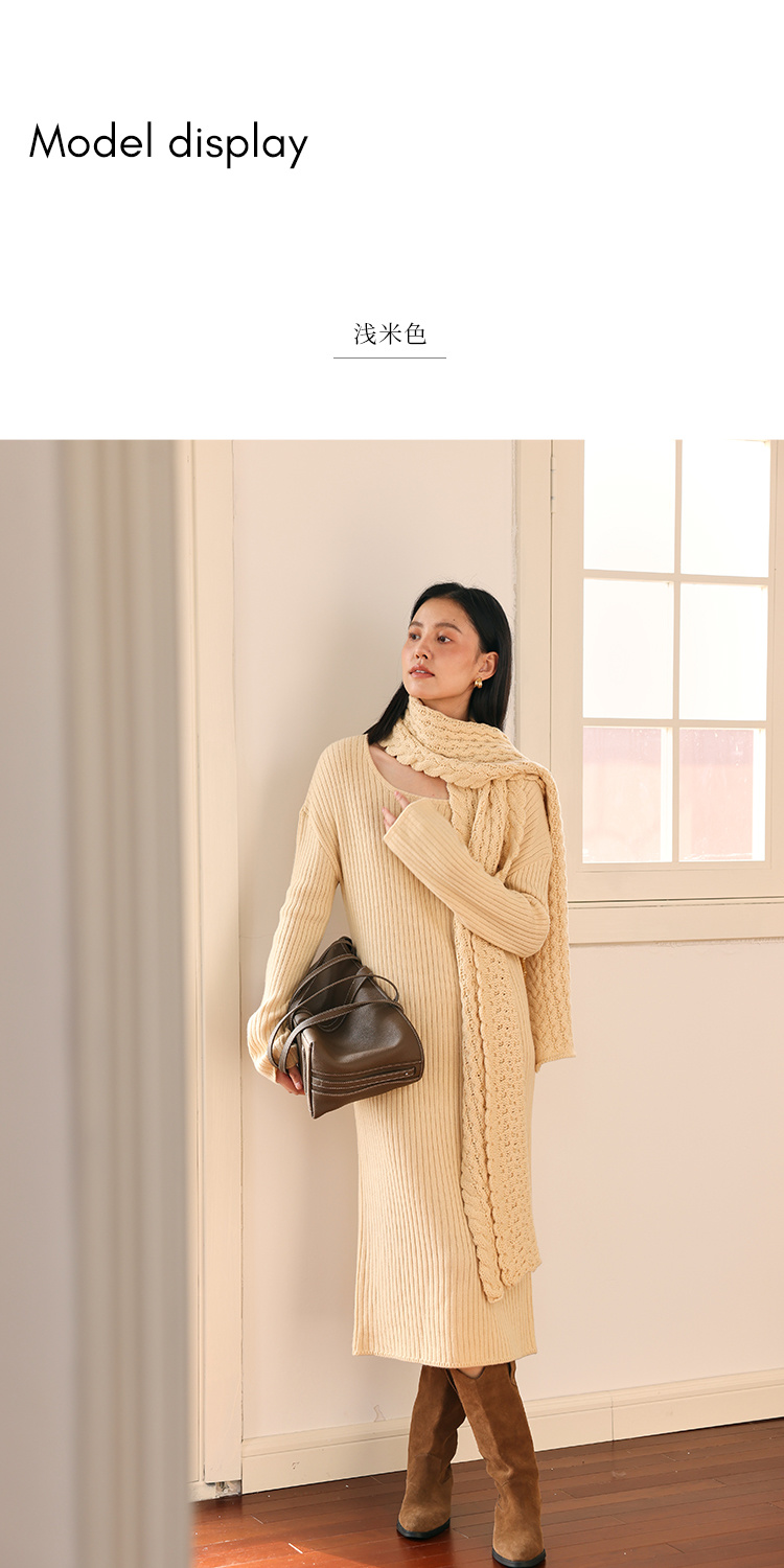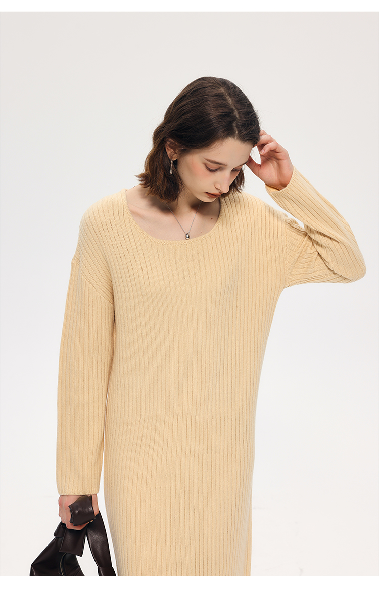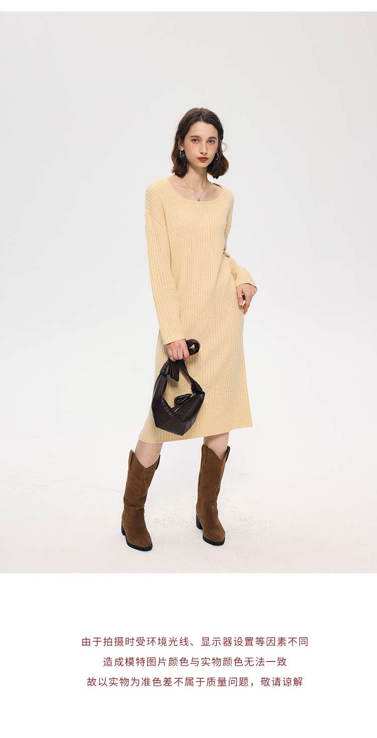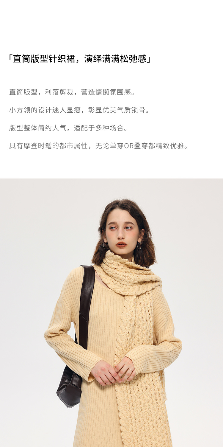 HeyDress方领针织连衣裙法式宽松慵懒感毛衣裙直筒气质裙子