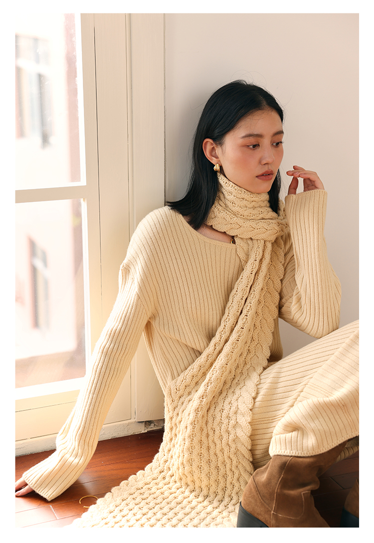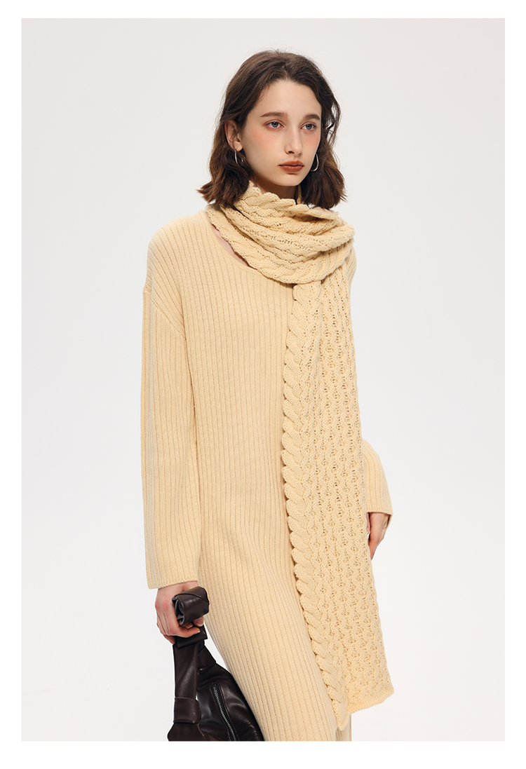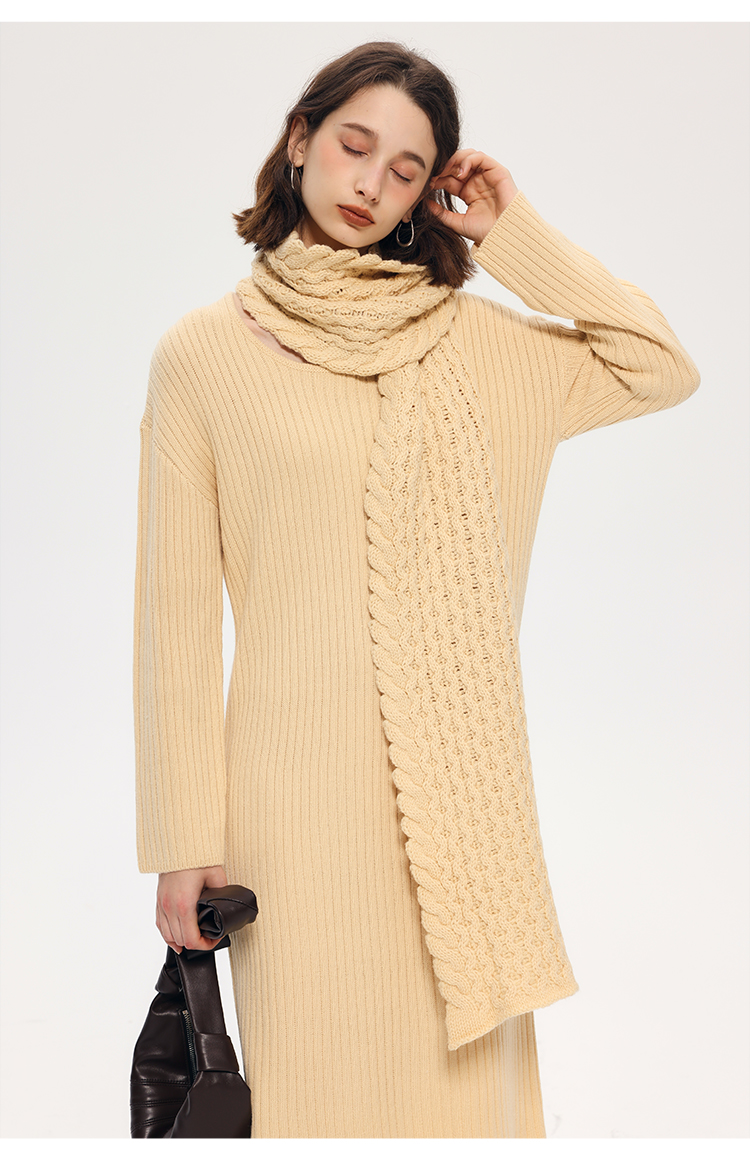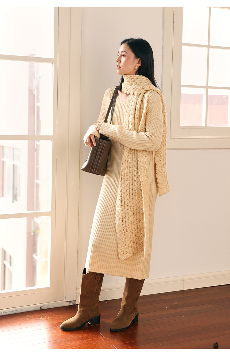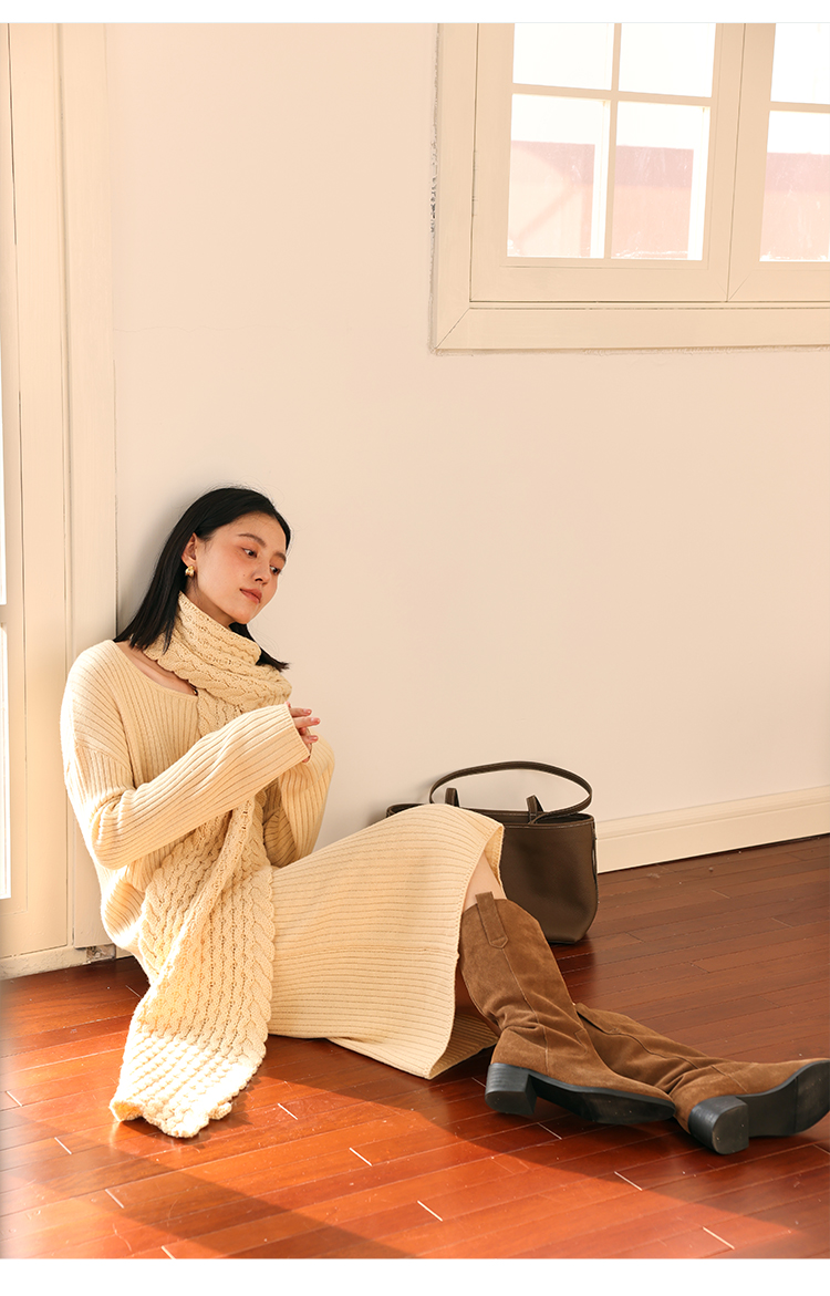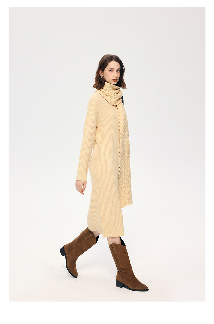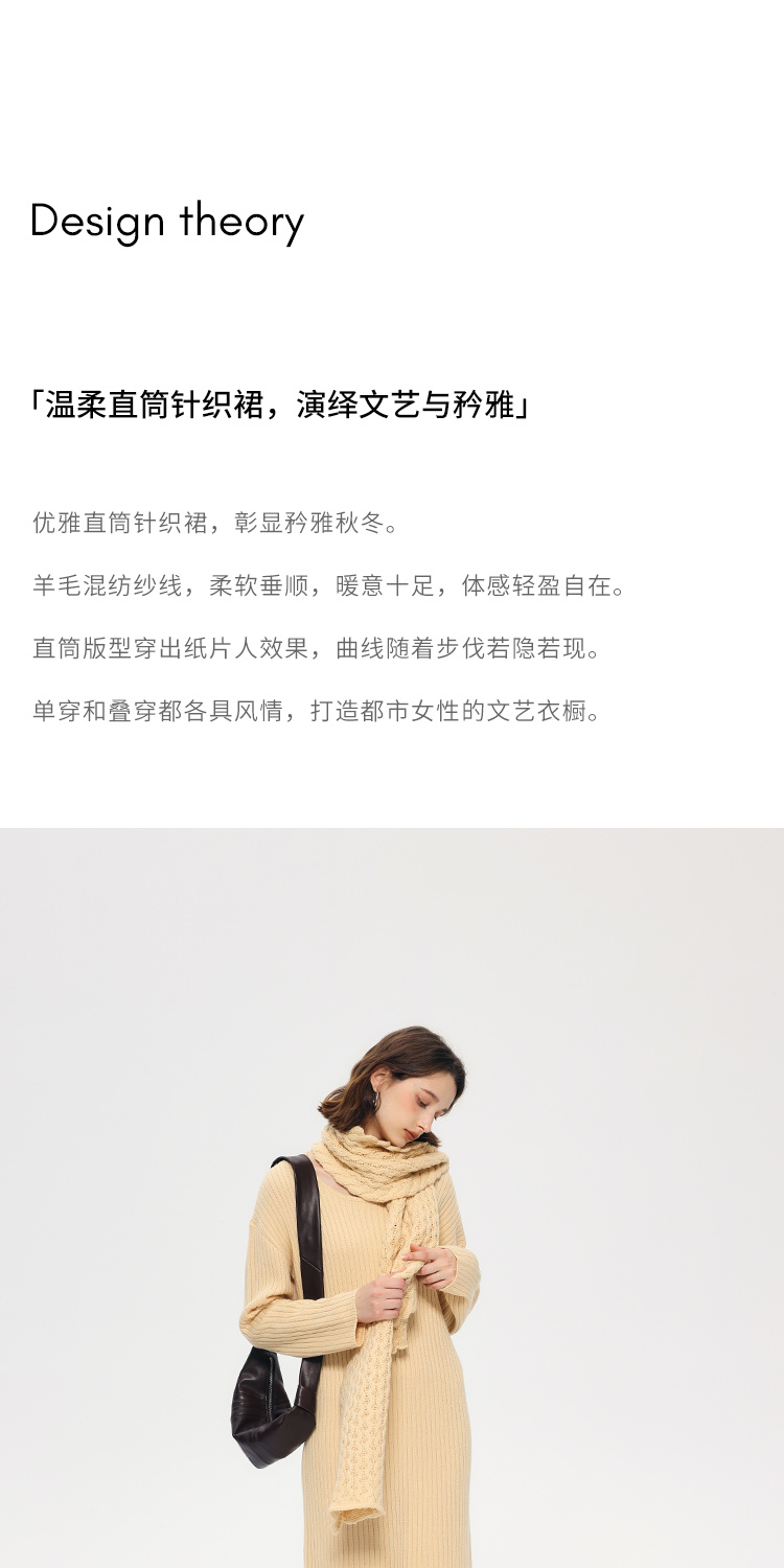 HeyDress方领针织连衣裙法式宽松慵懒感毛衣裙直筒气质裙子