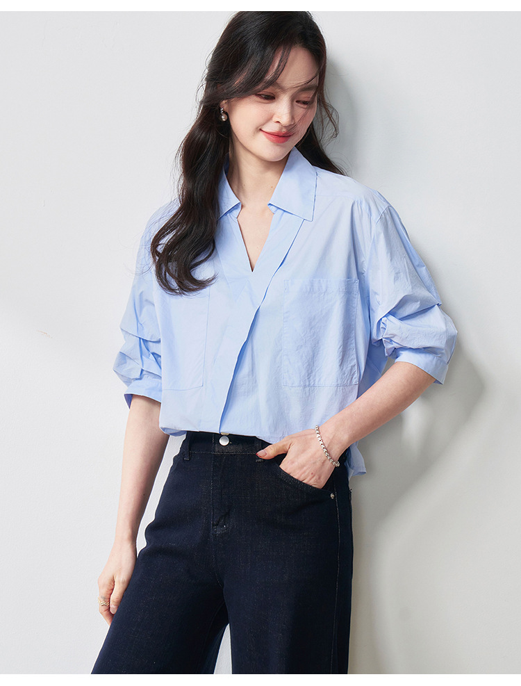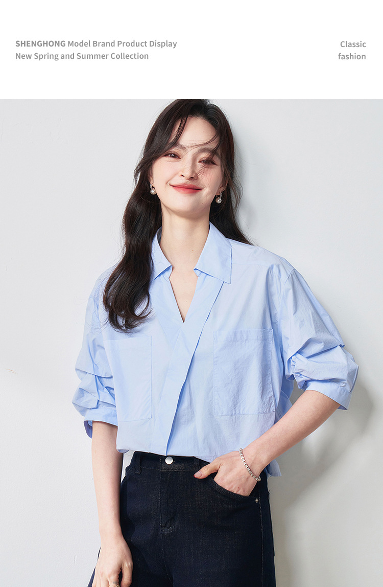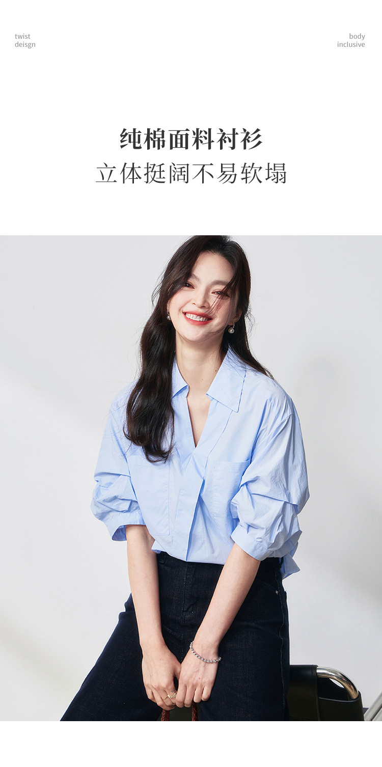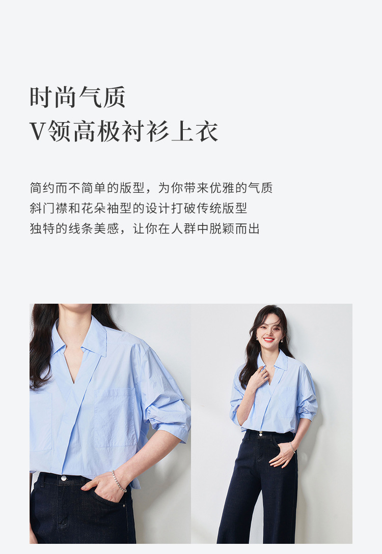 【高货sh】全新升级【铂金会员174/天猫229/差价55】(01225) 洛诗琳气质职场斜门襟V领套头五分袖衬衫通勤小众休闲上衣