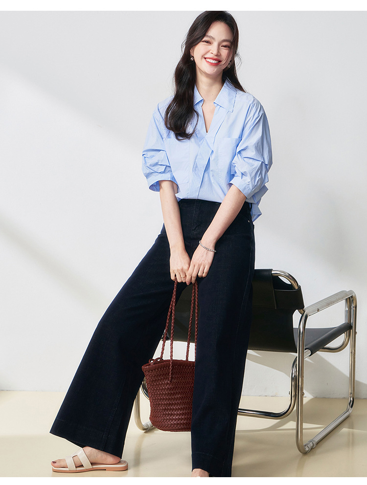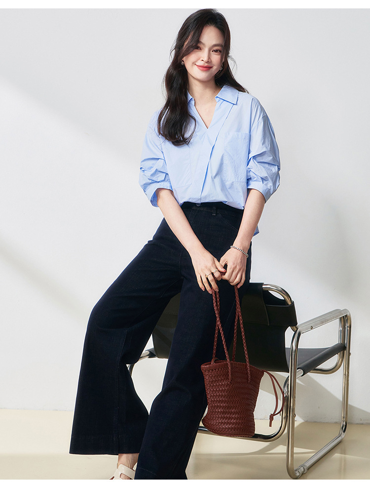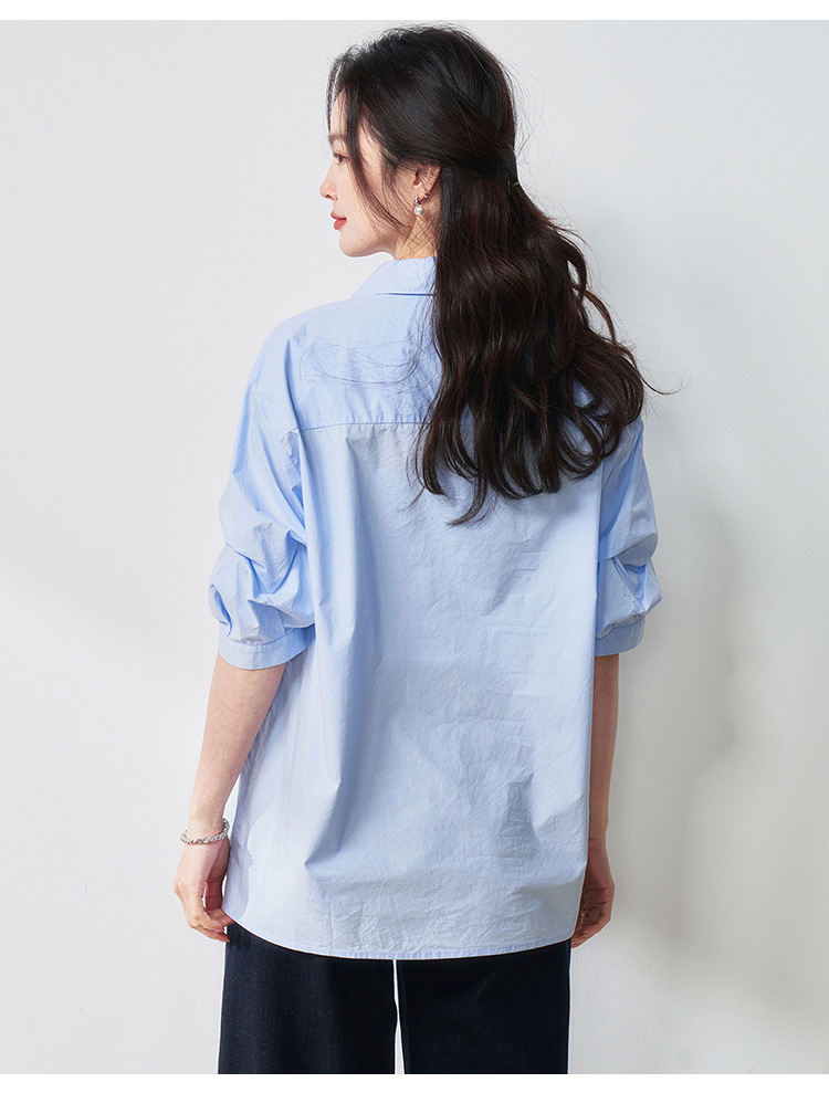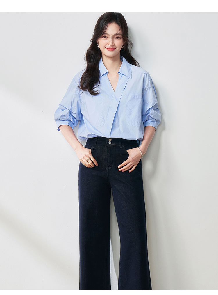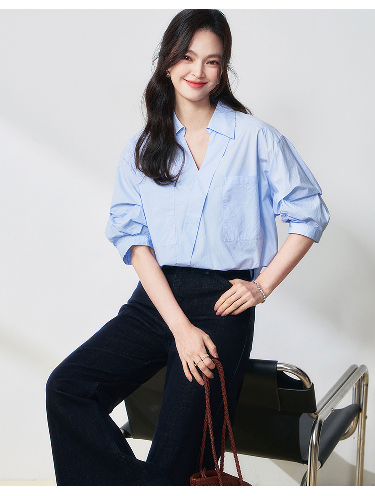 【高货sh】全新升级【铂金会员174/天猫229/差价55】(01225) 洛诗琳气质职场斜门襟V领套头五分袖衬衫通勤小众休闲上衣