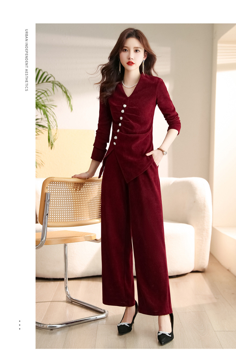 HR WH23119气质套装优雅收腰显瘦休闲修身两件套