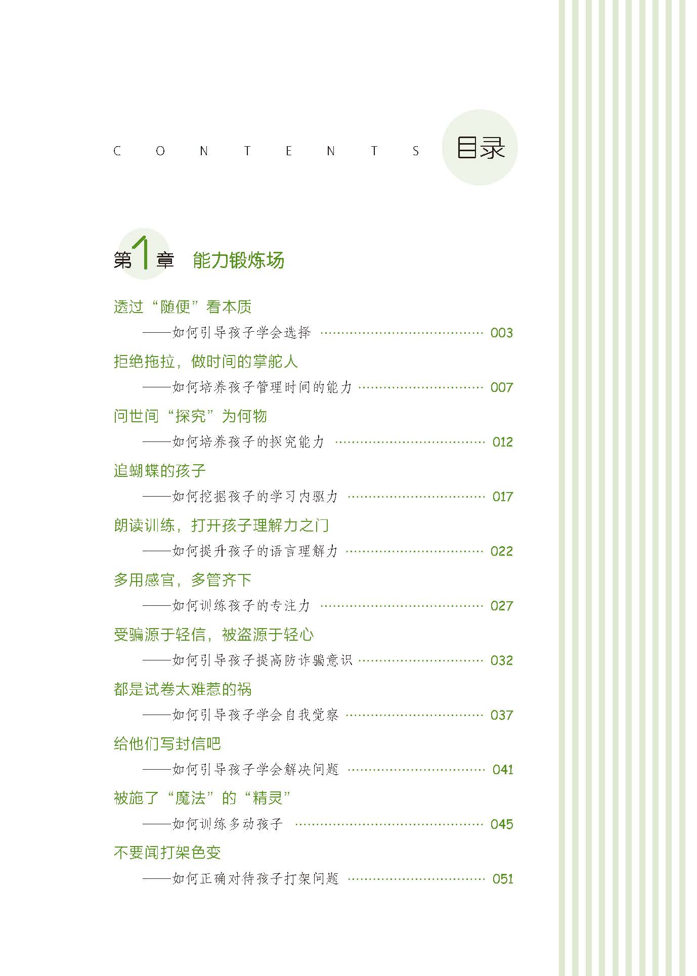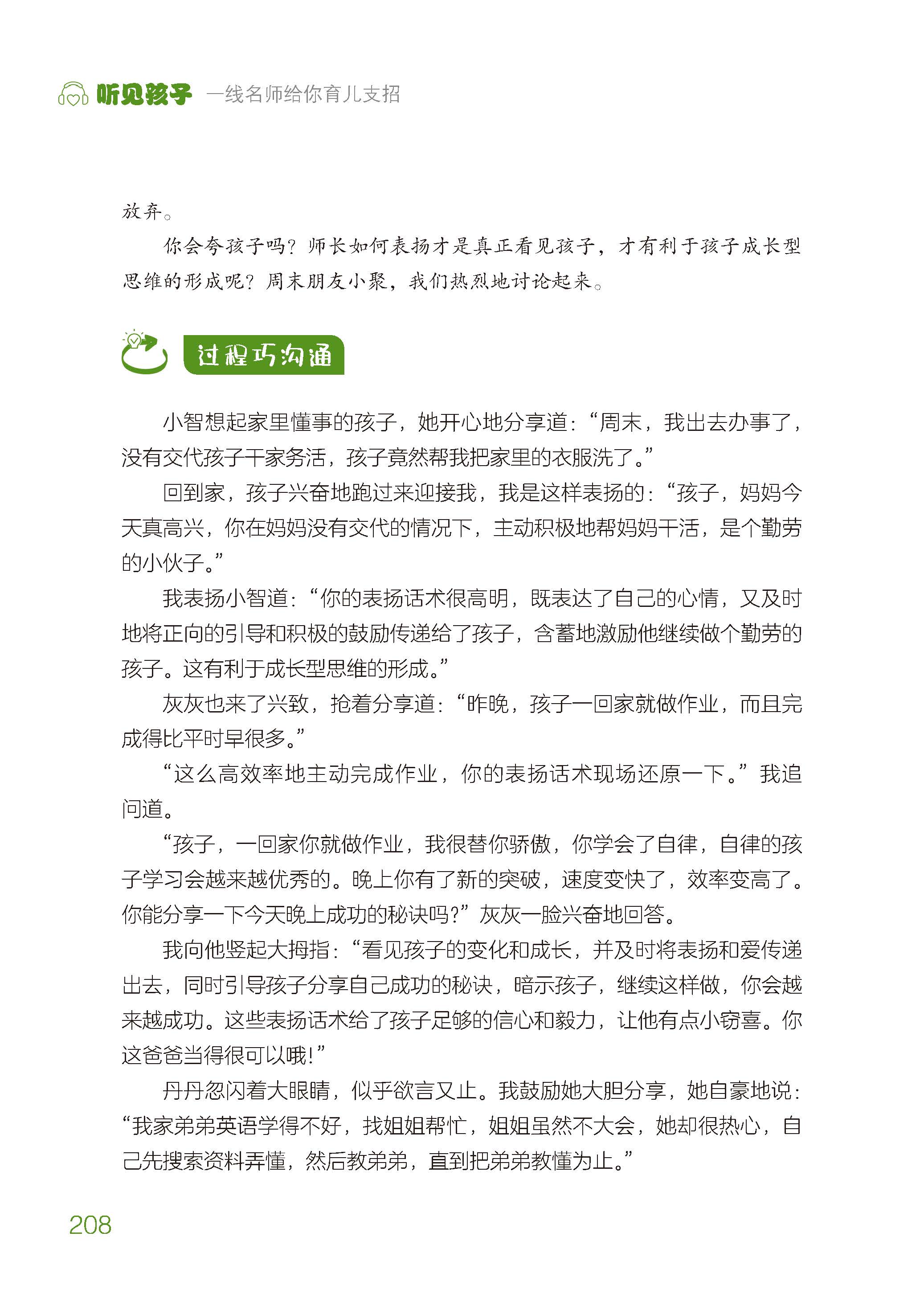 这是一本家庭教育图书。本书分为7个板块,分别是“能力锻炼场”“习惯养成区”“情绪把控室”“德育直播间”“沟通艺术厅”“青春萌发园”“成长规划廊”,作者通过分析实际案例,以“问题触发器”“过程巧沟通”“育儿小妙招”三段式的结构,指导家长和老师如何听见孩子、读懂孩子、协助孩子,学会与孩子沟通、培养孩子解决问题的能力。本书62个案例源于现实生活,真实可信,切实有用,全书体例完备,有故事有情境,有理论有方法,能有效地指导家长更好育儿,也适合老师指导家庭教育使用。