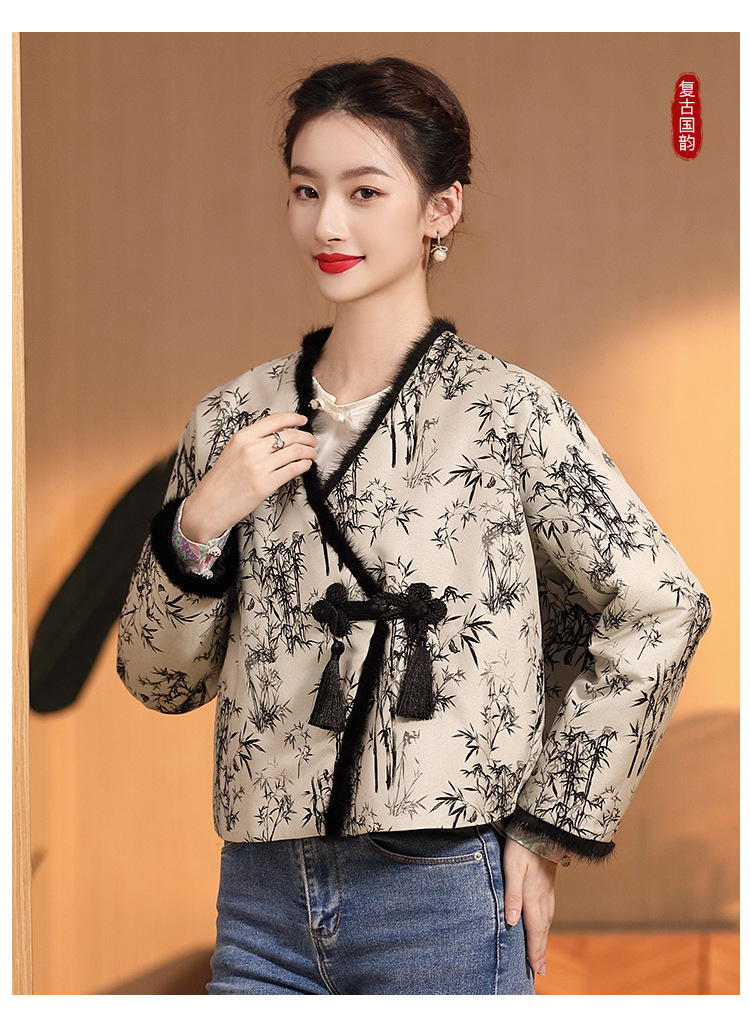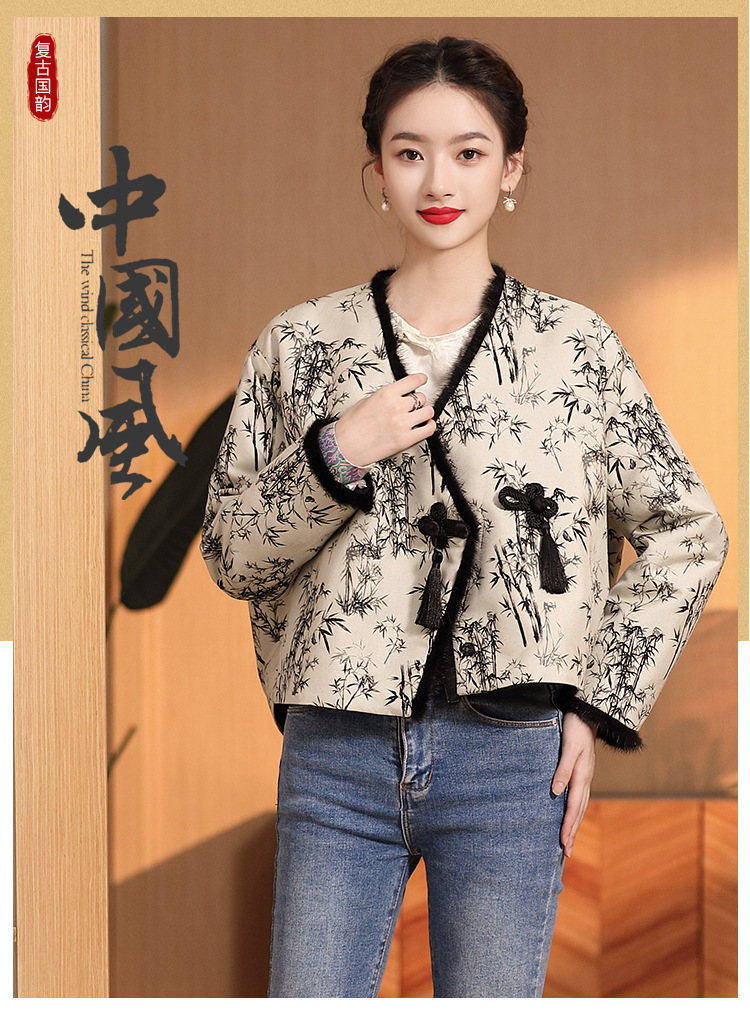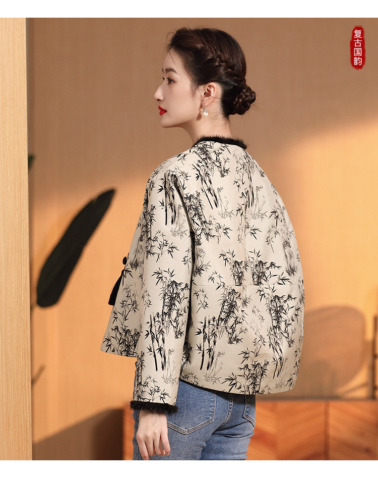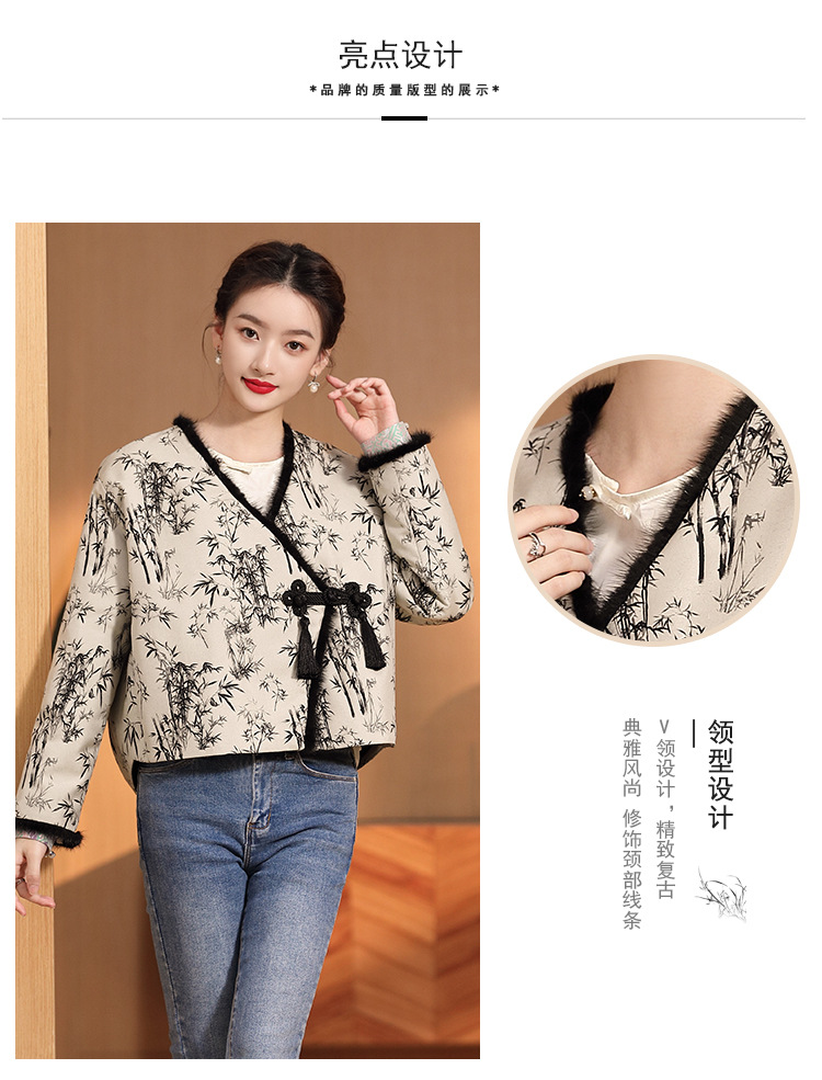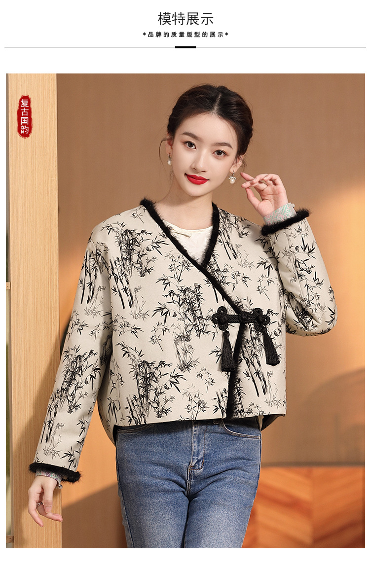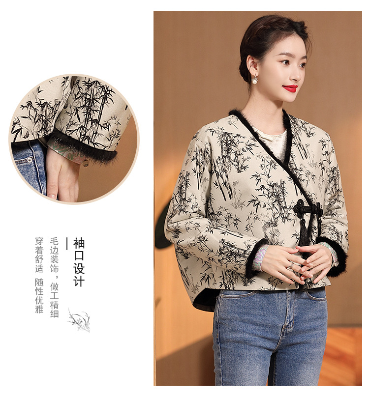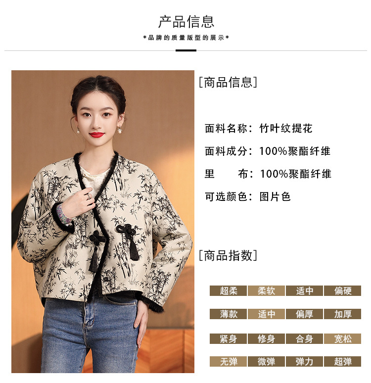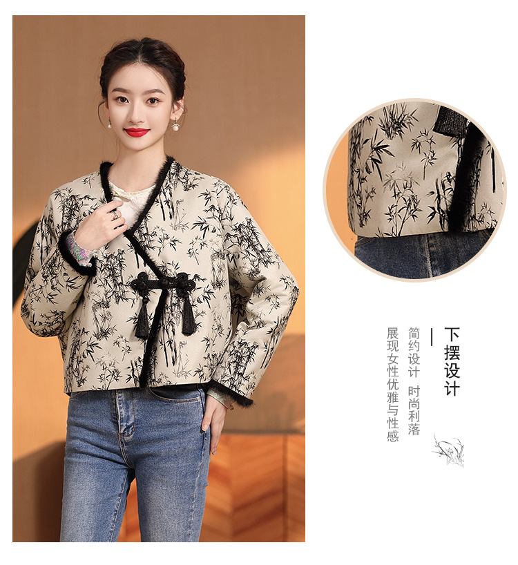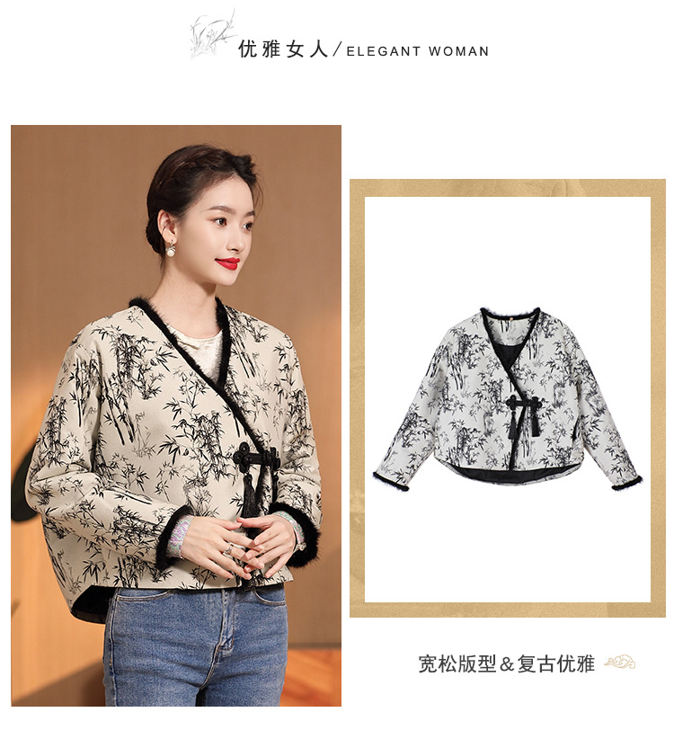 AYM冬季新款时尚气质百搭短款提花夹棉短外套原创女式唐装上衣