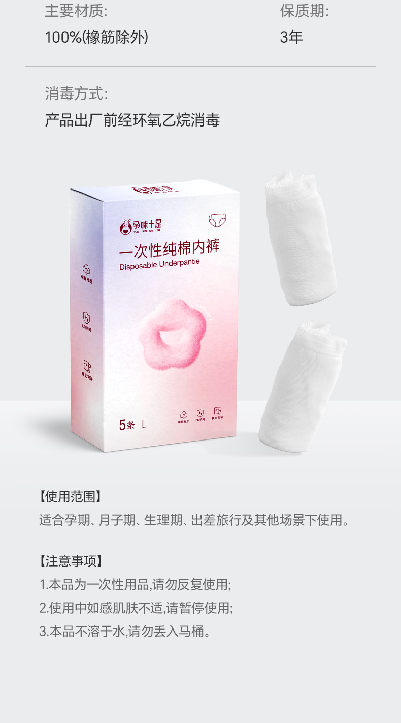 【品牌自营】孕味十足一次性内裤月子纯棉大码旅行日抛内裤女款