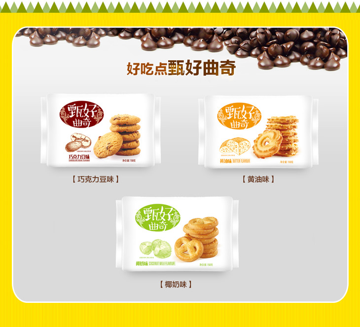 【百汇到家】好吃点甄好曲奇 巧克力豆味/椰奶味/黄油味 150g