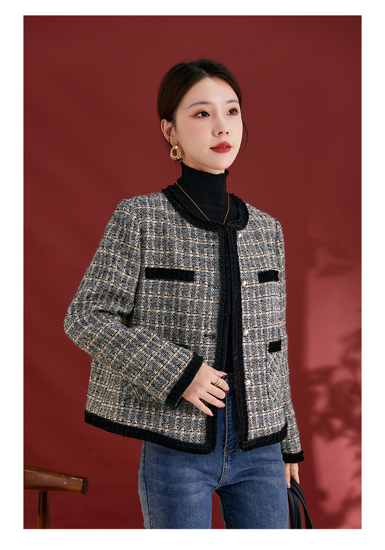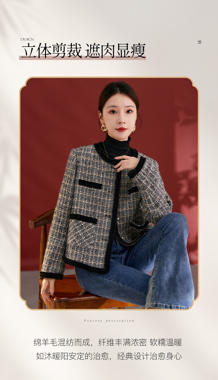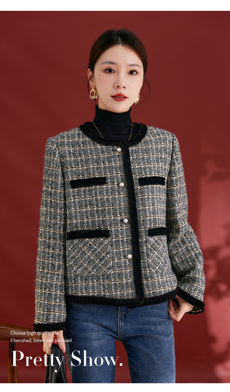 QS羊毛法式小香风外套基础百搭秋冬新款高级桑蚕丝上衣女1763