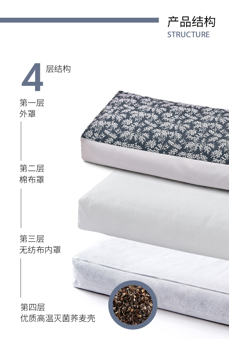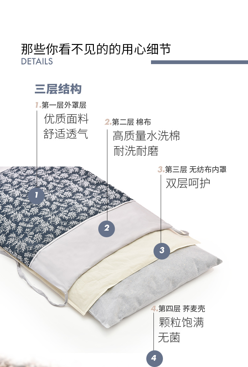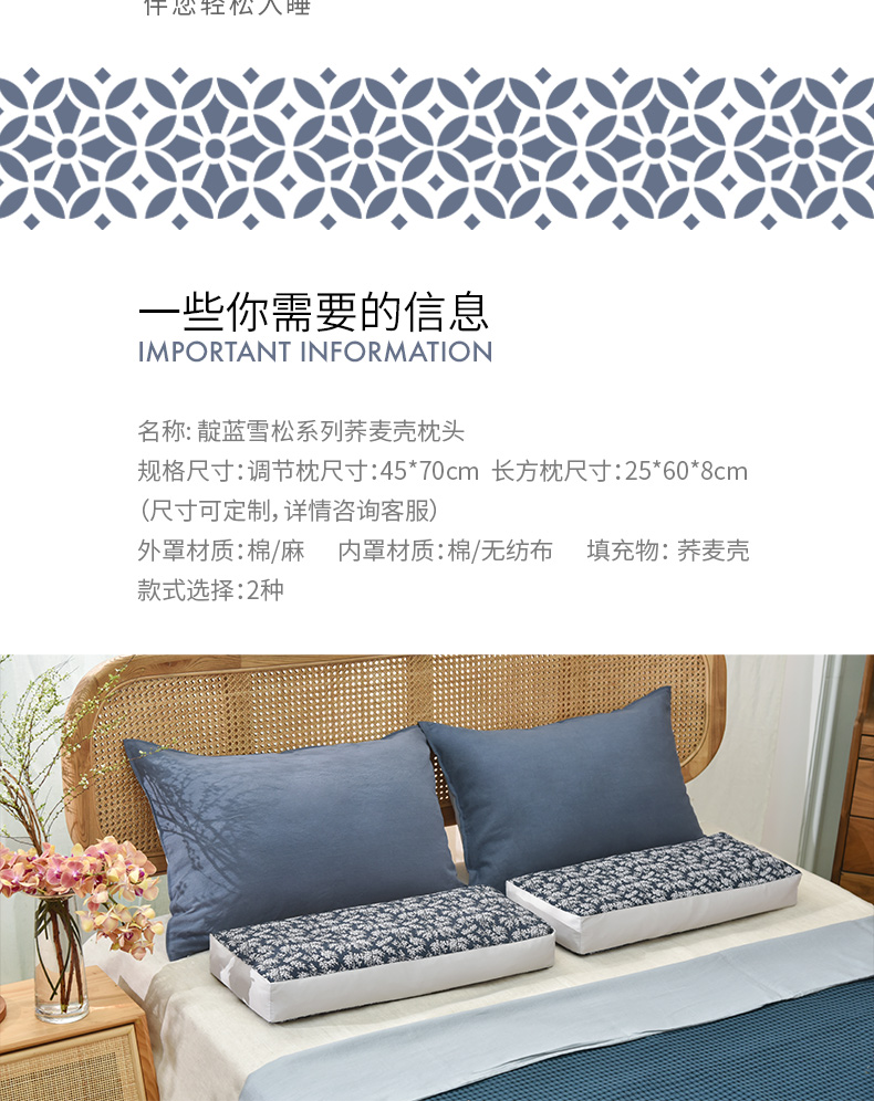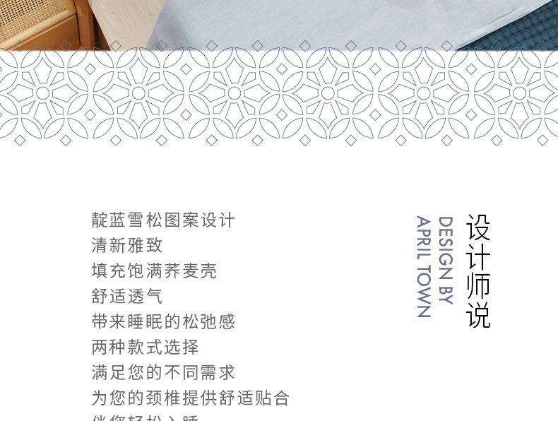 靛蓝雪松系列荞麦壳枕头高端全荞麦成人护颈枕