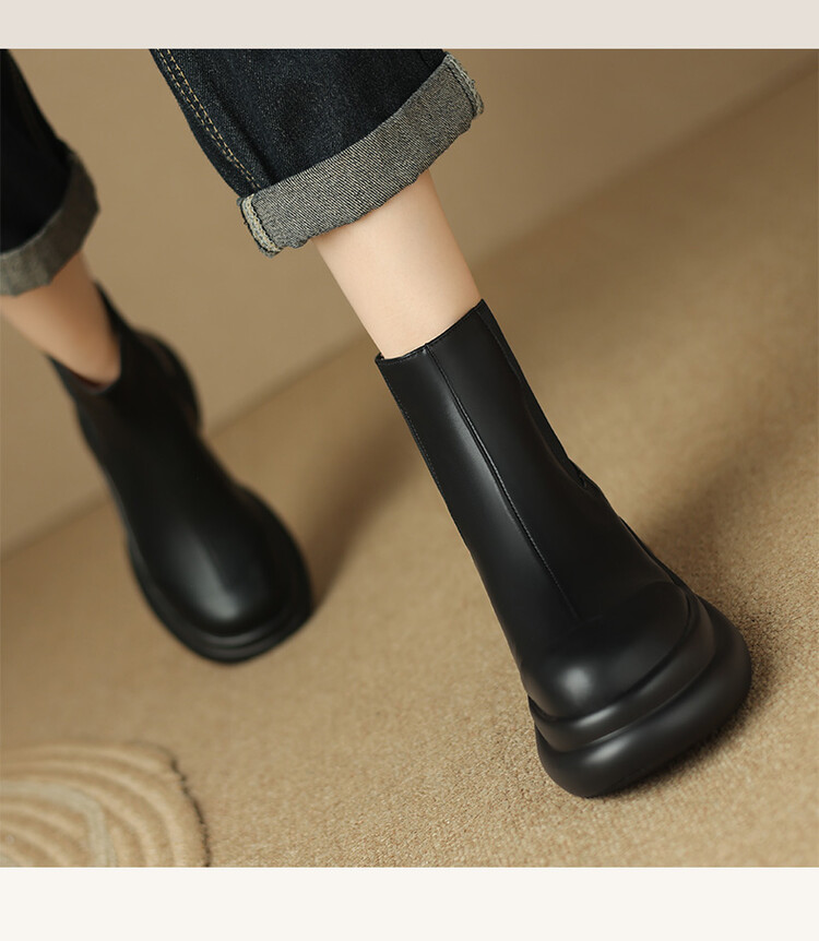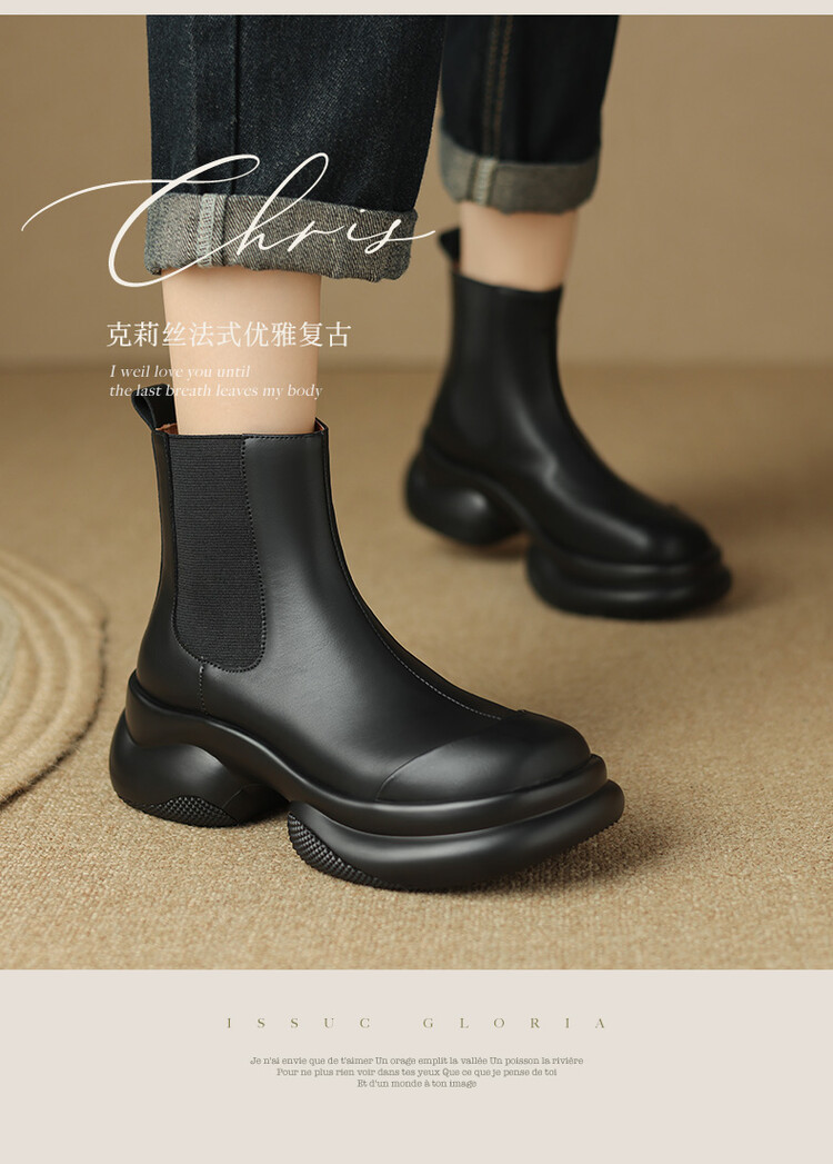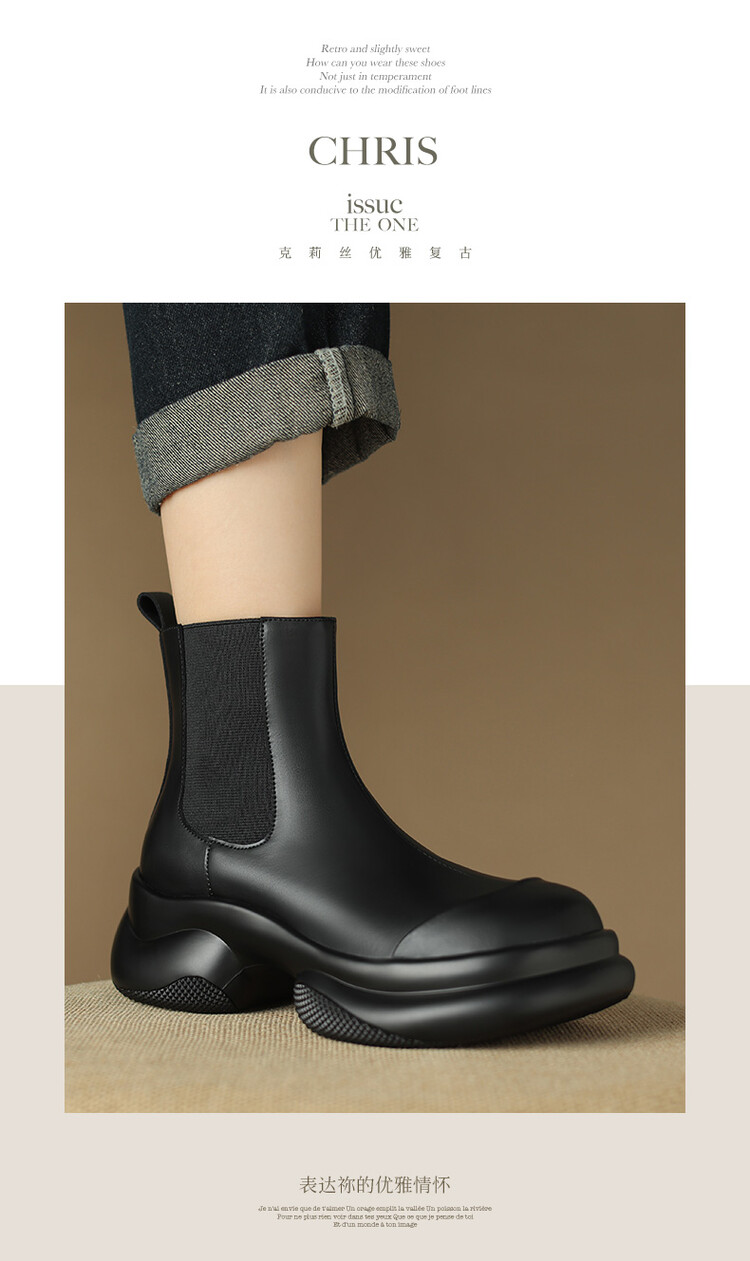 轻巧舒适,里外全皮厚底增高短靴MDY-M3009-19
