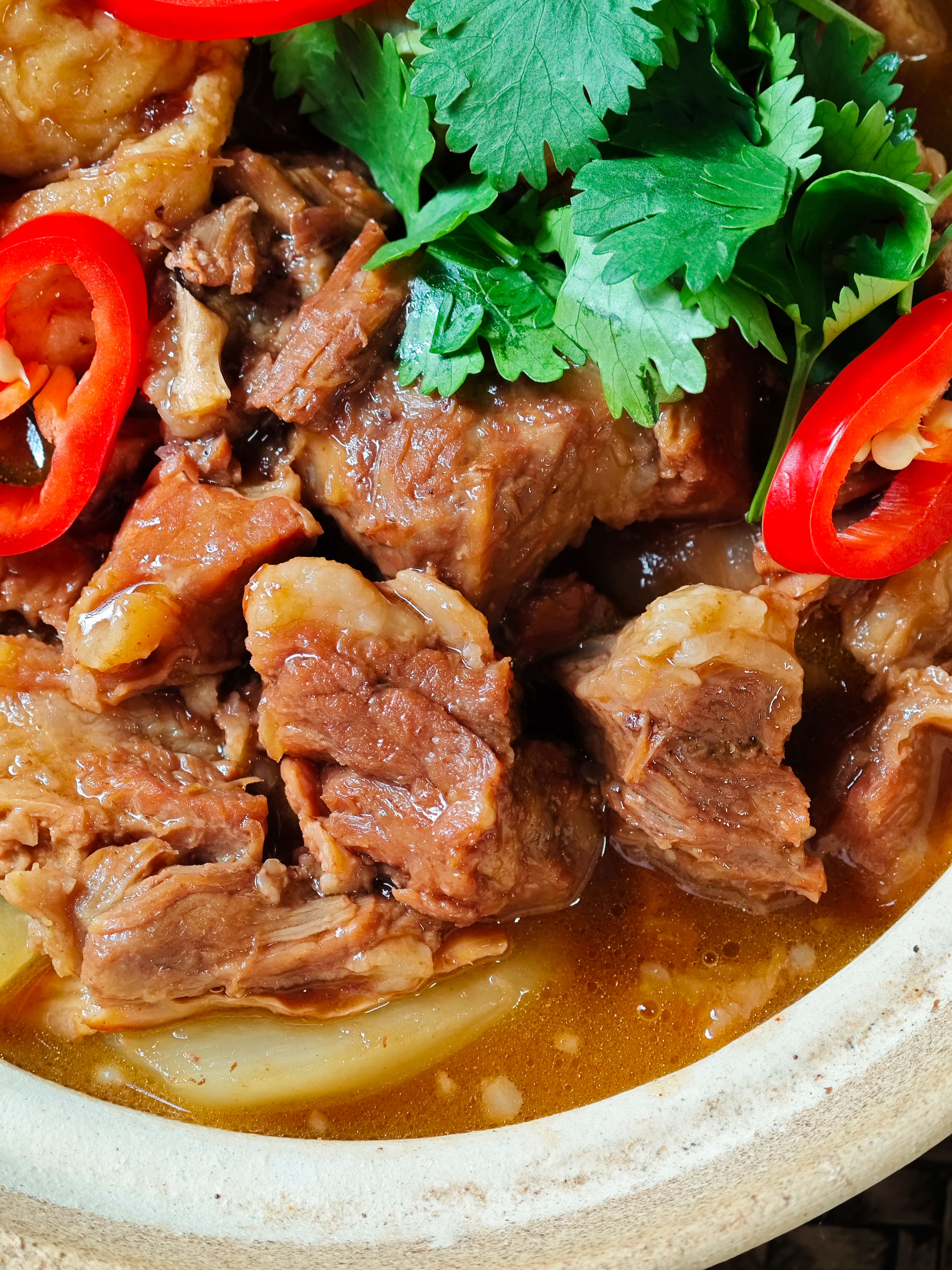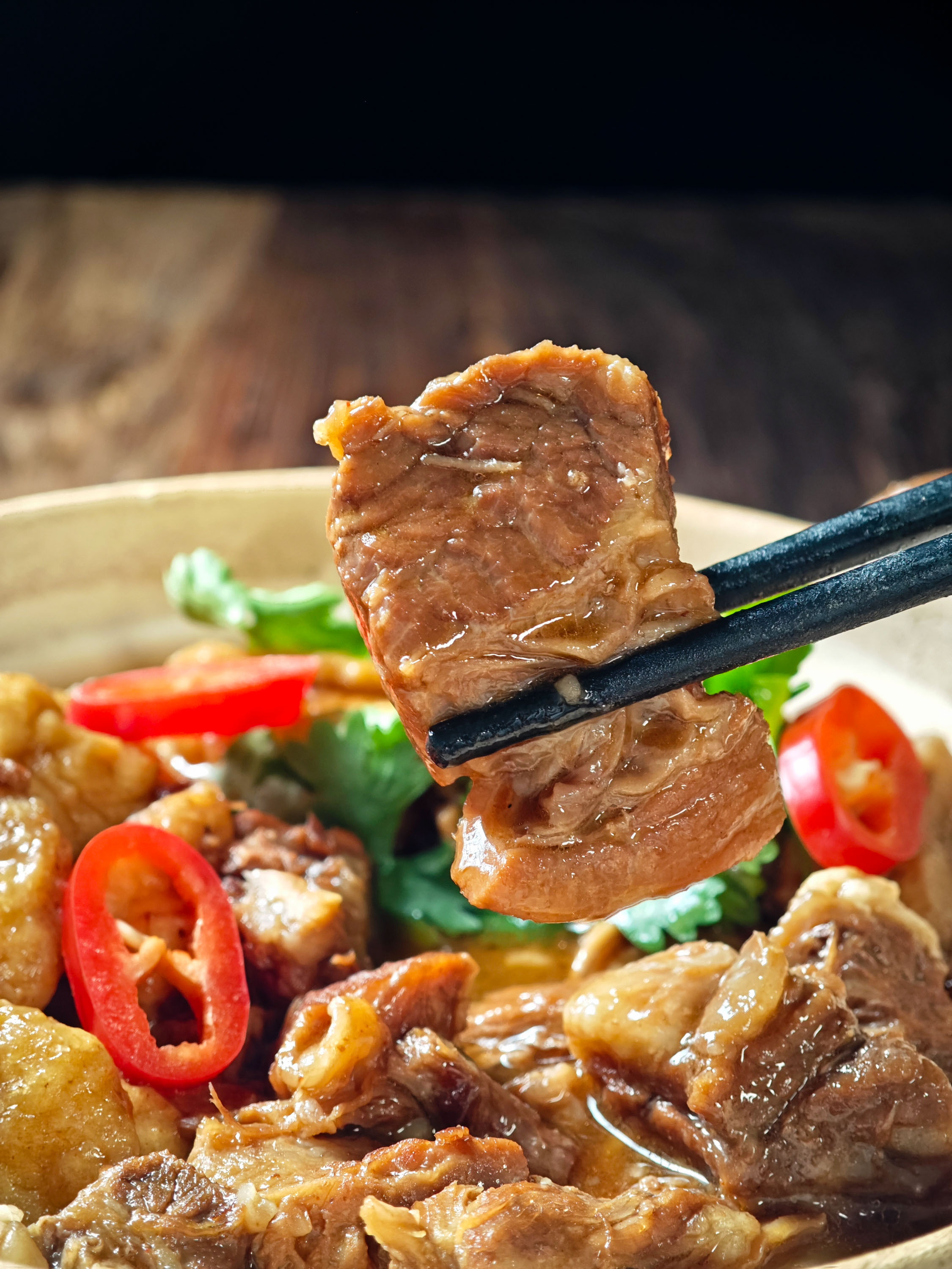经验丰富的顺德大厨调配的牛腩/牛杂煲,