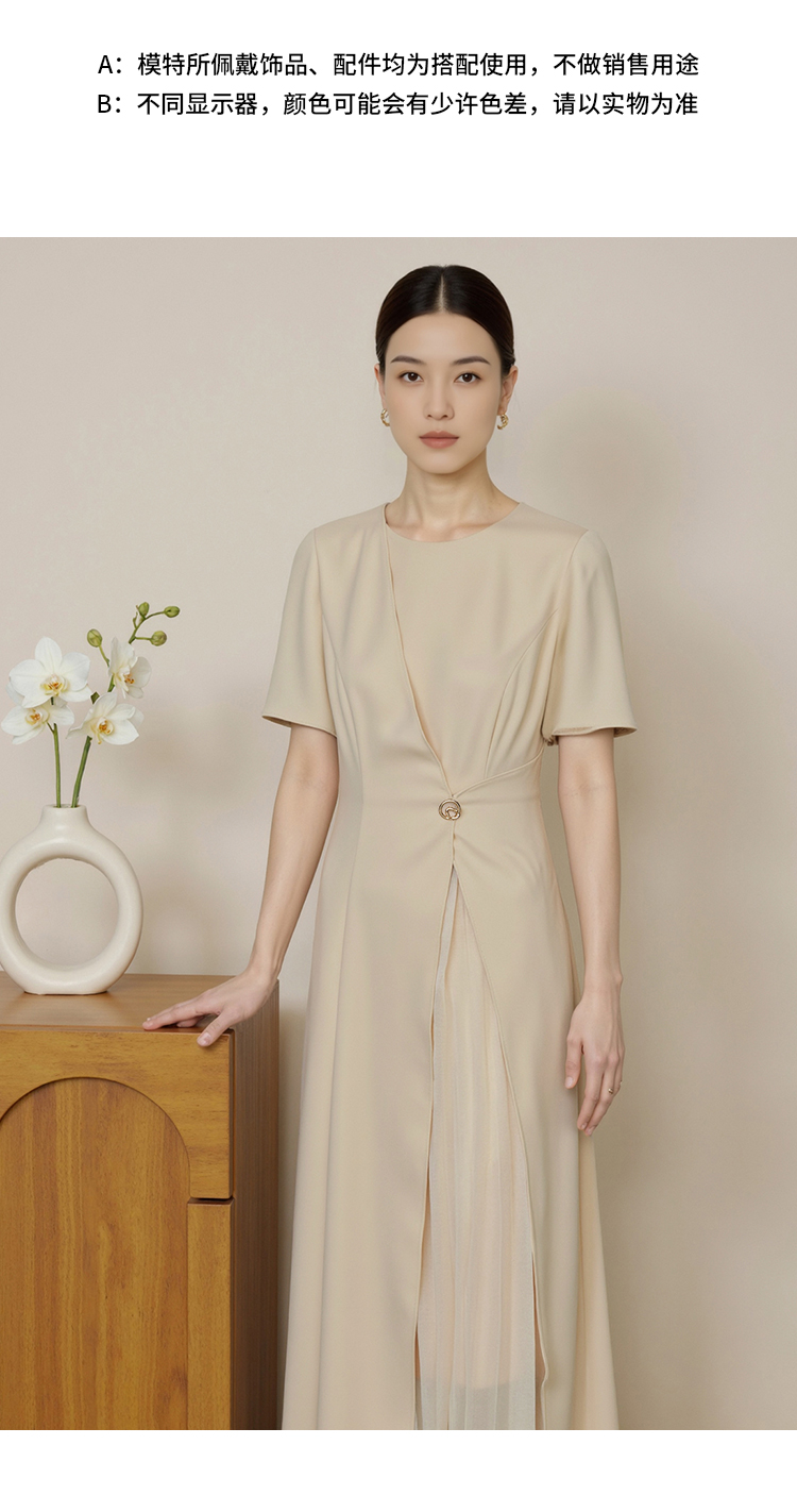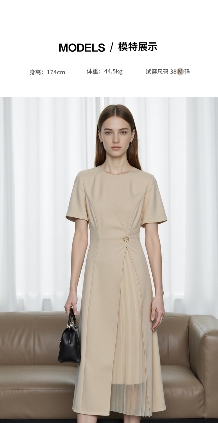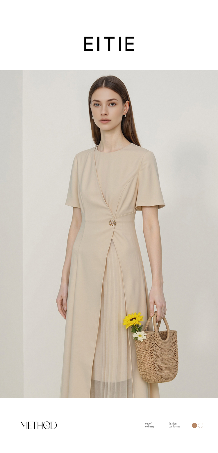 EITIE爱特爱夏季新品高腰修身优雅拼接连衣裙7807513