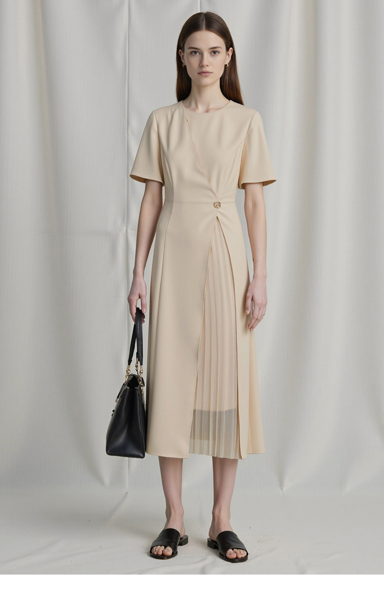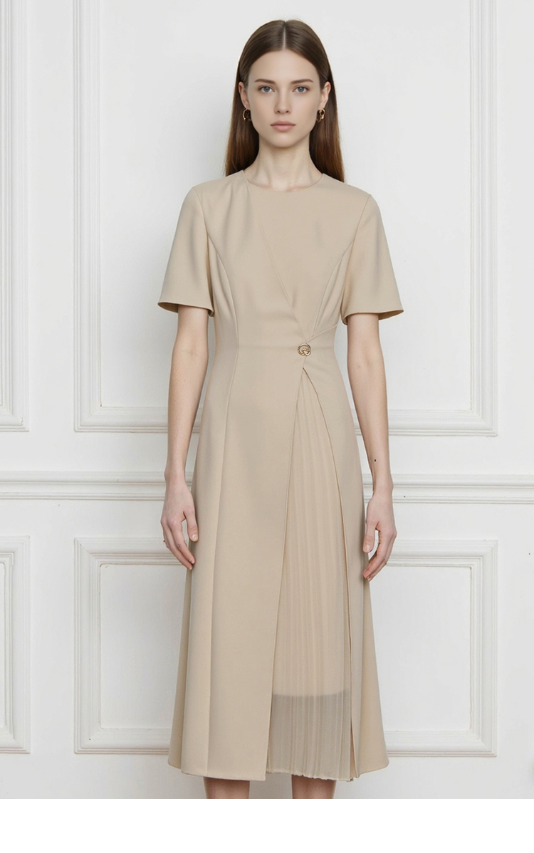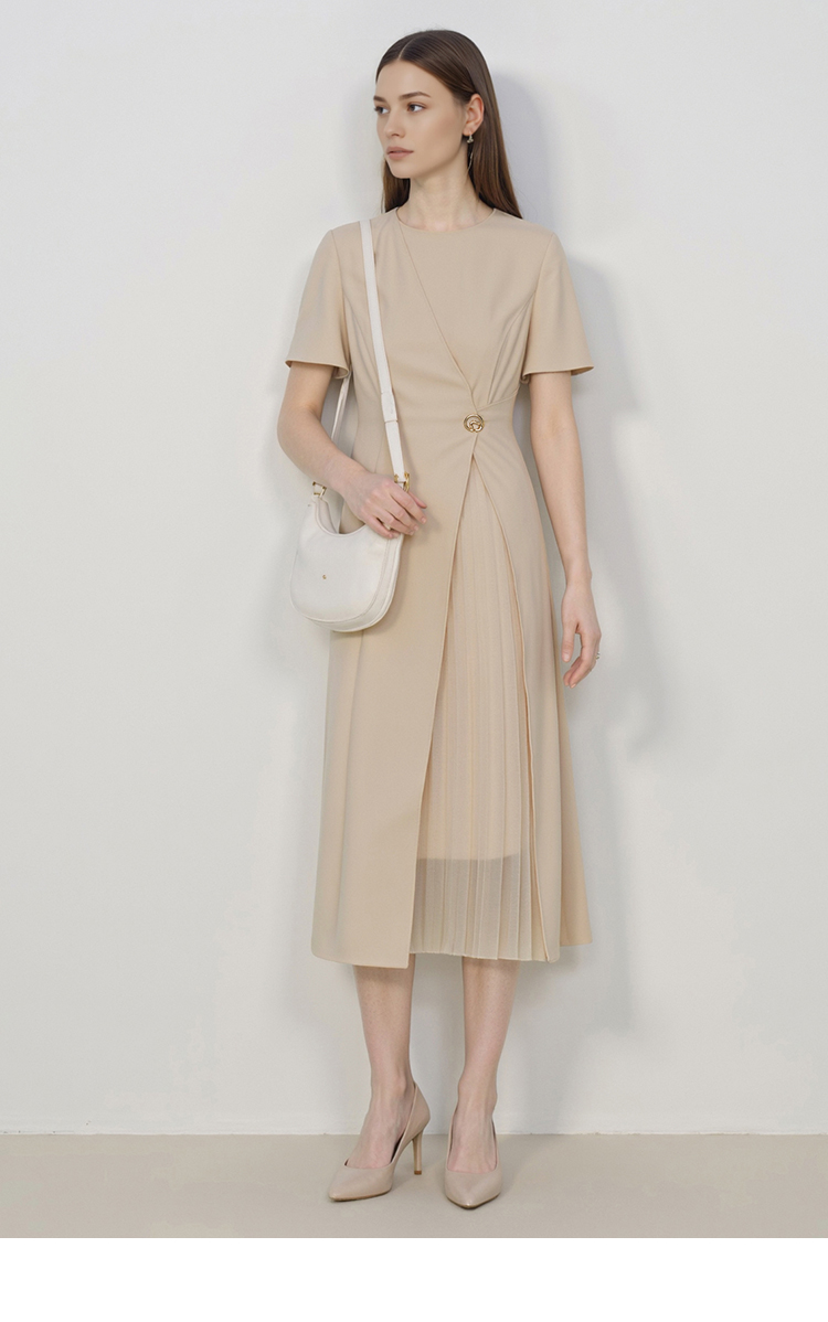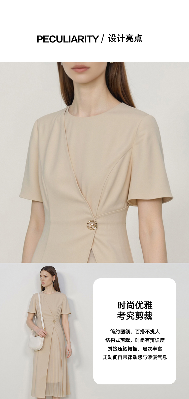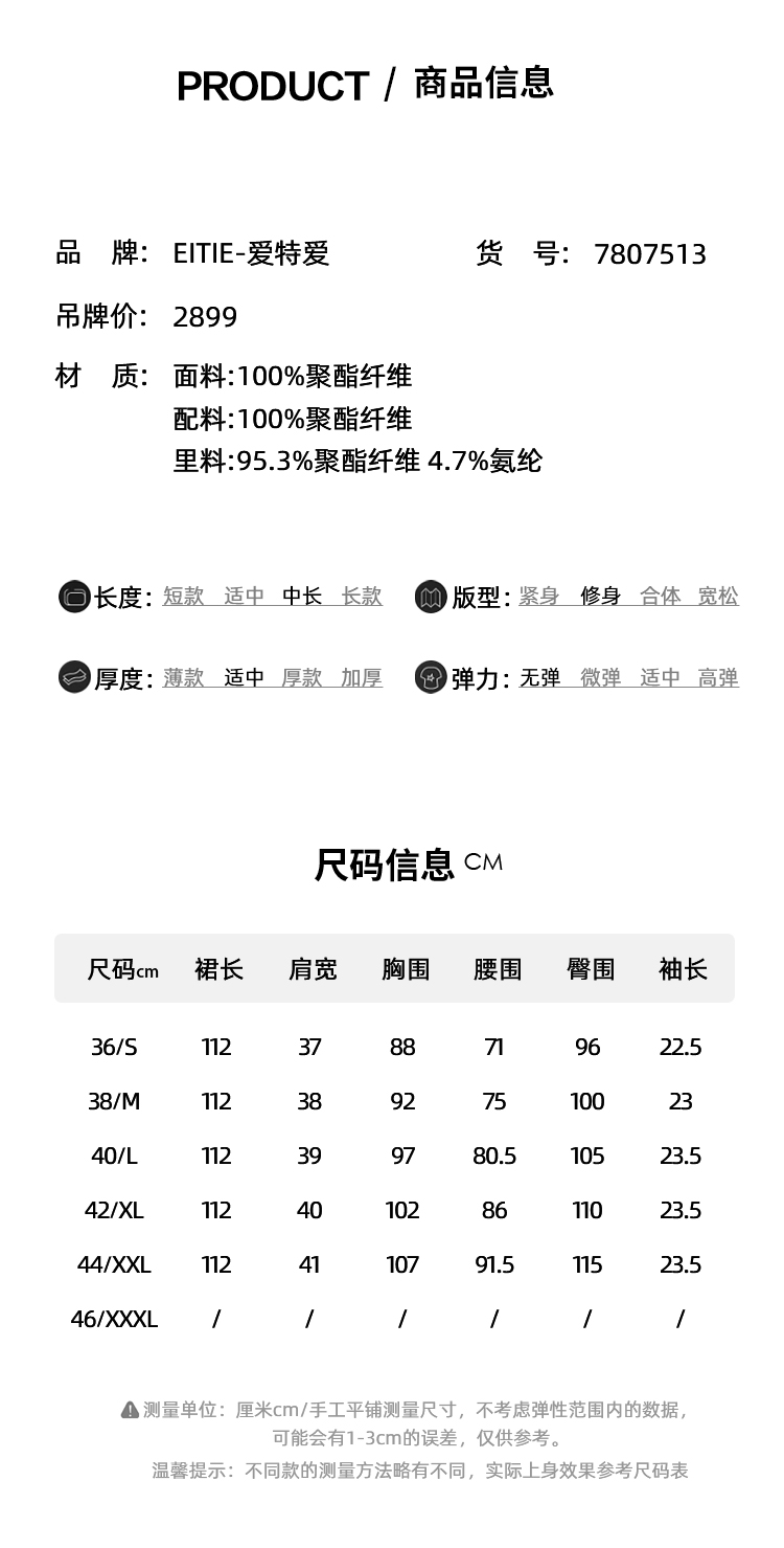 EITIE爱特爱品牌女装春季新款时尚修身高腰圆领连衣裙中裙A1907039