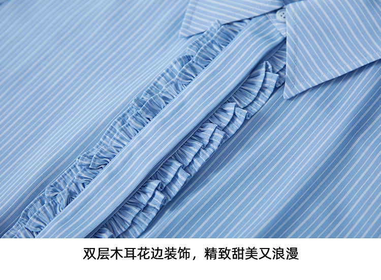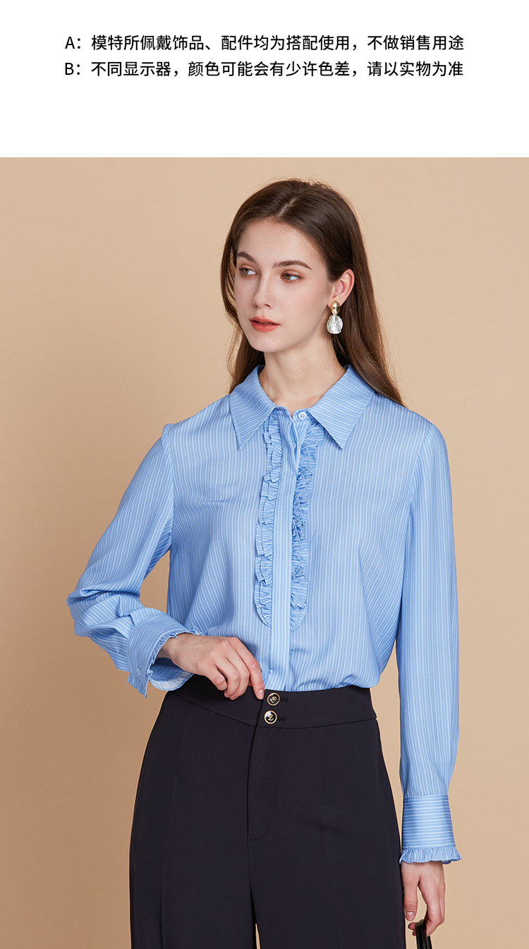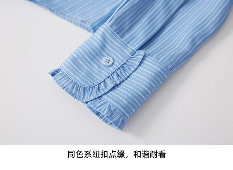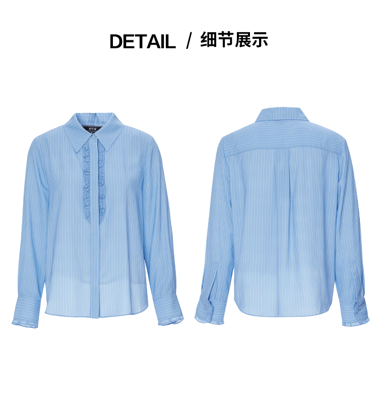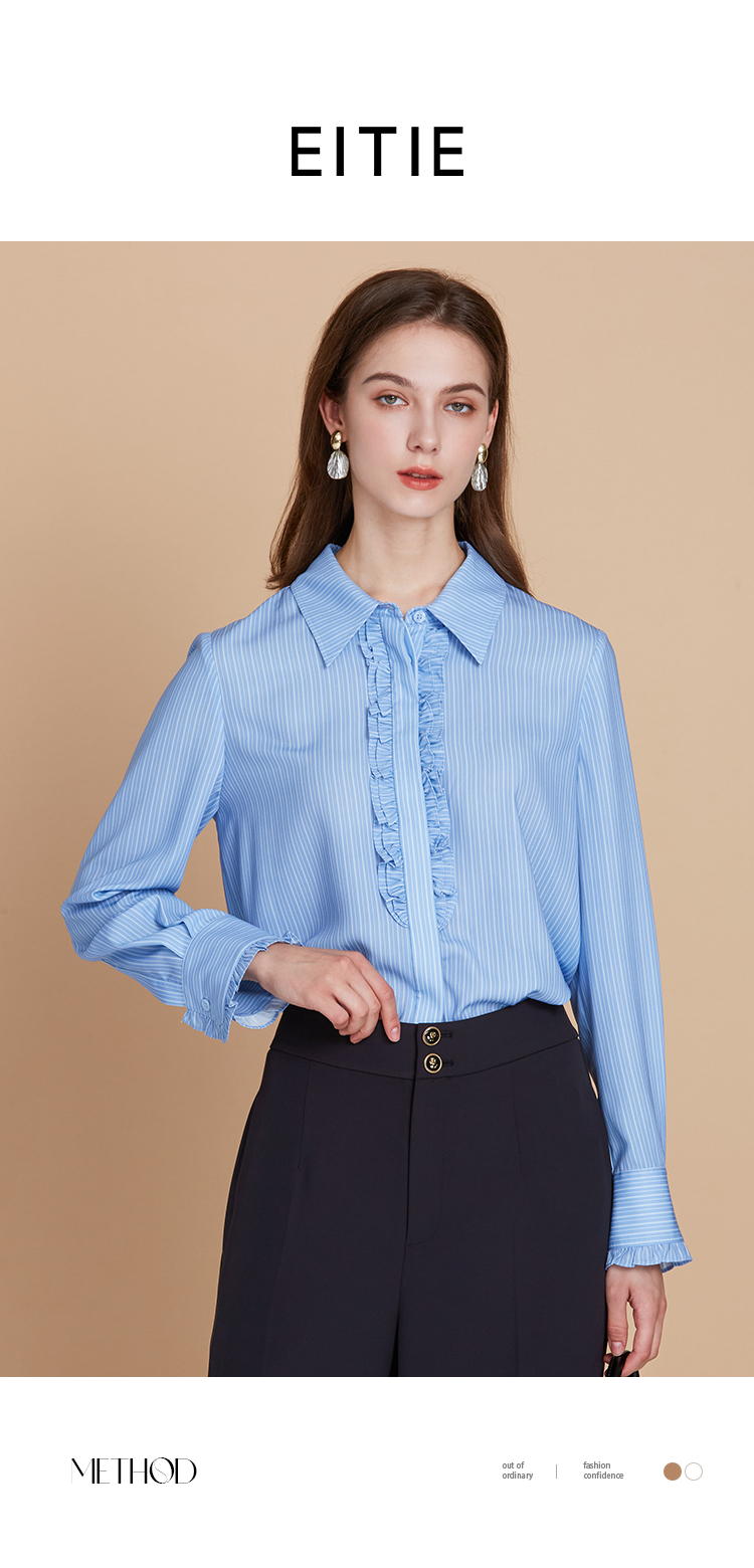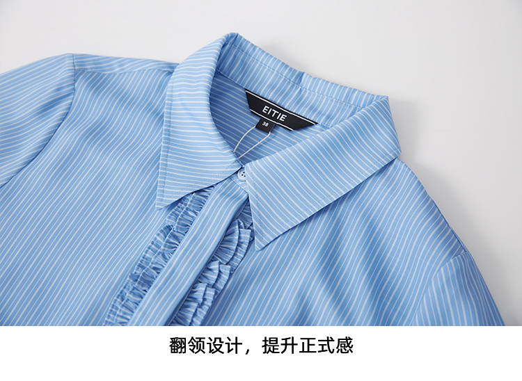【清爽蓝条纹花边衬衫】EITIE爱特爱气质通勤直筒显瘦秋新款C2509810