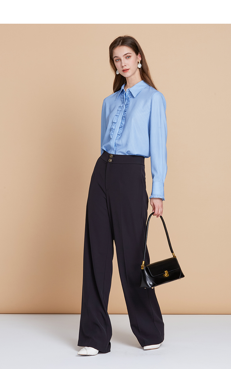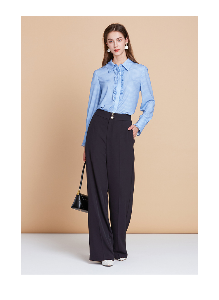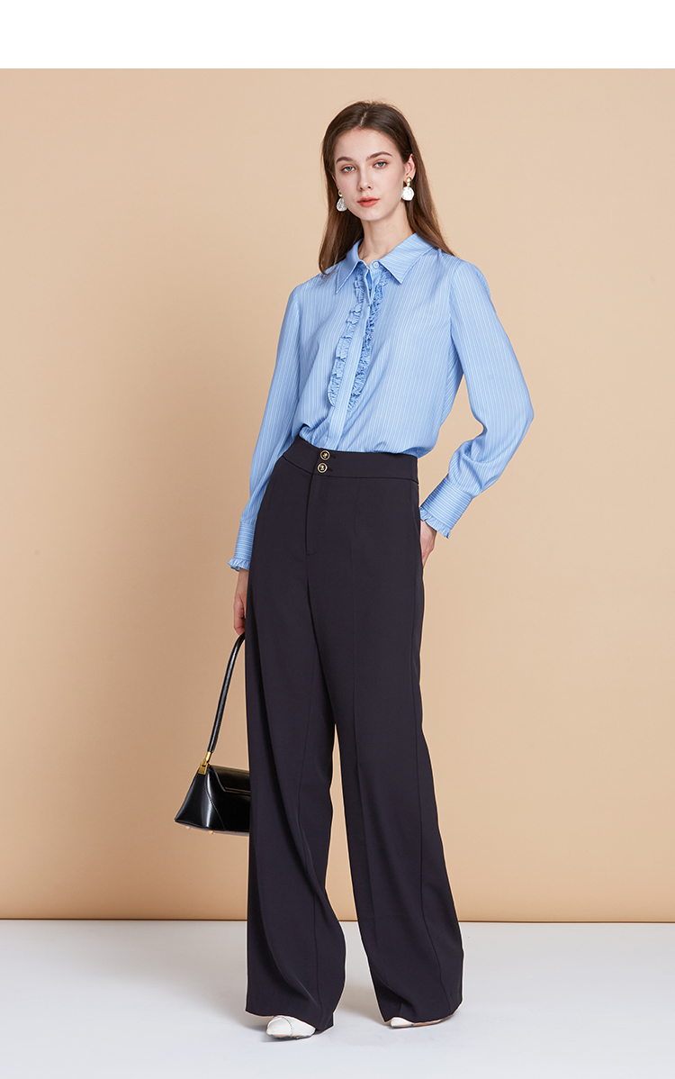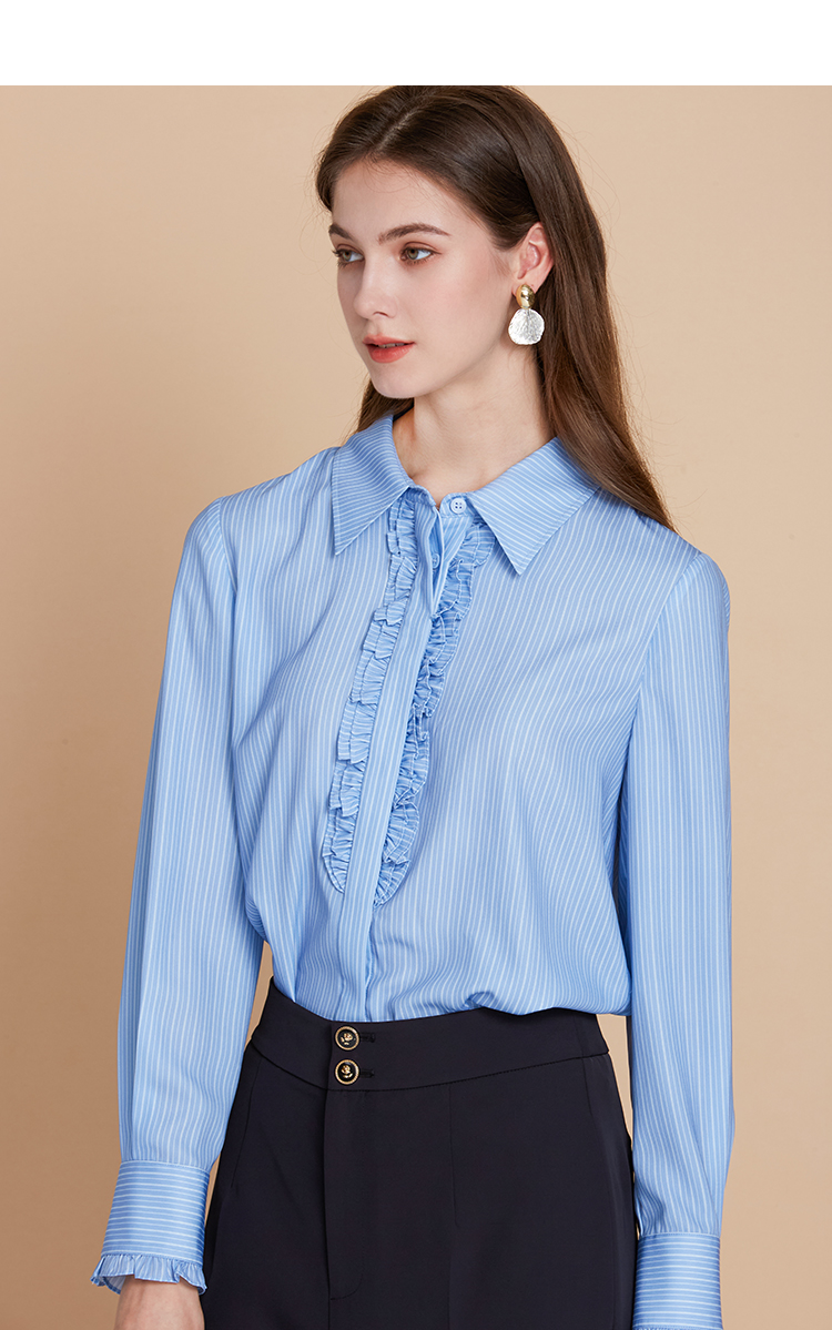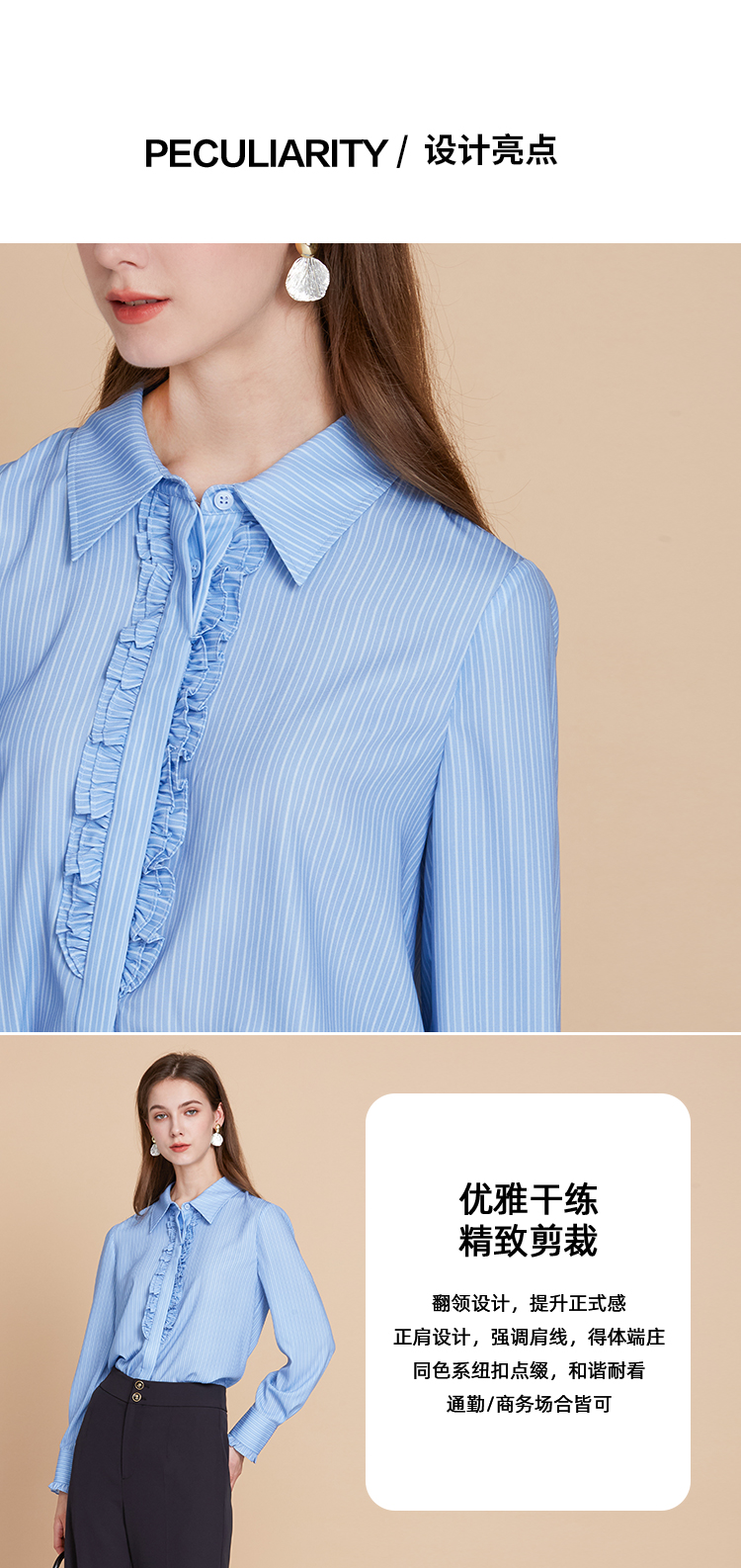 【清爽蓝条纹花边衬衫】EITIE爱特爱气质通勤直筒显瘦秋新款C2509810