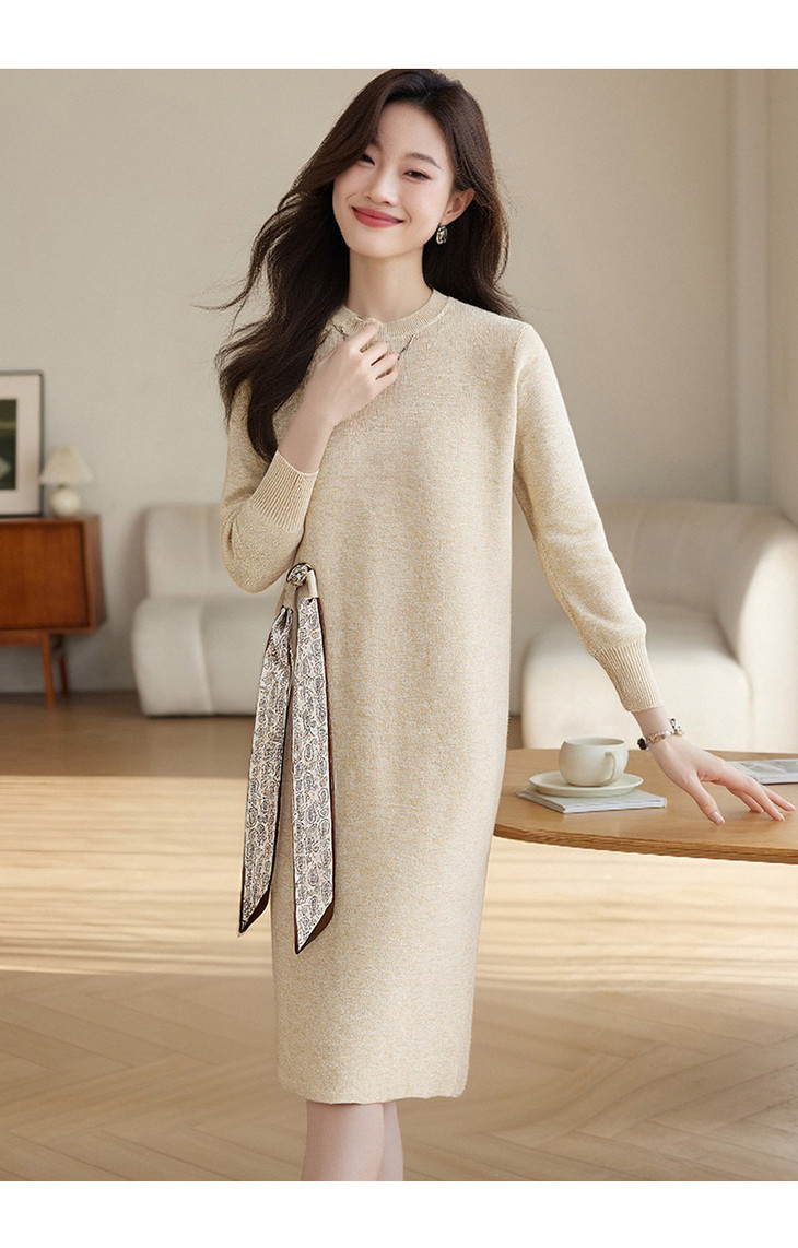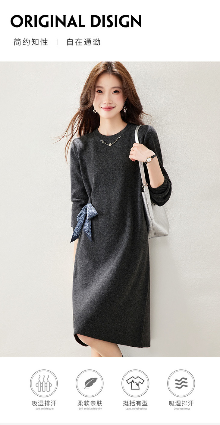 配大衣打底针织连衣裙,设计感法式小香风高级感内搭毛衣裙子CC-ML-9983