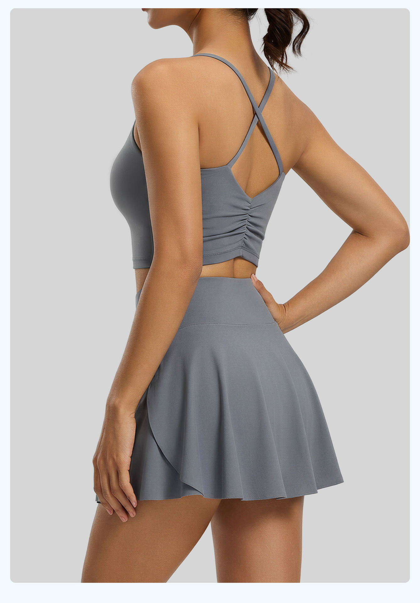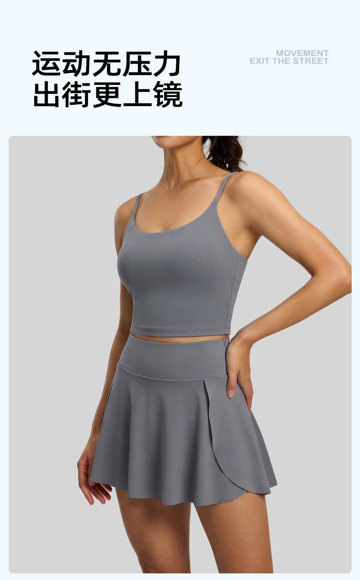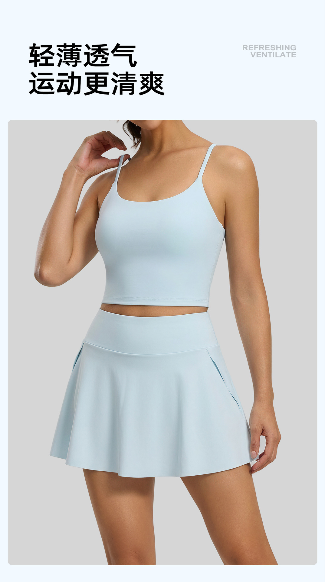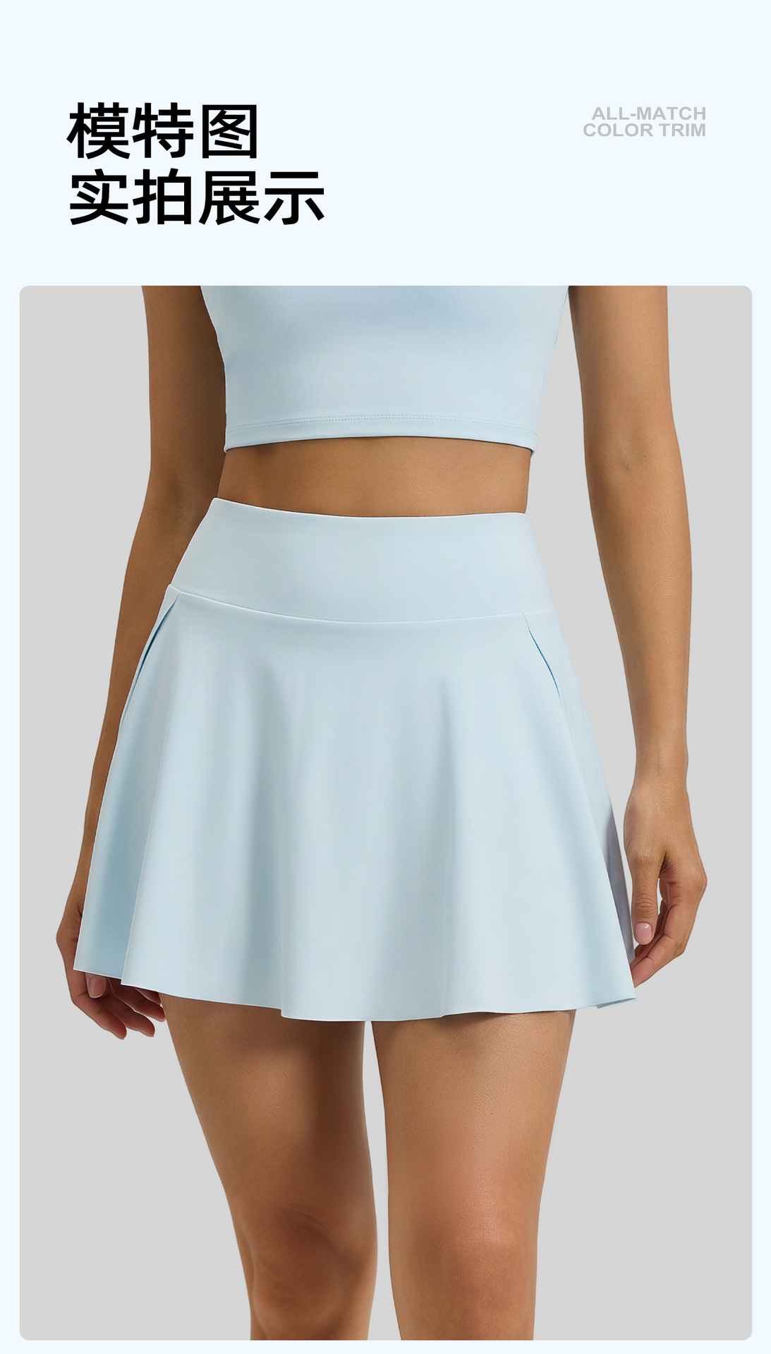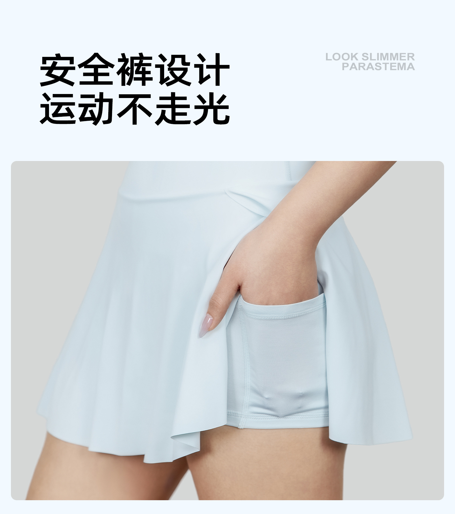 跃牌【瑜堂系列】侧口袋透气运动短裙裤修身跑步健身网球防走光假两件瑜伽裙JYMQ089